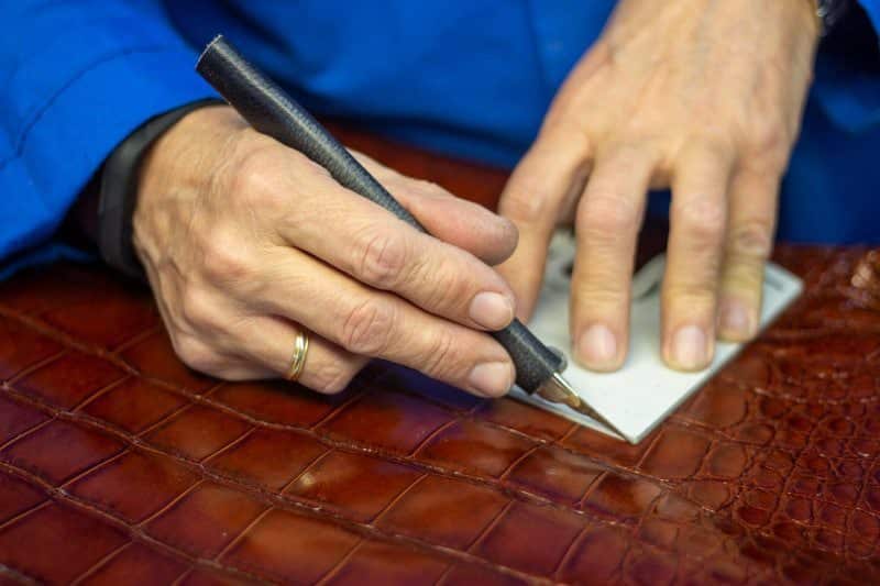 Hailing from the Southeast USA and frequently harvested from farm-bred gators as well as from wild animals, American alligator skin is a classic, durable and versatile leather. The American alligator’s hide is the soft and more pliable material. This is because the skin of this reptile is less bony than the skin of crocodiles. This softness makes the alligator’s skin easier to work with than the skin of other reptiles, making it easier to work with for cutting, stitching and folding.