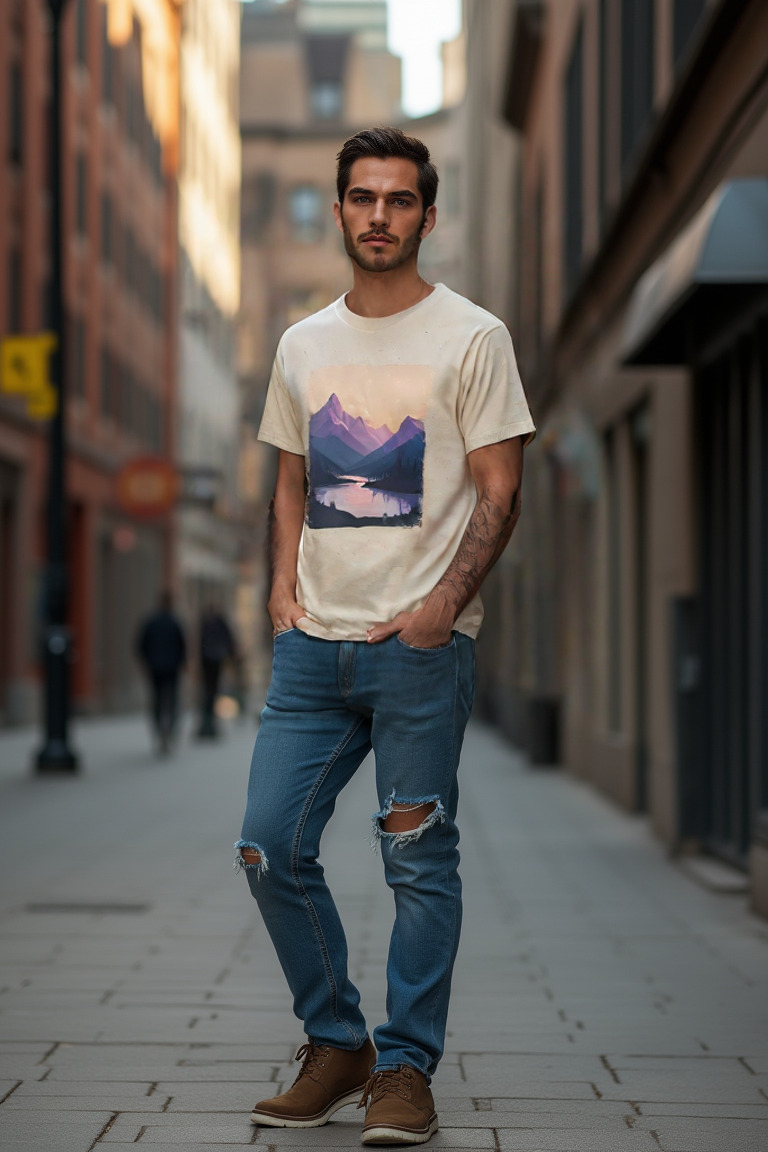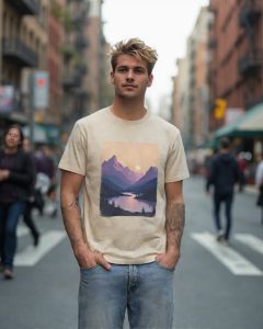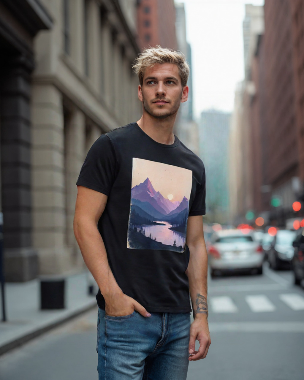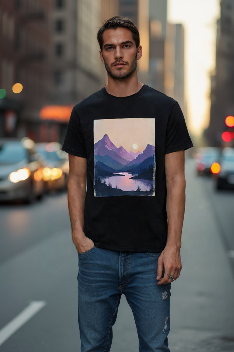 Immerse yourself in the serene beauty of twilight with the Alpine Afterglow t-shirt. Featuring a breathtaking design of rugged mountain peaks reflected in tranquil waters under a glowing sunset, this shirt captures the essence of nature’s quiet majesty. Made from soft, durable fabric and available in multiple colors, it’s perfect for outdoor enthusiasts or anyone seeking a touch of wilderness-inspired elegance in their wardrobe.