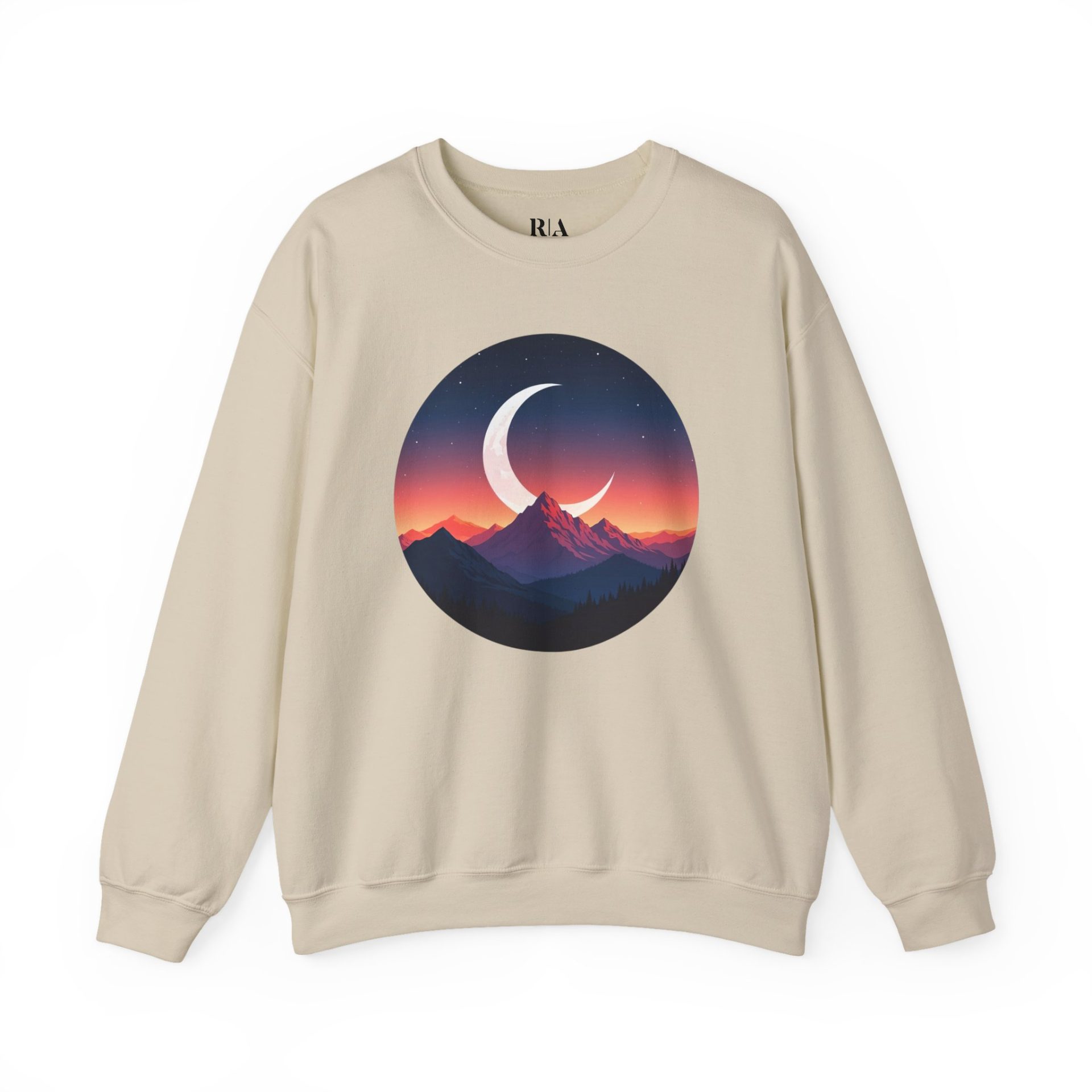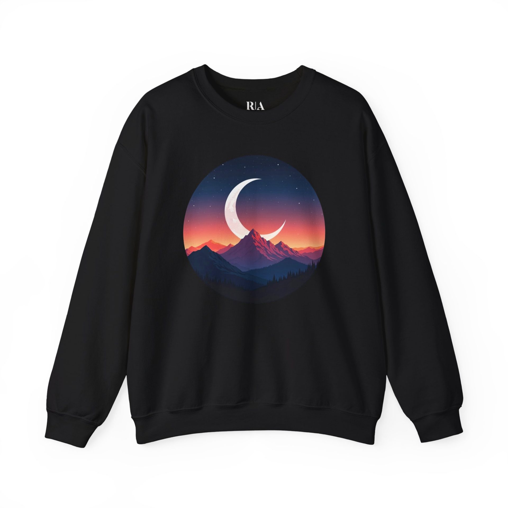 Ready for an adventure? Slip into the Alpine Moonlit Dream graphic sweatshirt and bring the magic of a starlit mountain night with you wherever you go. With a bold crescent moon rising over layered alpine peaks, this design captures the wild spirit of late-night exploration.
