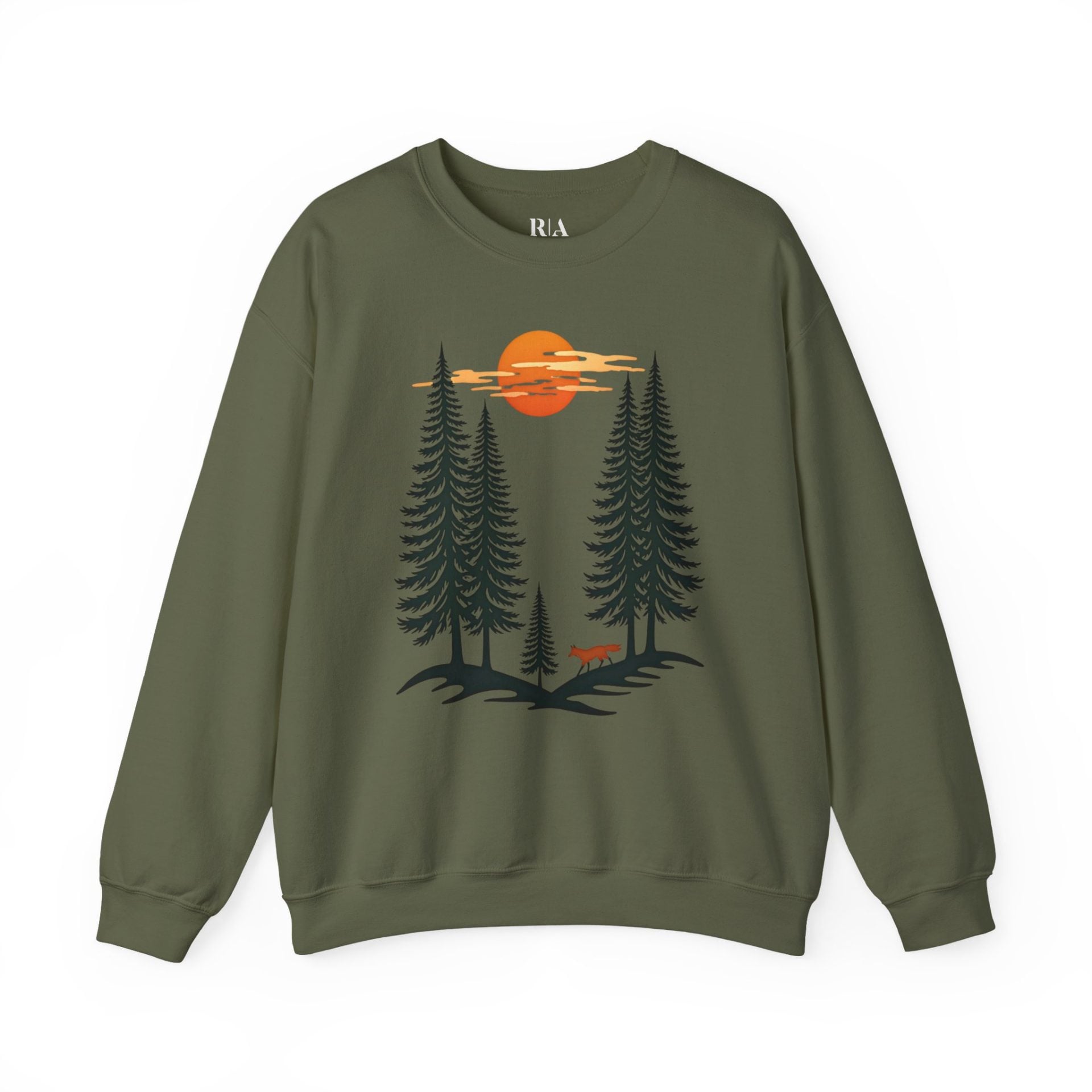 Featuring a breathtaking design of towering pines, a glowing sunset, and a lone fox, this sweatshirt captures the magic of the great outdoors. Available in multiple colors, it’s versatile enough for hiking, casual outings, or even as a thoughtful gift for the adventurer in your life. Add “Among the Pines” to your wardrobe and carry the spirit of the wilderness with you wherever you go!
