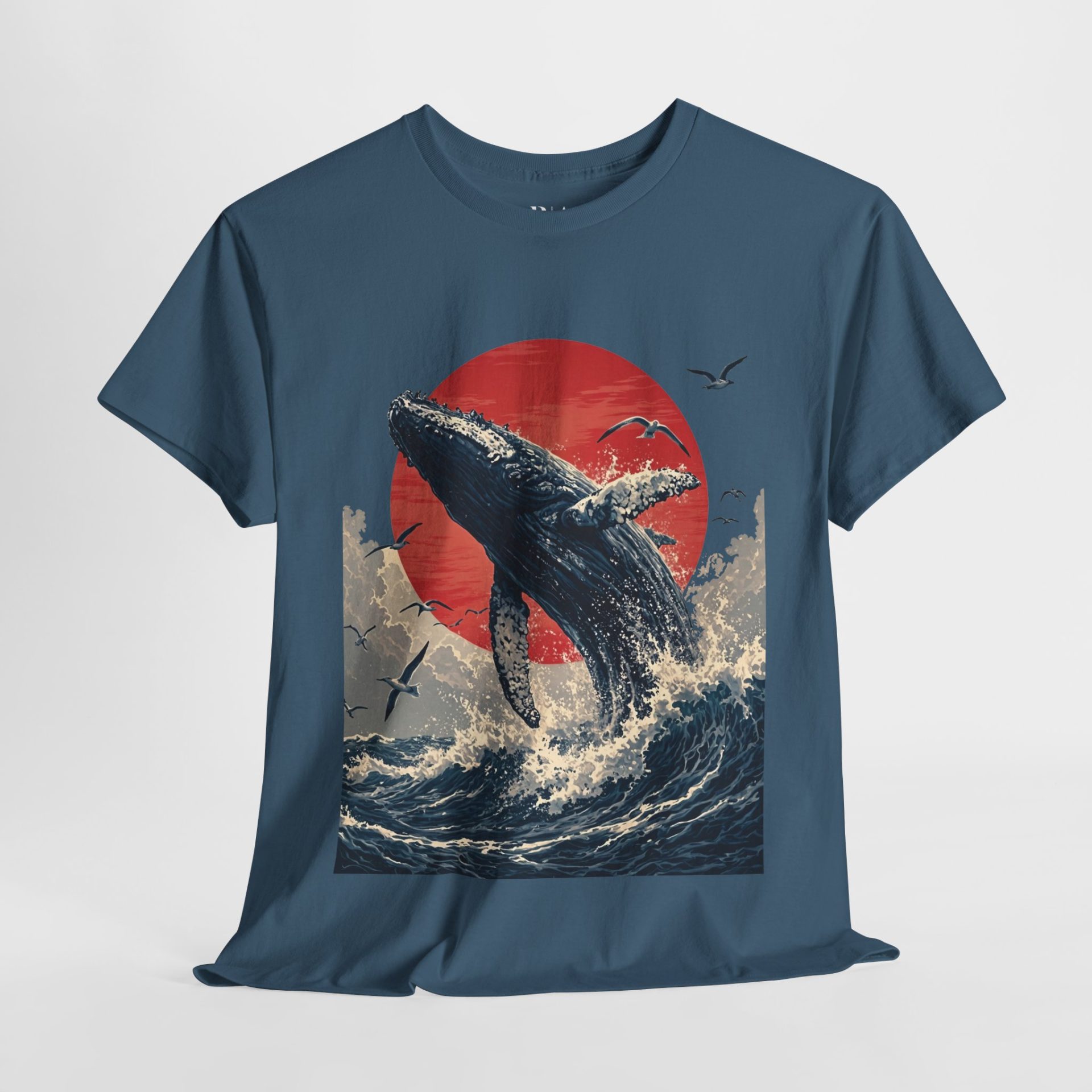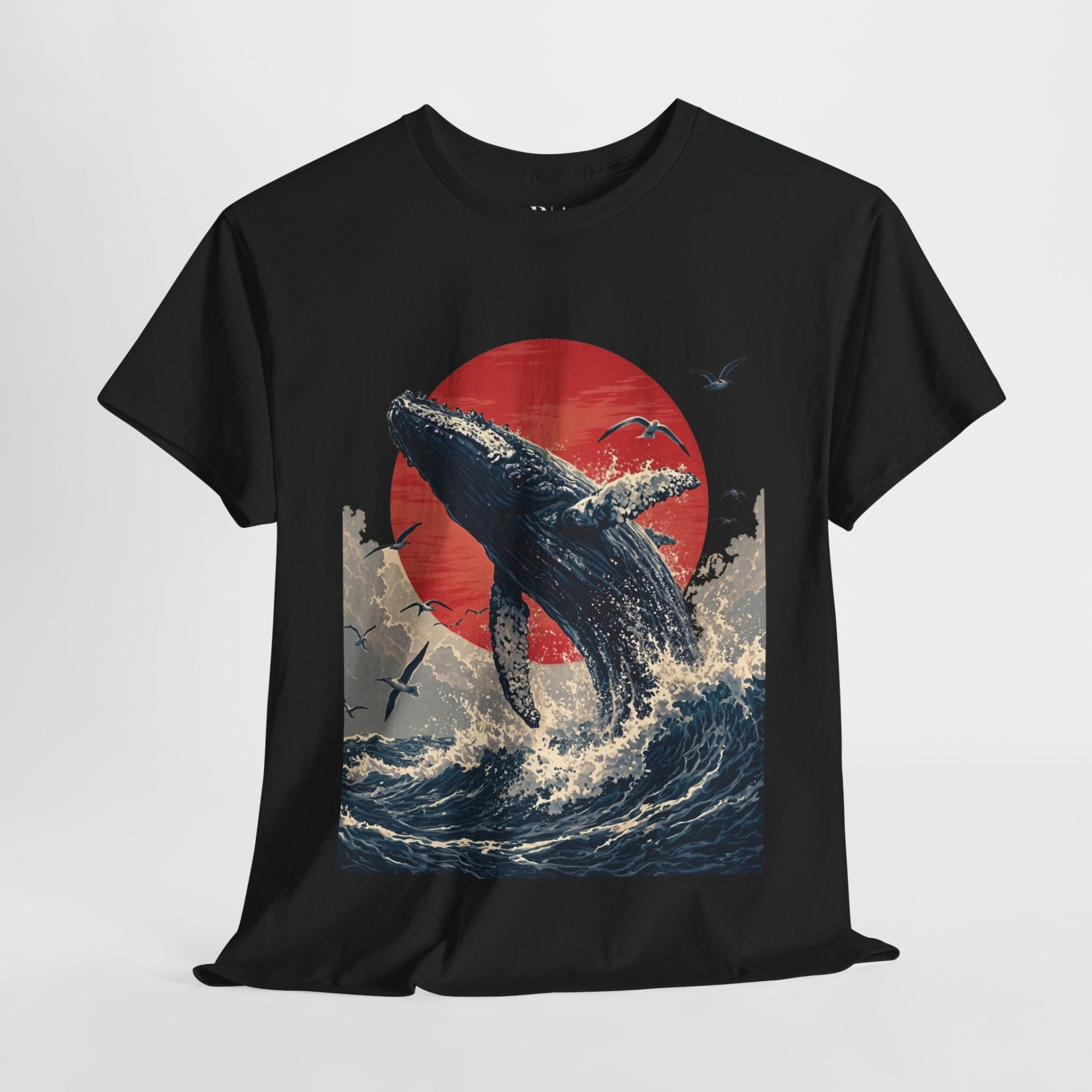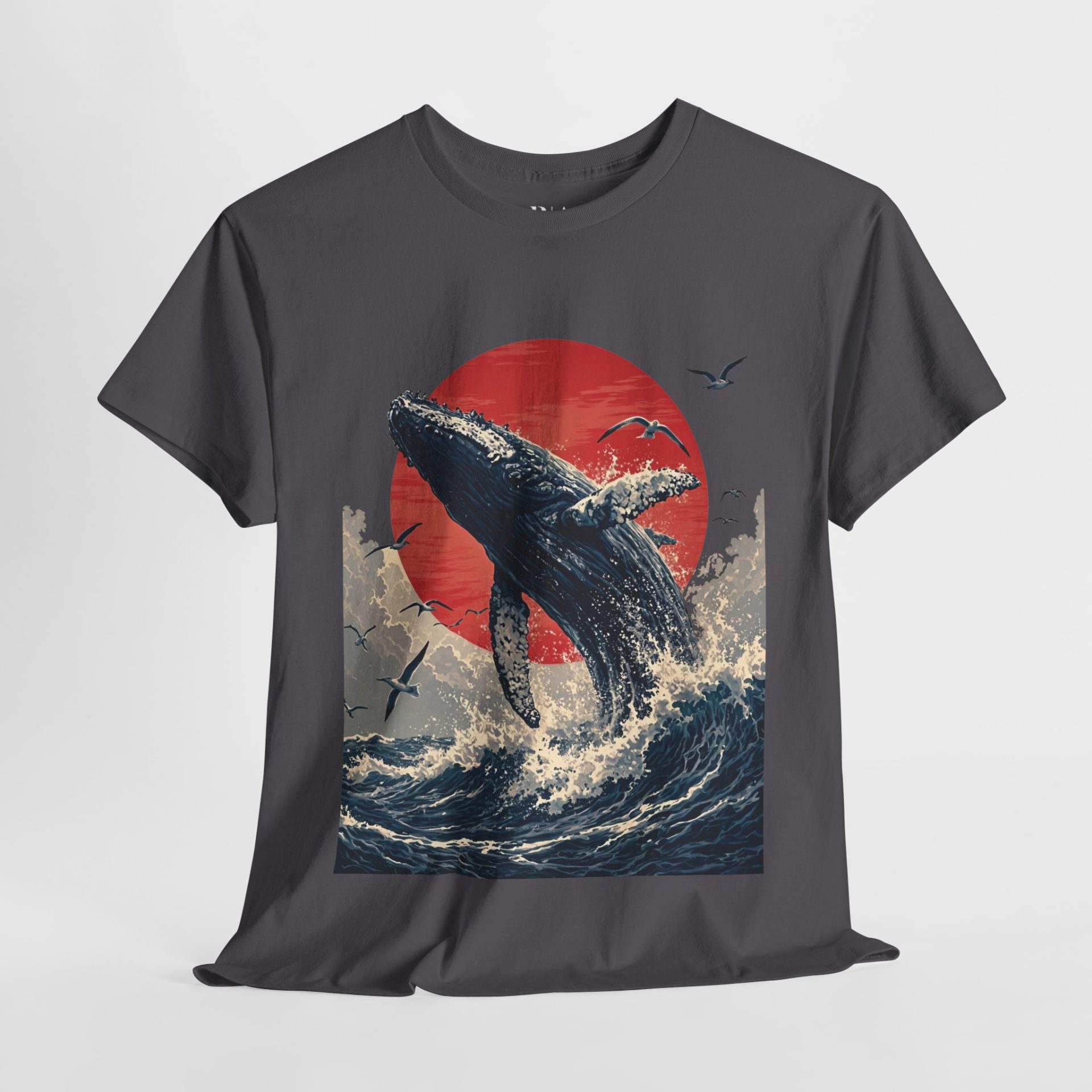 Make a splash with the “Breaking the Surface” T-shirt. Featuring a breathtaking illustration of a majestic whale breaching the ocean waves against a vivid red sun, this design captures the raw power and beauty of nature’s giants. Surrounded by soaring seabirds and dynamic waves, the artwork evokes a sense of awe and freedom. Crafted from 100% cotton for ultimate comfort, this tee is available in multiple colors—perfect for ocean lovers and anyone inspired by the wild, untamed sea