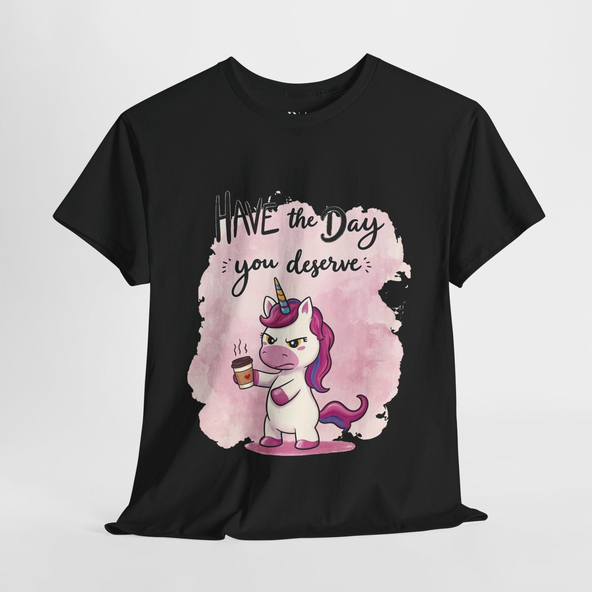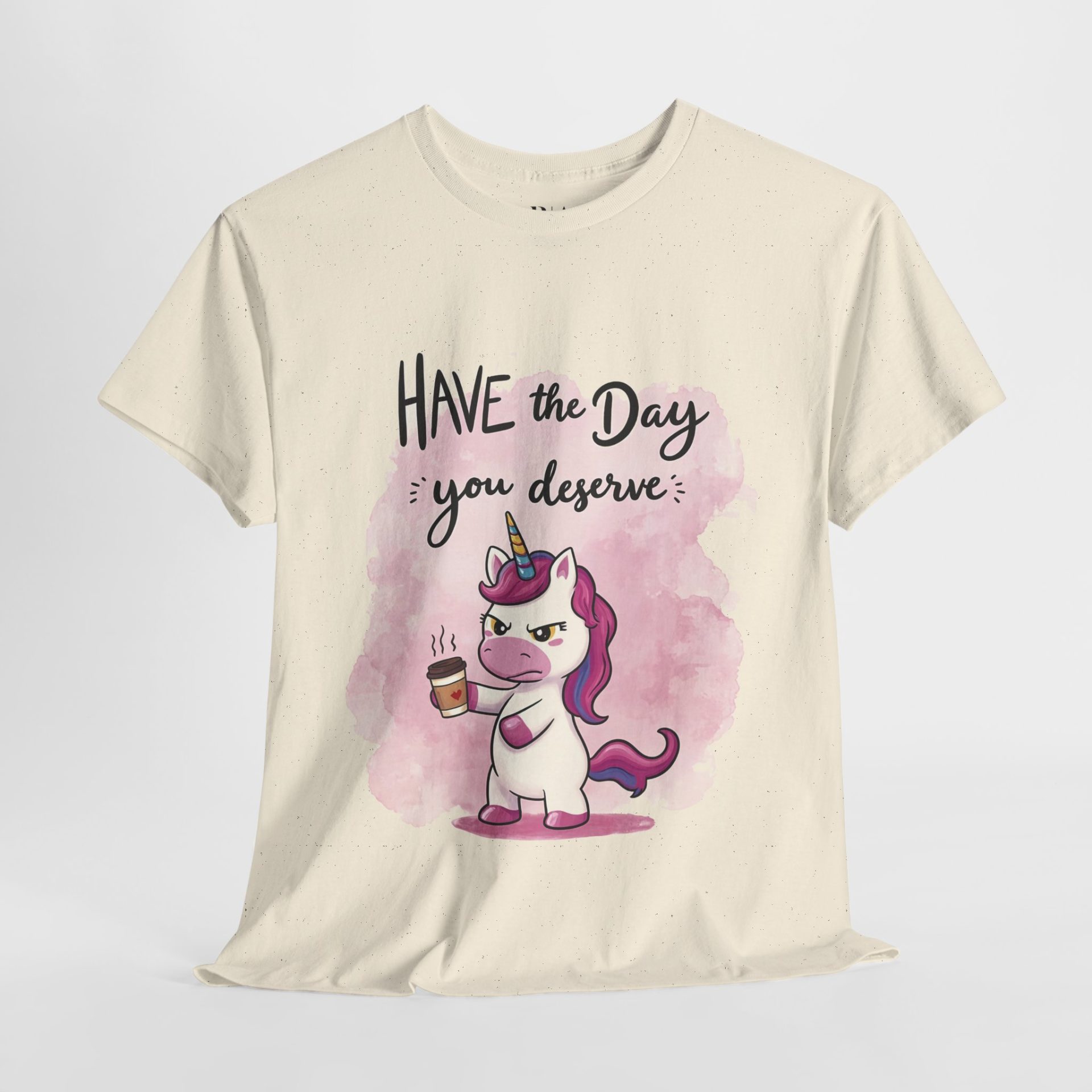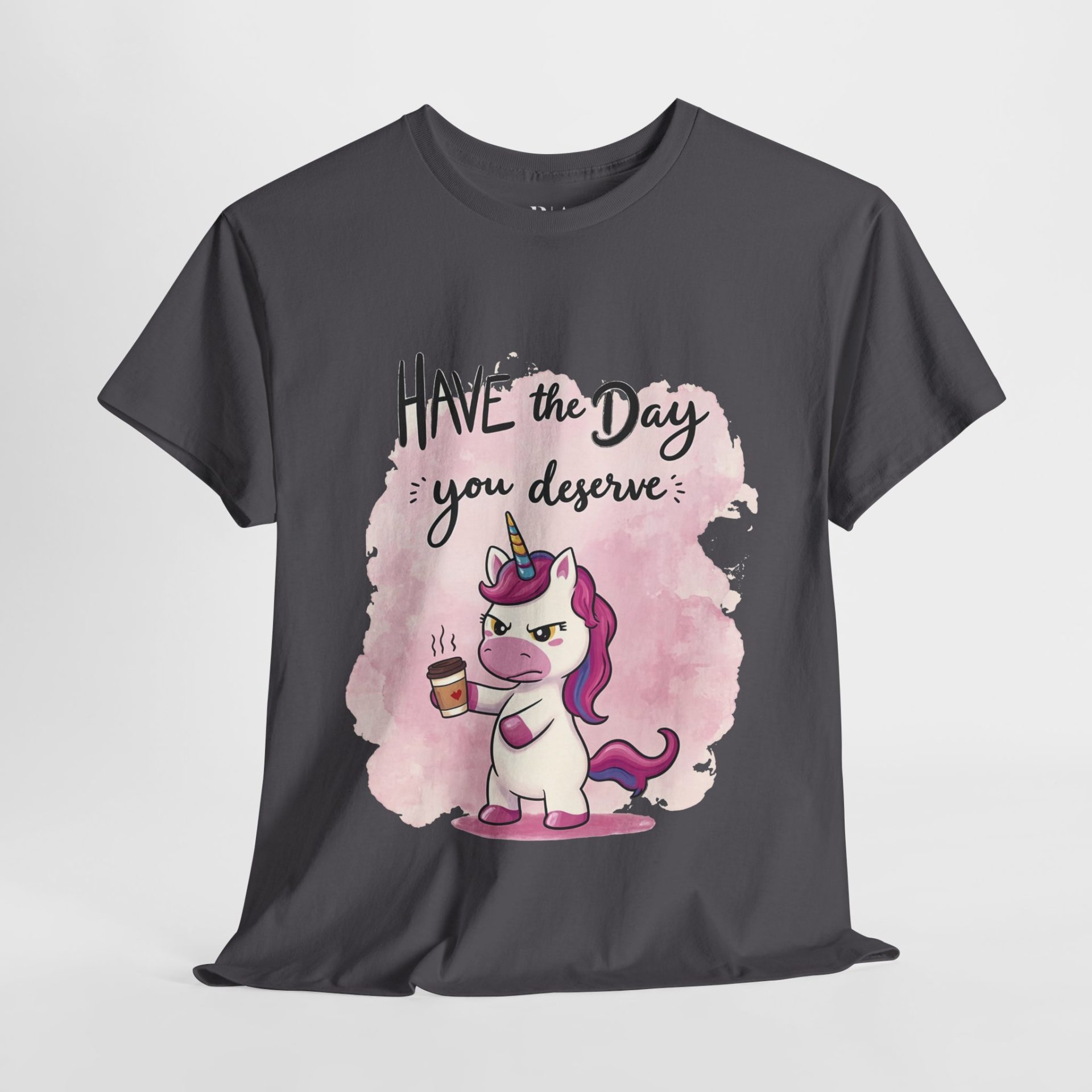 Start your day with a dose of sass in the “Caffeine and Consequences” T-shirt. Featuring a grumpy unicorn clutching a steaming cup of coffee and the cheeky phrase “Have the Day You Deserve,” this playful design perfectly captures those mornings when only caffeine can save you. Made from 100% cotton for all-day comfort, this tee is available in multiple colors to match your mood—whether you’re feeling magical or just mildly menacing. Ideal for coffee lovers and anyone who appreciates a touch of humor with their daily grind