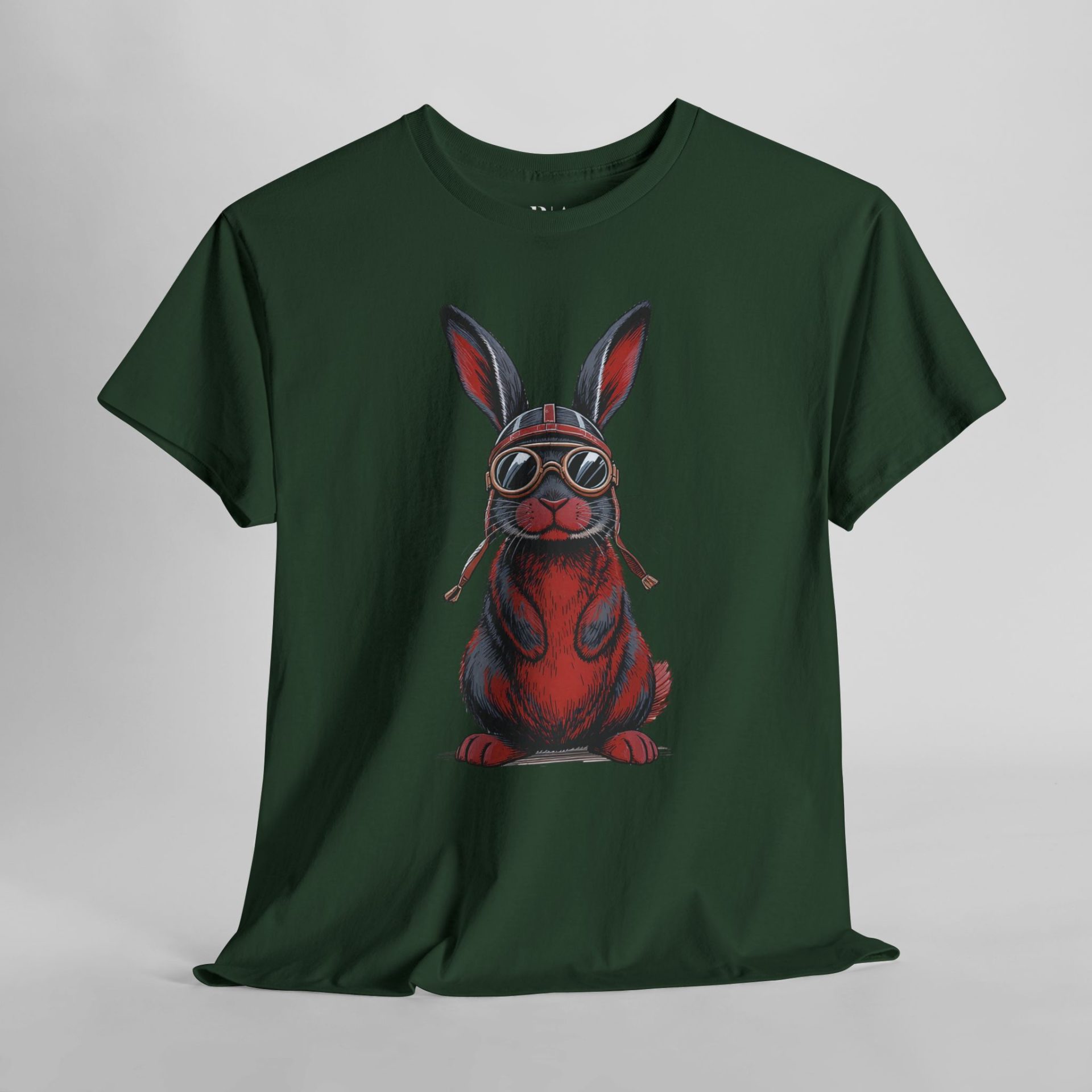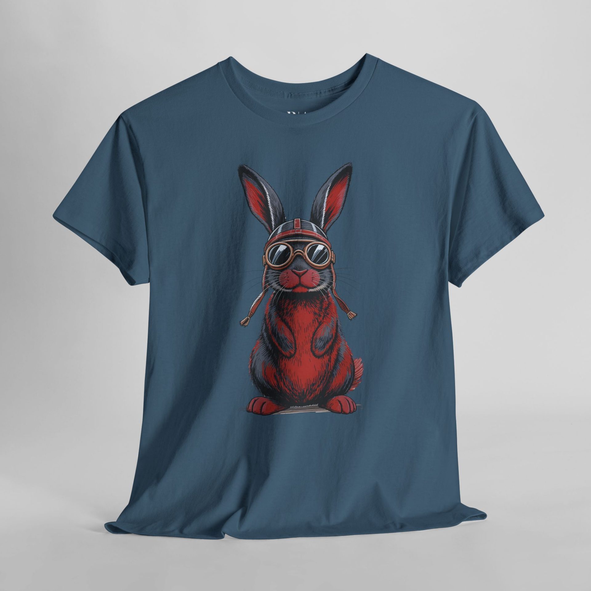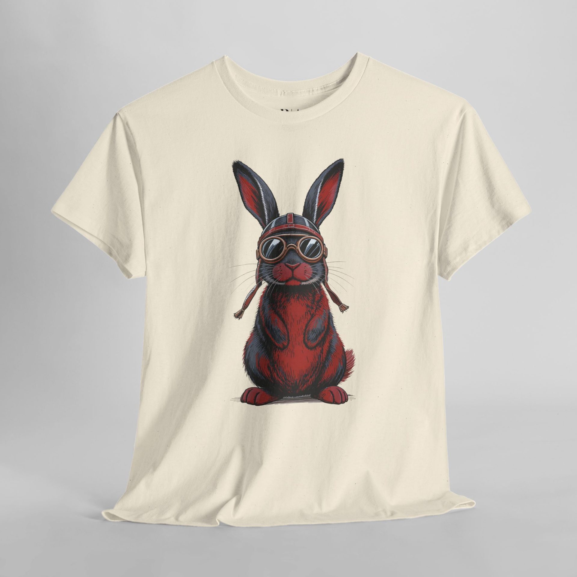Jet set in style with Captain Furrball, the 100% cotton tee that’s all about bunny business. Sporting vintage pilot goggles and a helmet, this red-and-blue daredevil is ready to take your wardrobe to new heights. Perfect for animal lovers, adventurers, or anyone looking to add some serious flight risk to their fashion game.