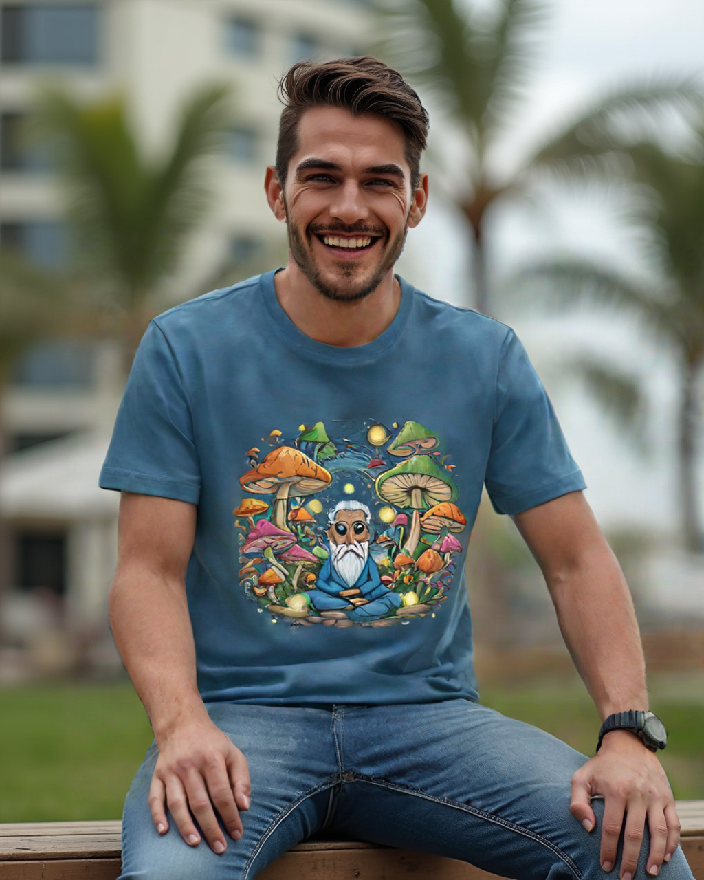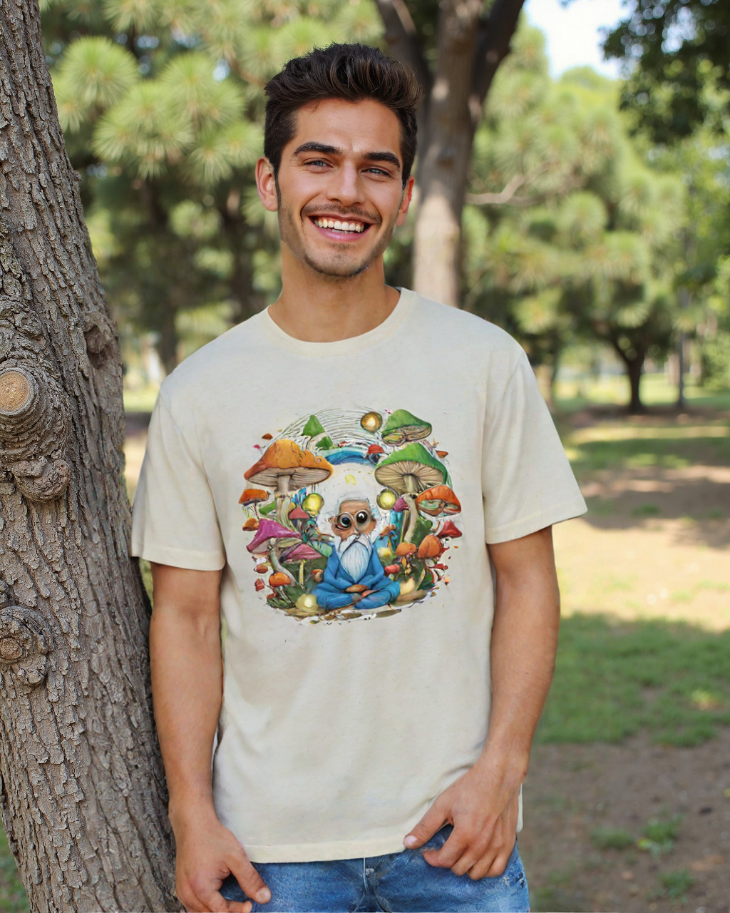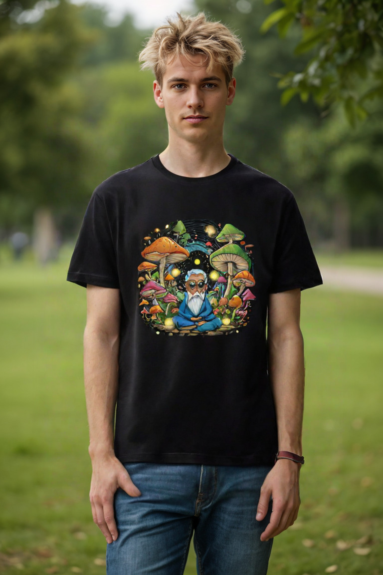Find your peace and marvel at the universe with the Cosmic Contemplation T-shirt. Made from 100% soft cotton, this tee brings an enchanting scene to life—a meditative figure surrounded by vibrant, oversized mushrooms and a dazzling galaxy of stars and cosmic lights. It’s not just a shirt—it’s a journey into mindfulness and otherworldly beauty, created for dreamers, free spirits, and adventurers ready to explore the unknown.