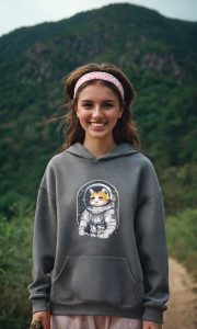 The minimalist white base color allows the astronaut cat design to take center stage, making this hoodie perfect for cat lovers and space enthusiasts alike. The blend of humor and cosmic adventure creates a conversation-starting piece that works well for casual wear or lounging. The spacious kangaroo pocket provides practical functionality while maintaining the hoodie’s laid-back aesthetic.