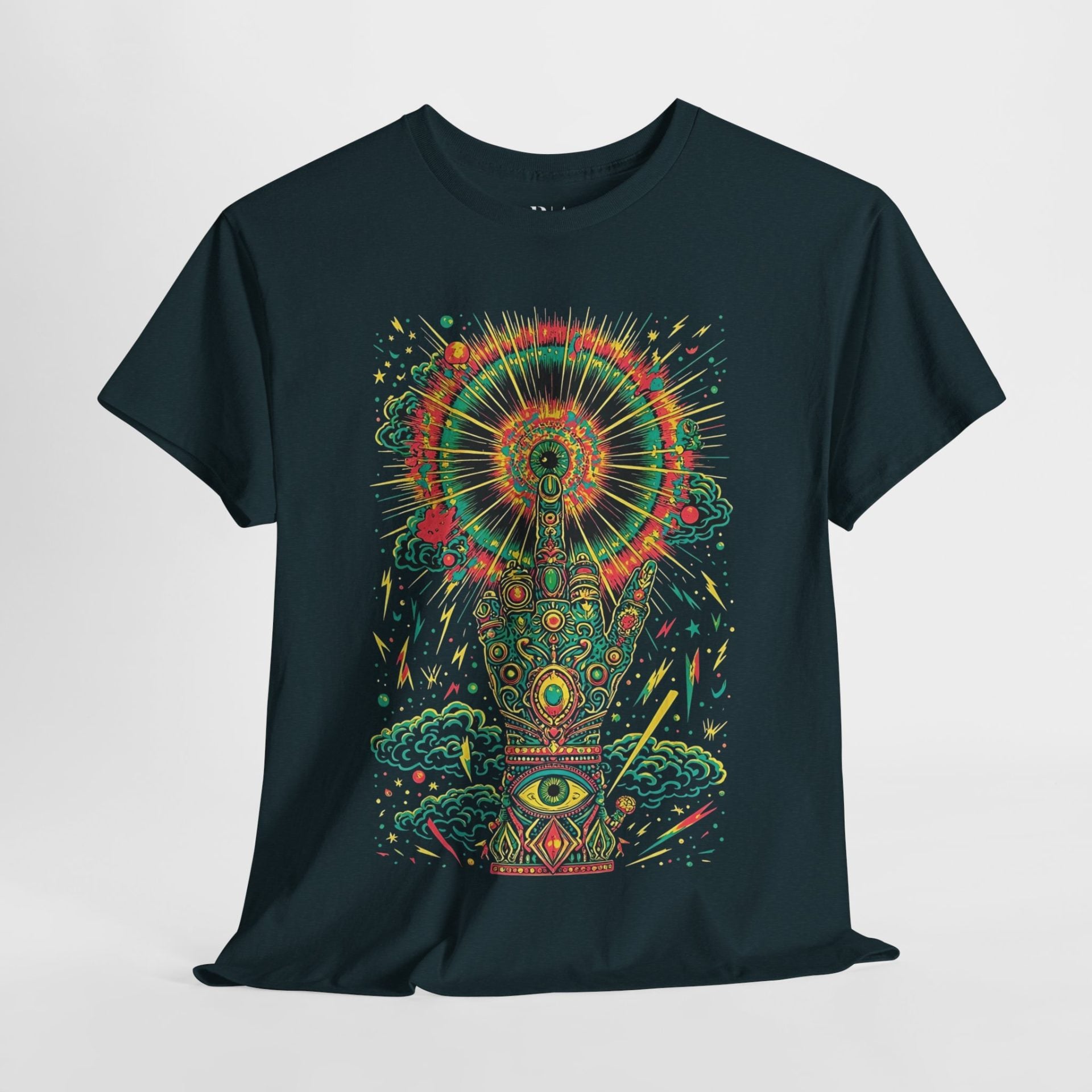 Get ready to electrify your wardrobe with the Electric Perception graphic tee! Made from ultra-soft 100% cotton and rocking a comfy tagless neckline, this shirt brings the shock factor. Featuring a psychedelic hand blasting with electricity and cosmic vibes, it’s a neon explosion of reds, yellows, and greens that screams enlightenment meets creative chaos. Available in multiple colors, this tee is for bold souls who aren’t afraid to spark a little curiosity (and envy). Wear it loud, wear it proud, and show the world your high-voltage style!