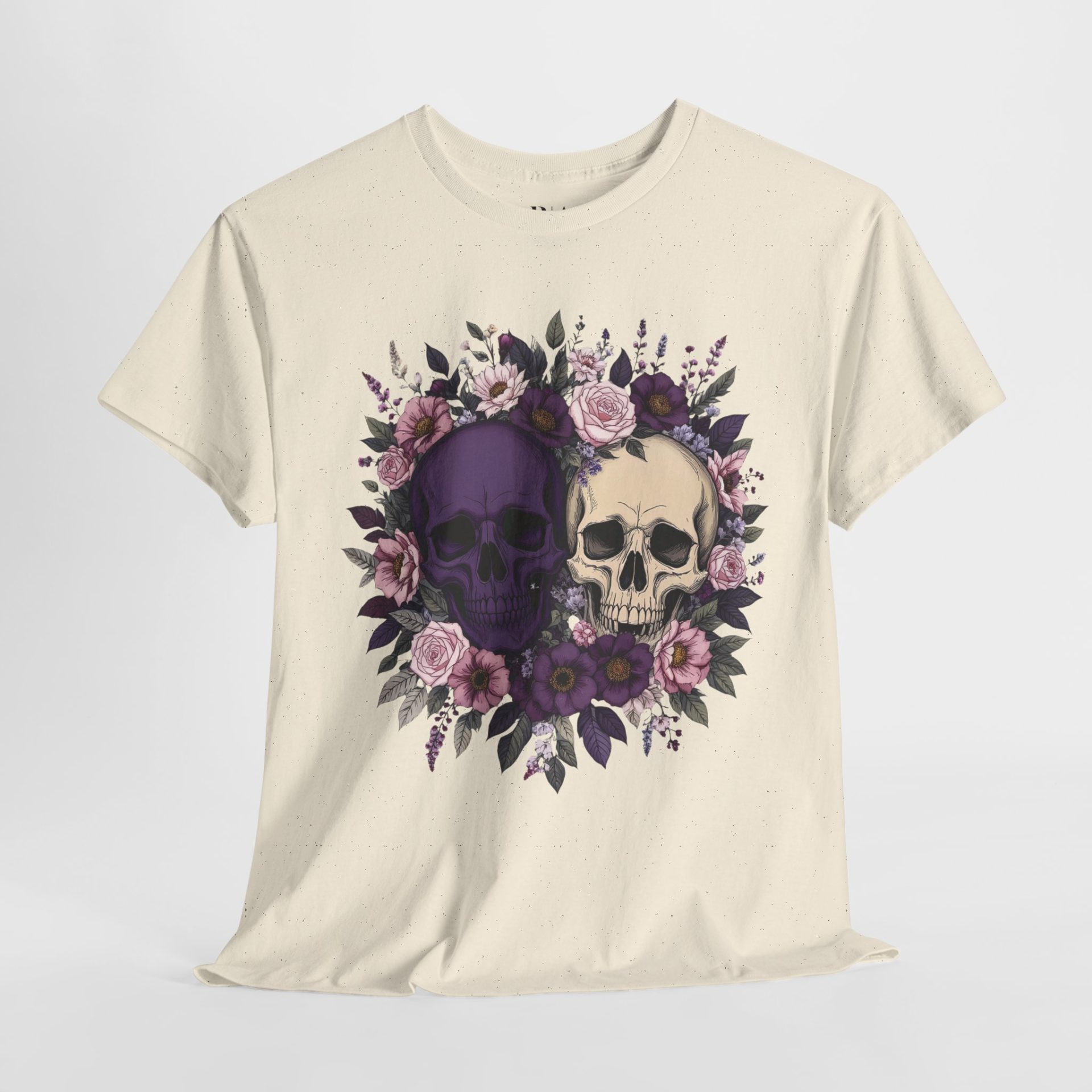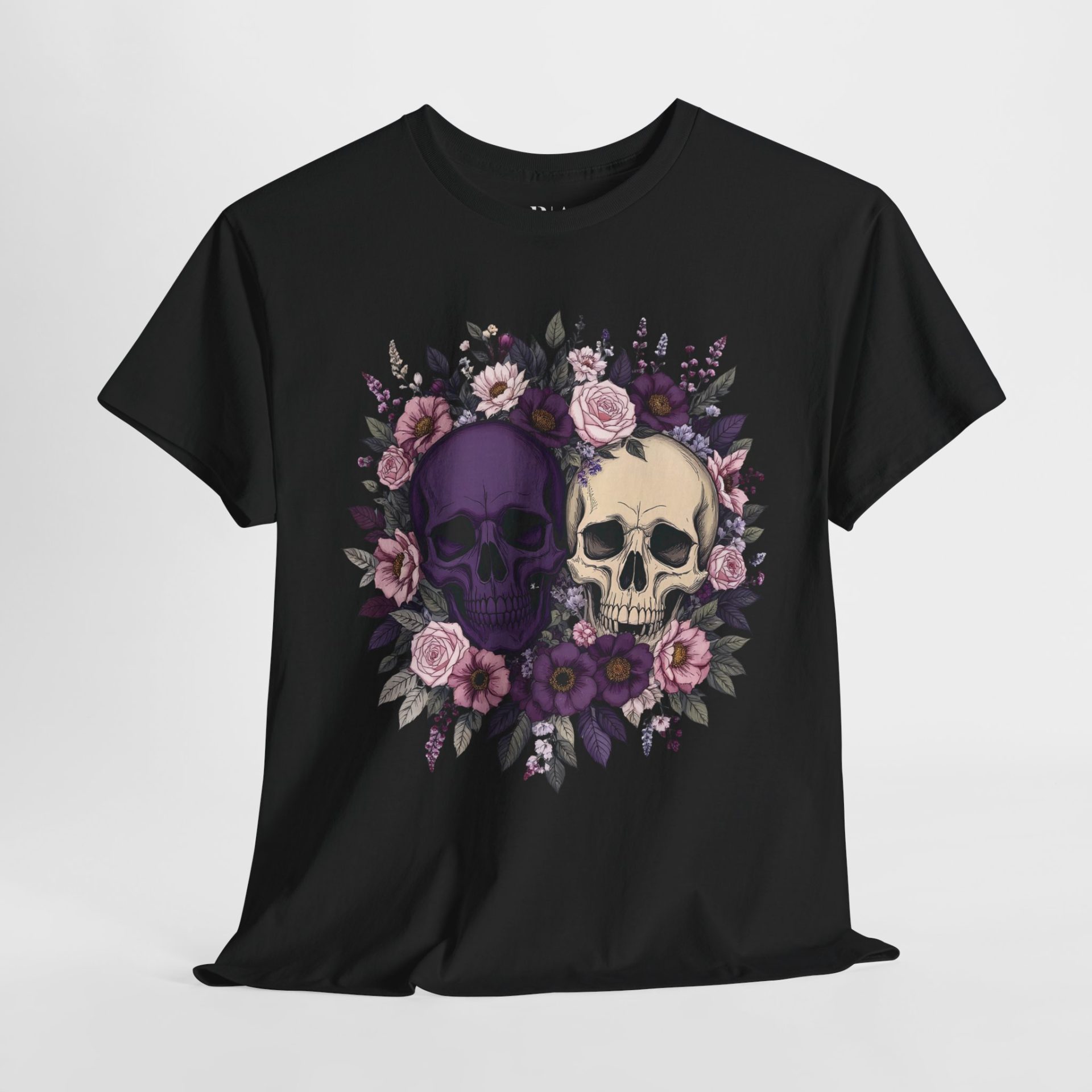 The Floral Requiem tee is where edgy meets elegant. Made from 100% soft cotton, it showcases a mesmerizing design—a detailed human skull surrounded by vibrant roses and wildflowers in deep purples and pinks. This bold graphic effortlessly fuses gothic vibes with botanical beauty, making it perfect for those who want their style to stand out. With multiple color options, this tee adds a touch of dramatic flair and floral charm to any wardrobe. Ready to make a statement?