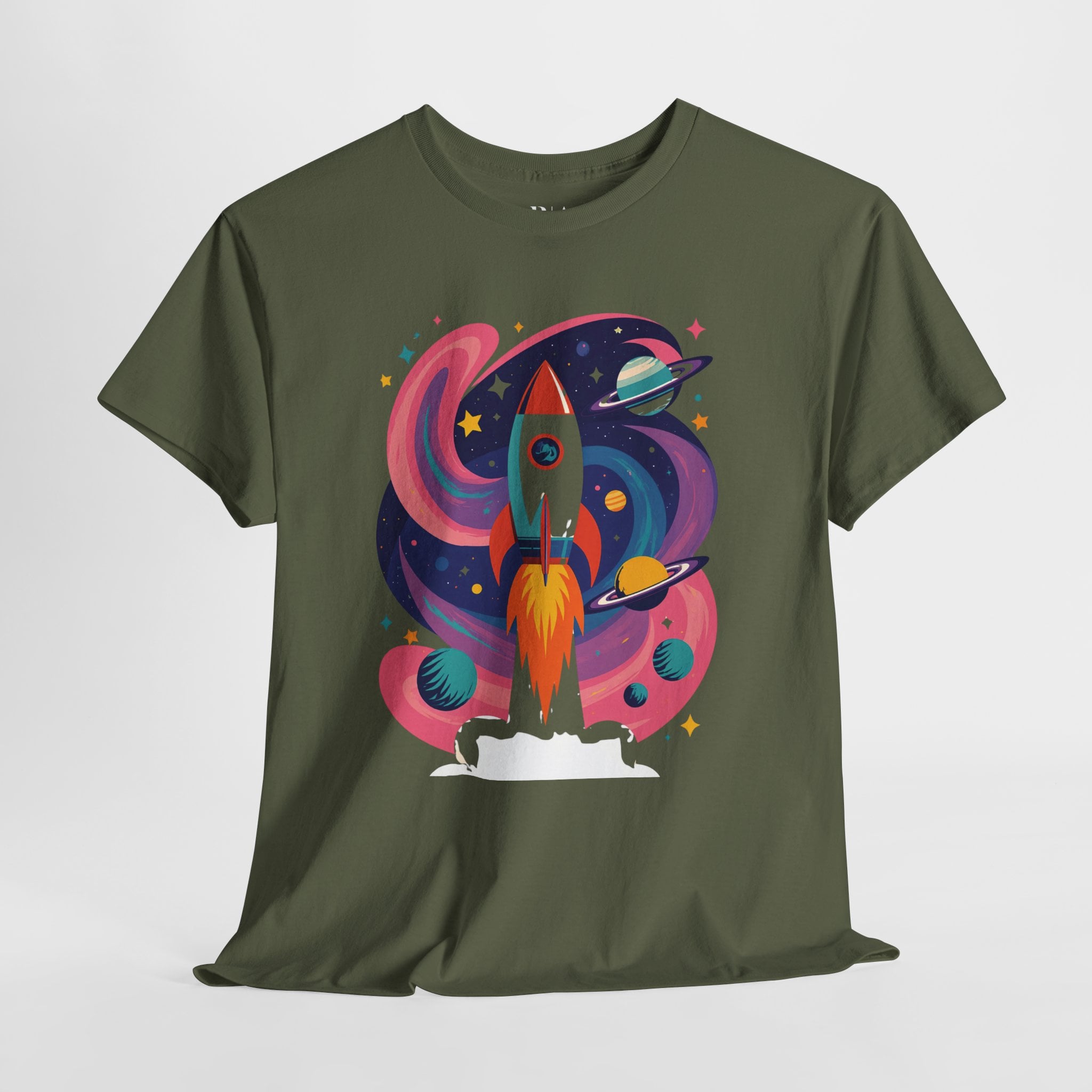 Launch your style into orbit with the Funkadelic Flight tee, featuring a bold retro rocket blasting through a swirl of neon galaxies and planets. Crafted from 100% soft cotton and available in multiple colors, this shirt is perfect for dreamers, space lovers, and anyone ready to stand out on their next cosmic adventure.