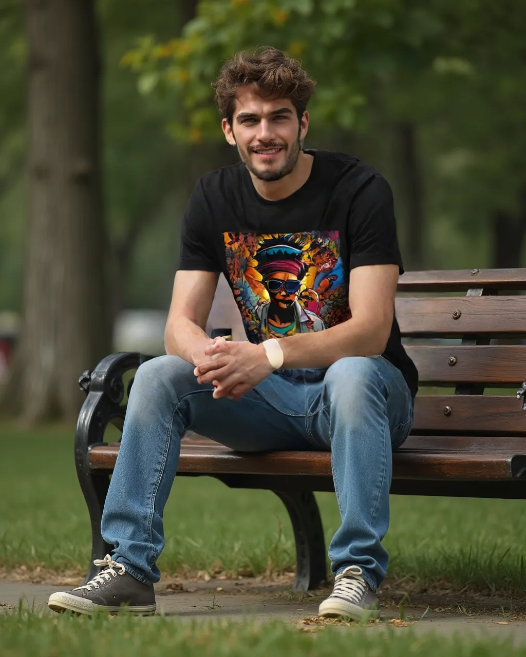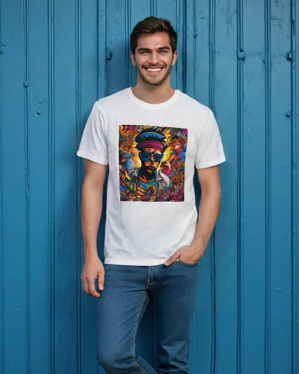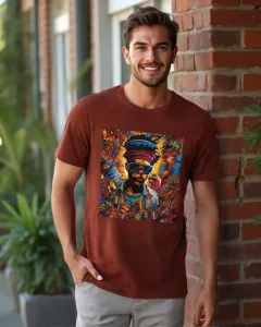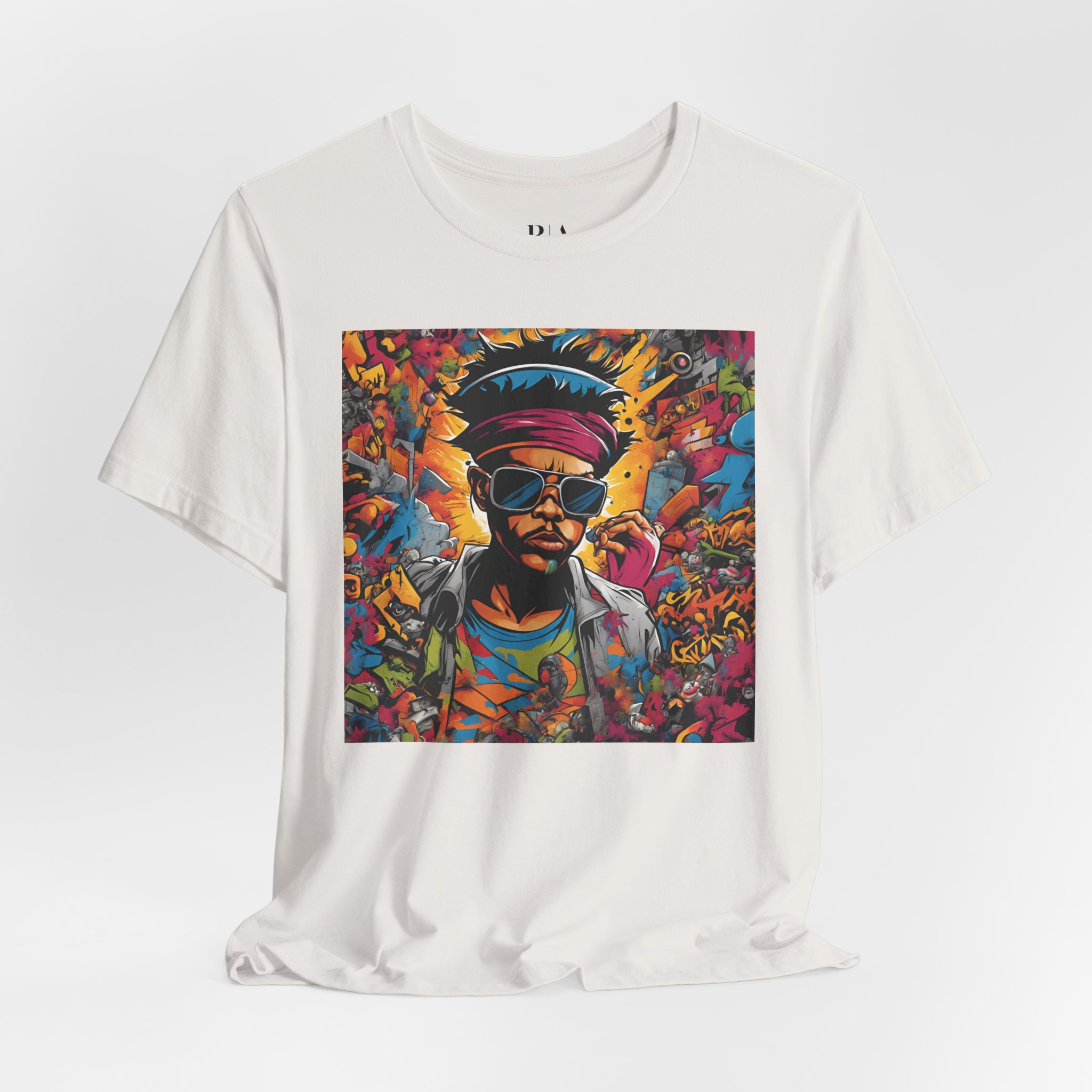 Turn heads with “Colorful Rebel,” a bold t-shirt design that brings urban art to life. Featuring a striking portrait of a character rocking sunglasses and a magenta beanie, this vibrant piece captures the essence of street art. Set against an electrifying graffiti backdrop, every detail bursts with energy and attitude, making it the perfect choice for anyone ready to stand out.