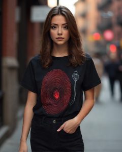 Rock your own rhythm with the “Imprinted Rhythm” T-shirt! Featuring a bold red fingerprint with an anatomical heart at its core, this design says, “My vibe, my rules.” A white turntable tonearm adds a slick musical twist, blending identity and sound in perfect harmony. Crafted from 100% cotton, it’s as comfy as it is cool. Available in multiple colors, it’s the ultimate pick for music lovers, creatives, and anyone grooving to their own beat.