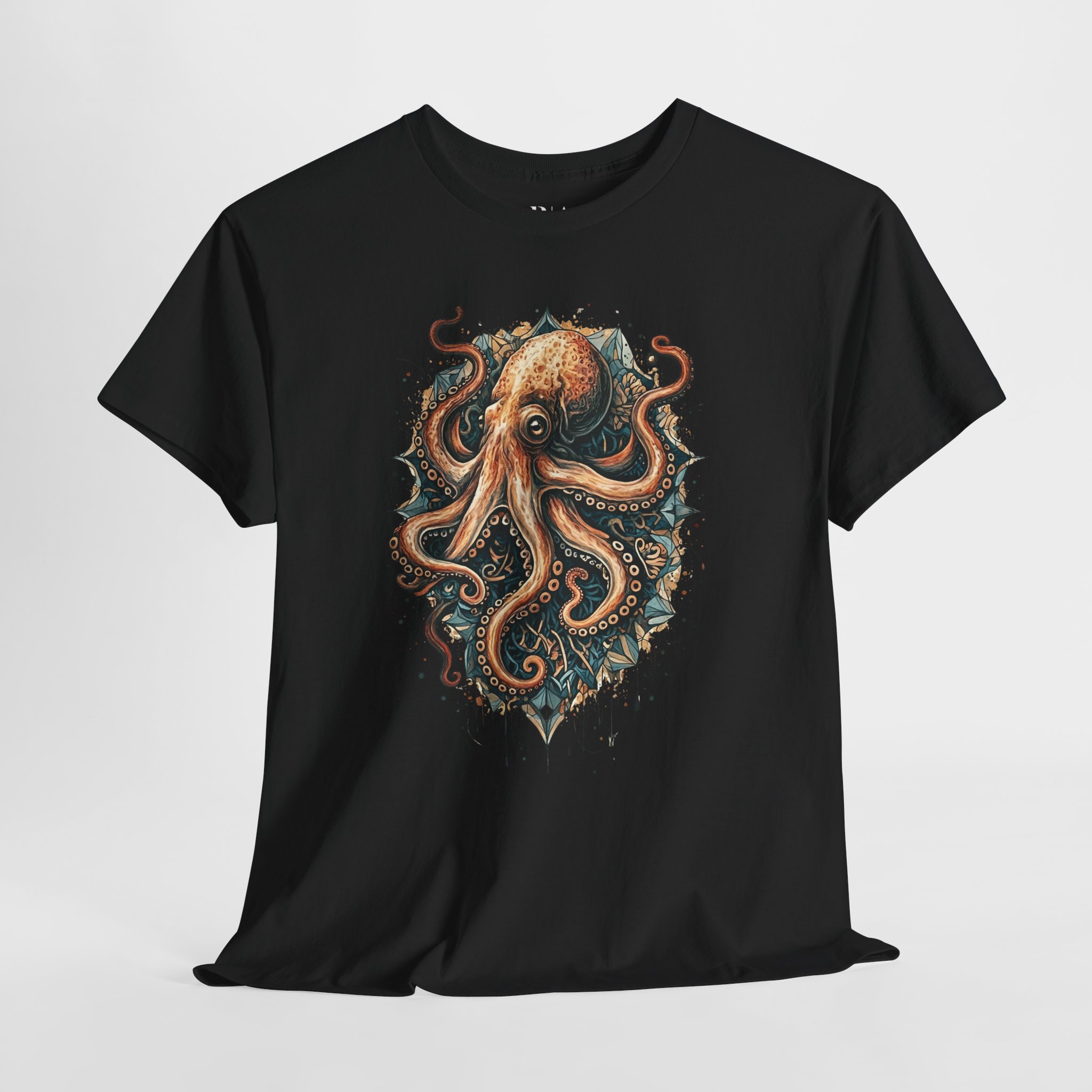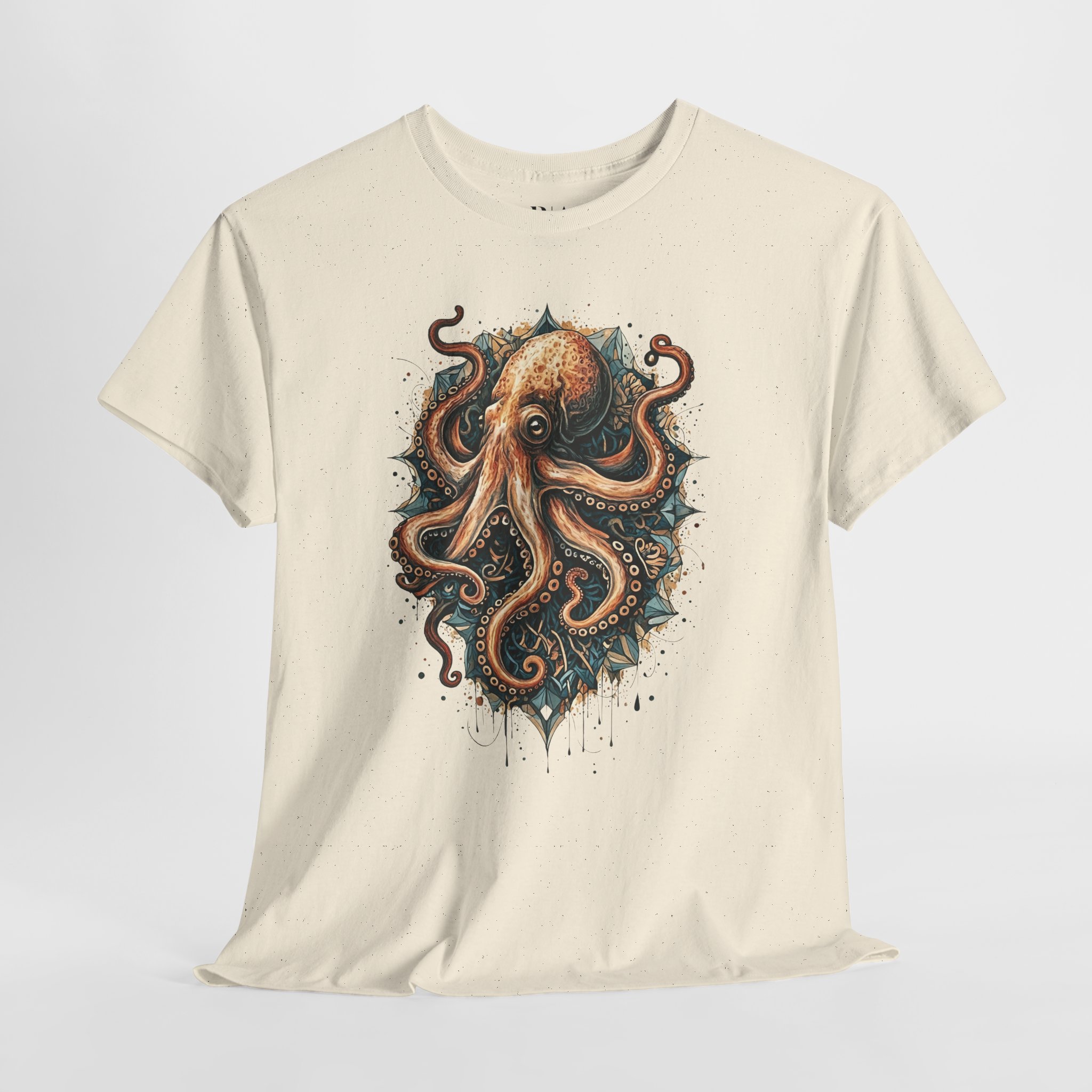 Channel deep-sea cunning with the Ink & Instinct tee. This 100% cotton shirt features a brilliantly detailed octopus, all coiled tentacles and watchful eye, framed by shards of ocean color and splattered ink. Soft, breathable, and available in multiple colors, it’s perfect for sailors, artists, and anyone who trusts their gut as much as their brain.