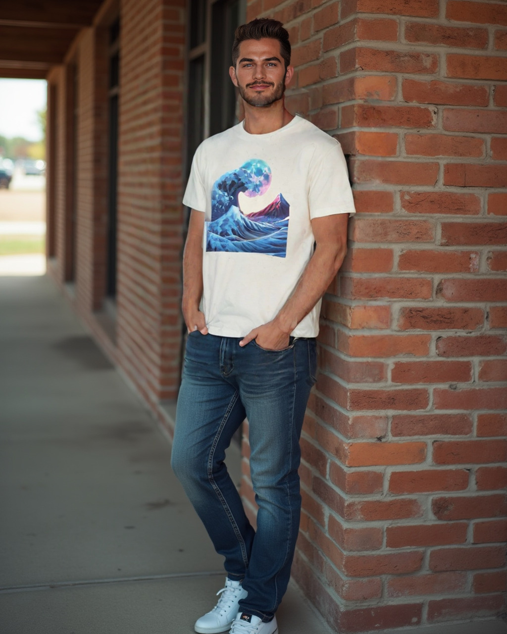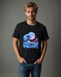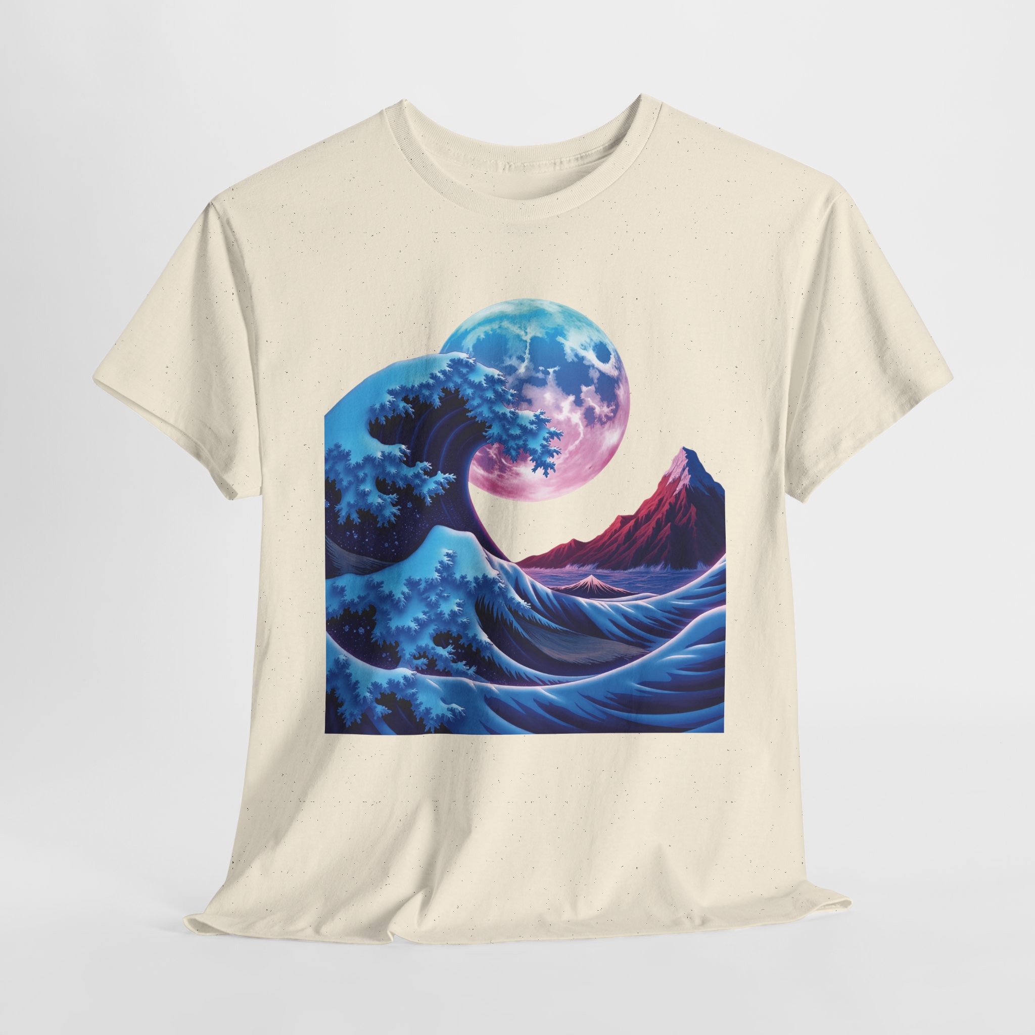Dive into a celestial masterpiece with the Lunar Tsunami t-shirt. Featuring a mesmerizing design of towering ocean waves under a radiant full moon, set against a backdrop of jagged mountains, this artwork blends cosmic wonder with natural power. Printed on soft, durable cotton and available in multiple colors, it’s perfect for those who appreciate bold, otherworldly aesthetics and unparalleled comfort.