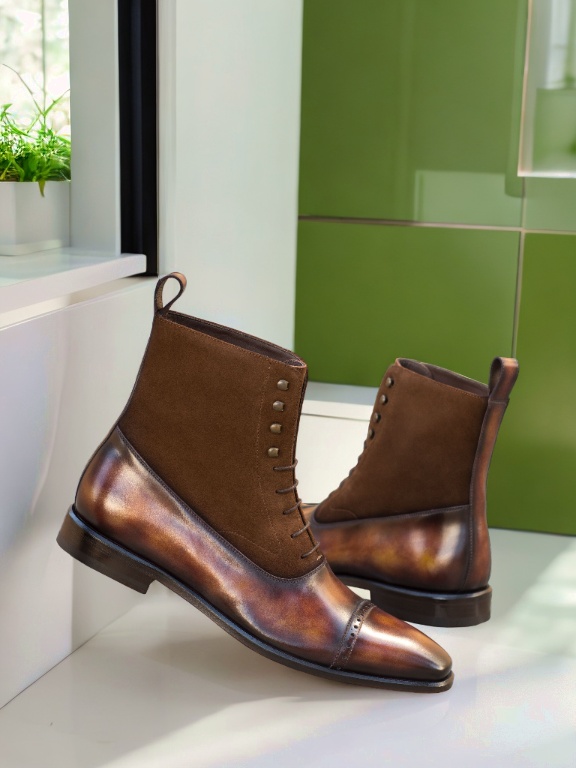 The Kinzie St. Balmoral Boot No. 4466 features an exquisite combination of Italian leather and Fire Museum Hand Patina on the vamp, creating a unique and eye-catching texture. The medium brown Luxe suede on the tongue and quarter adds a touch of luxury, making you stand out in the crowd.