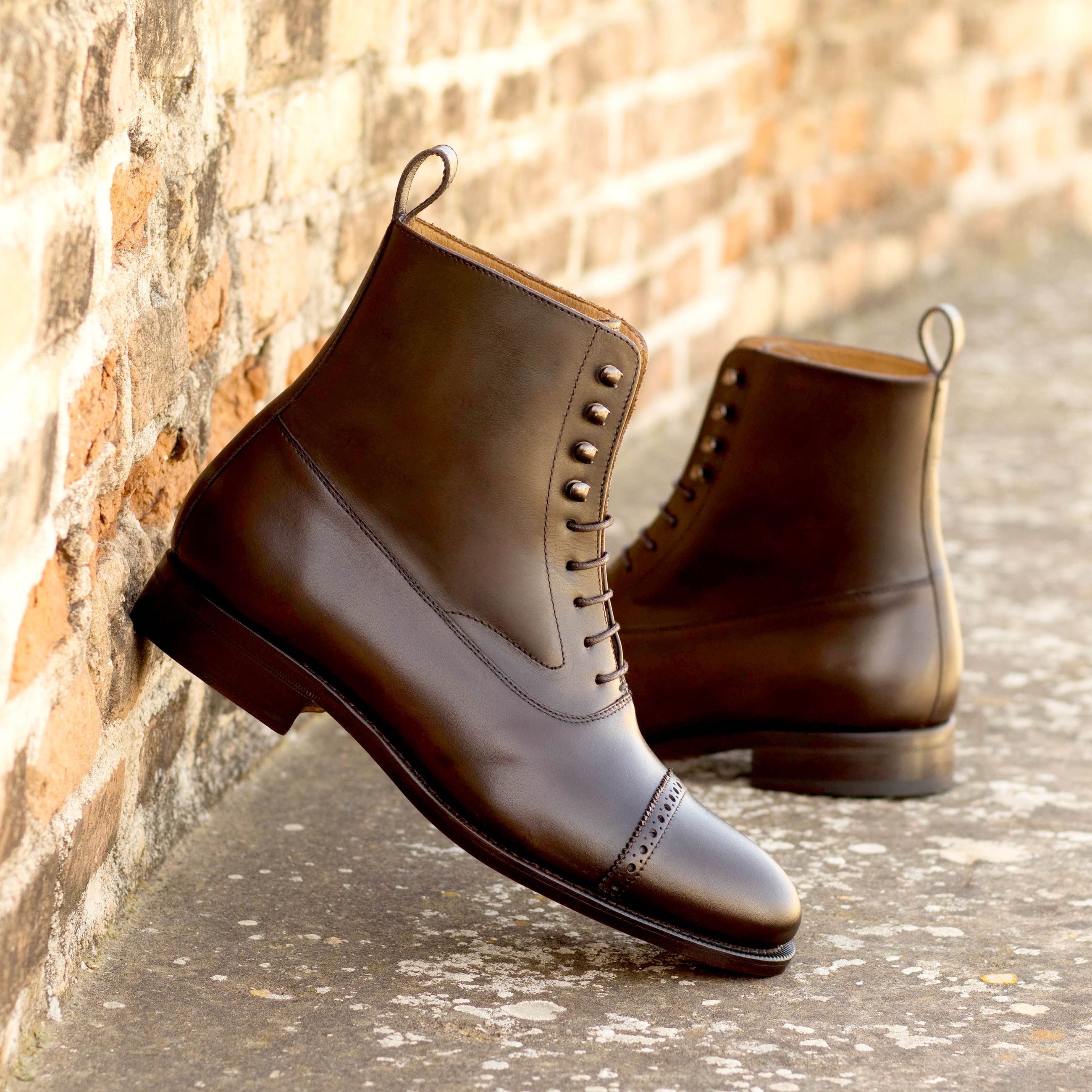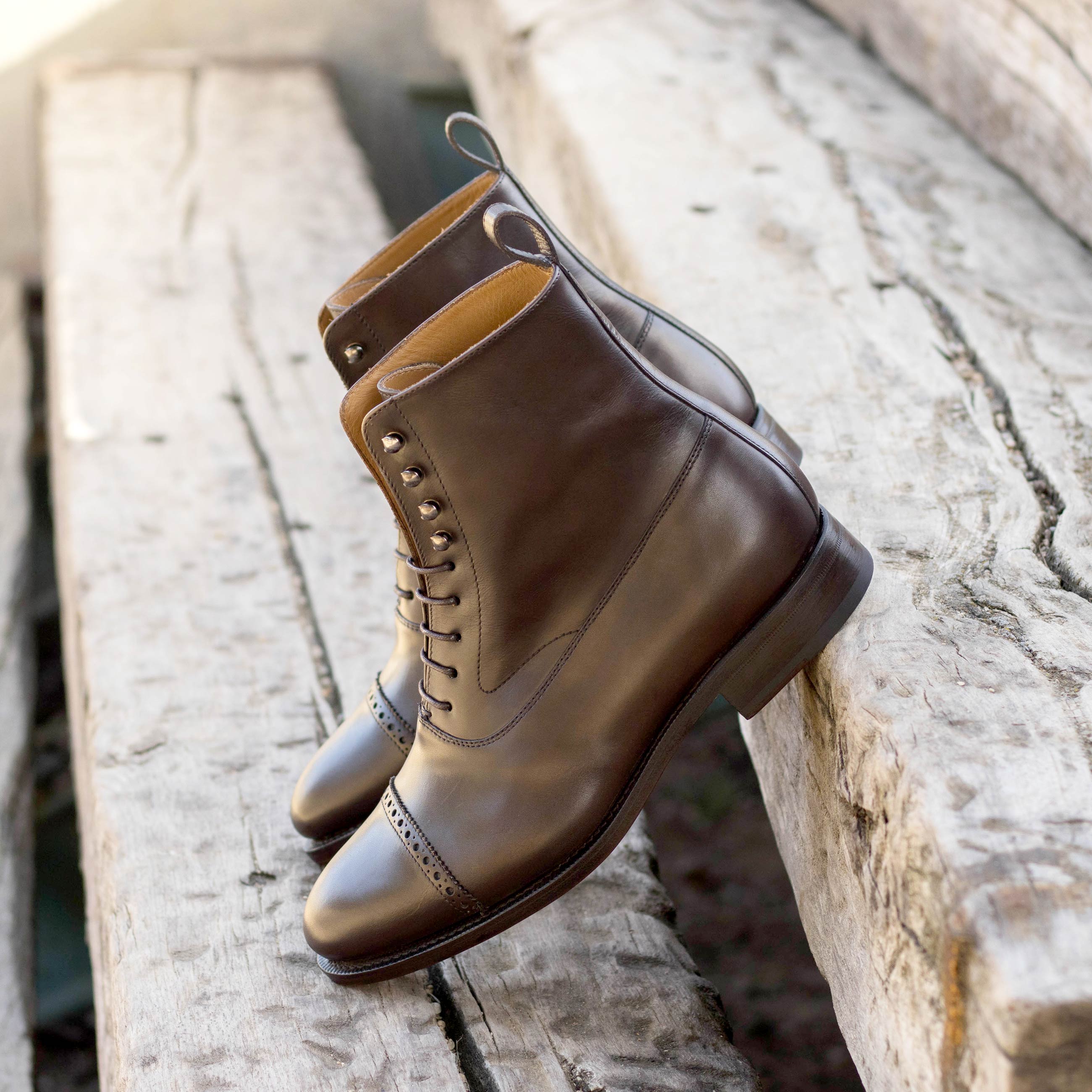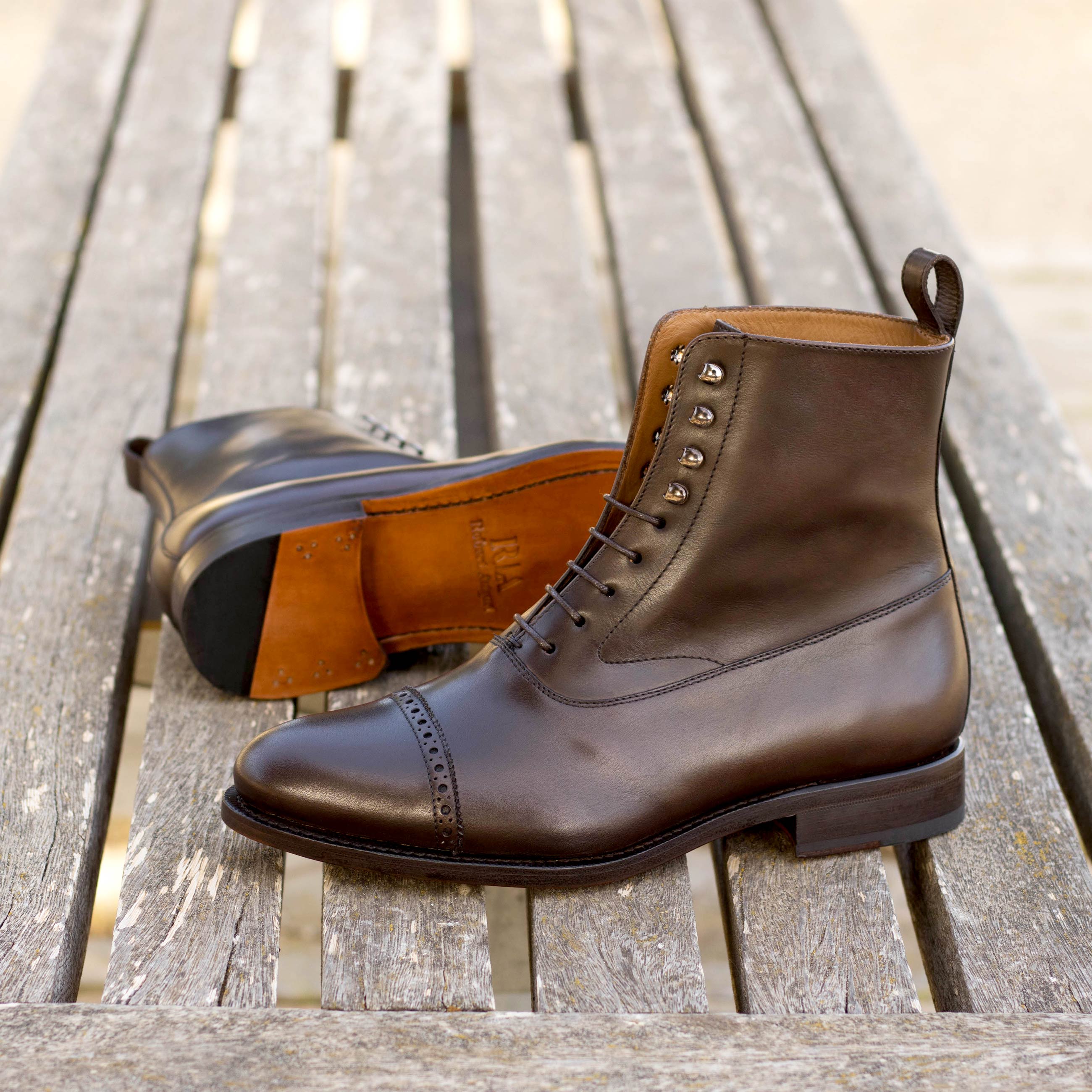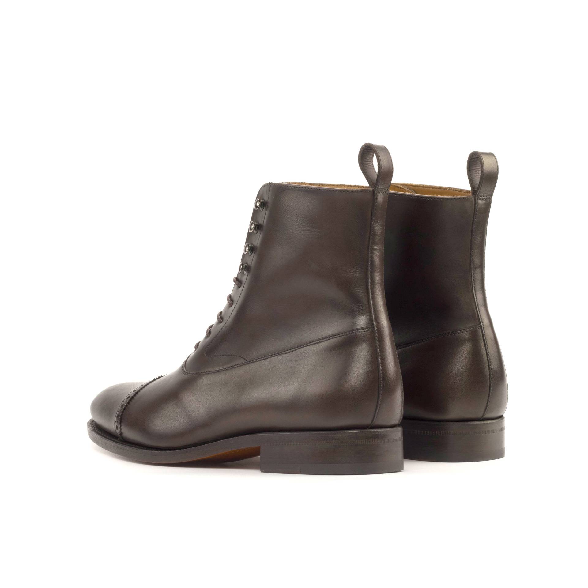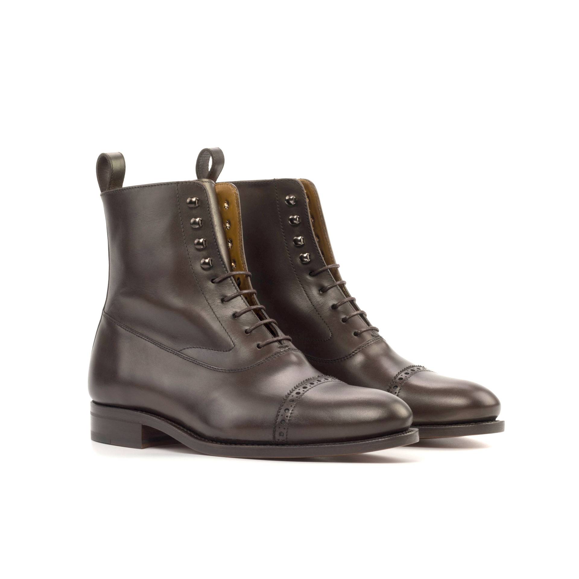 Are you looking for a timeless classic that combines elegance and class in equal measure? Look no further than the Kinzie St. Balmoral No. 1783 from Robert August. Crafted from luxurious dark brown hand-painted calf leather, this shoe provides a bold sophistication that will take your style to the next level. The graphite eyelets subtly pop against the earthy colors, and the tan calf leather lining ensures superior comfort with every step. Its unmistakable style is sealed by the classic cognac leather sole plain providing just the right amount of sheen to make sure you look your best wherever life takes you. The Kinzie St. Balmoral No. 1783 is perfect for any occasion, combining timelessness and versatility into one increasingly rare package.