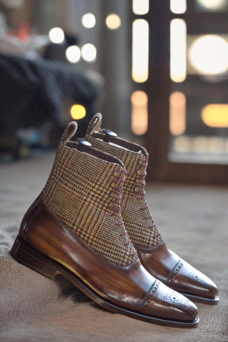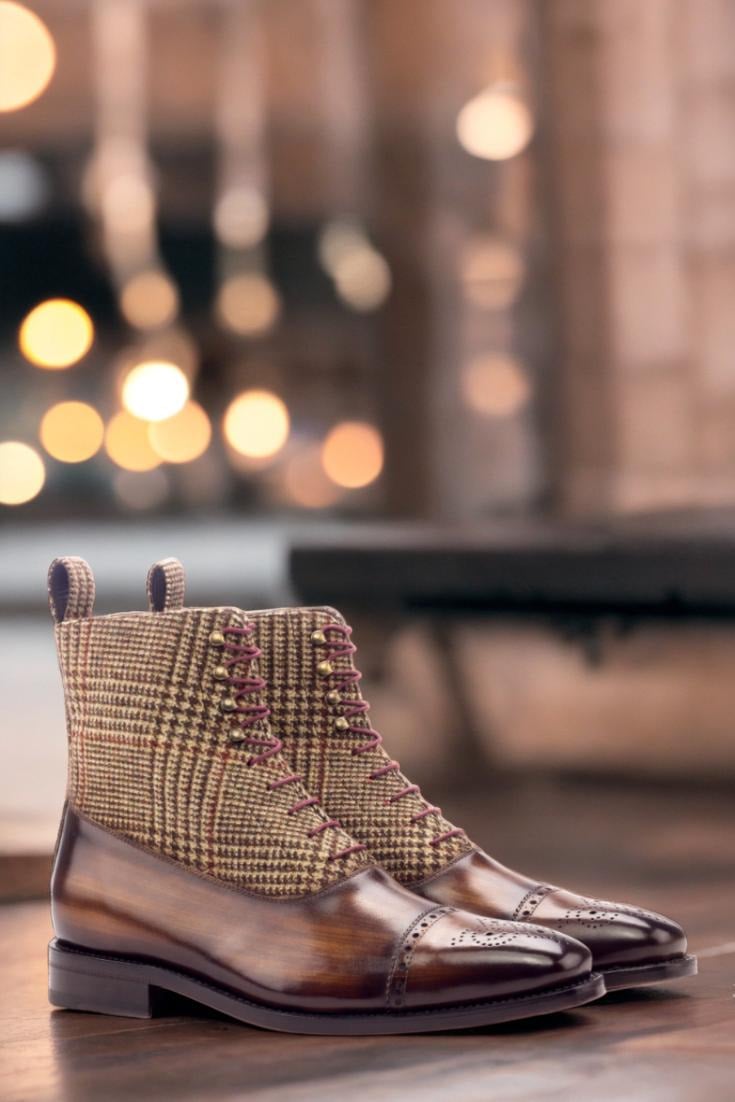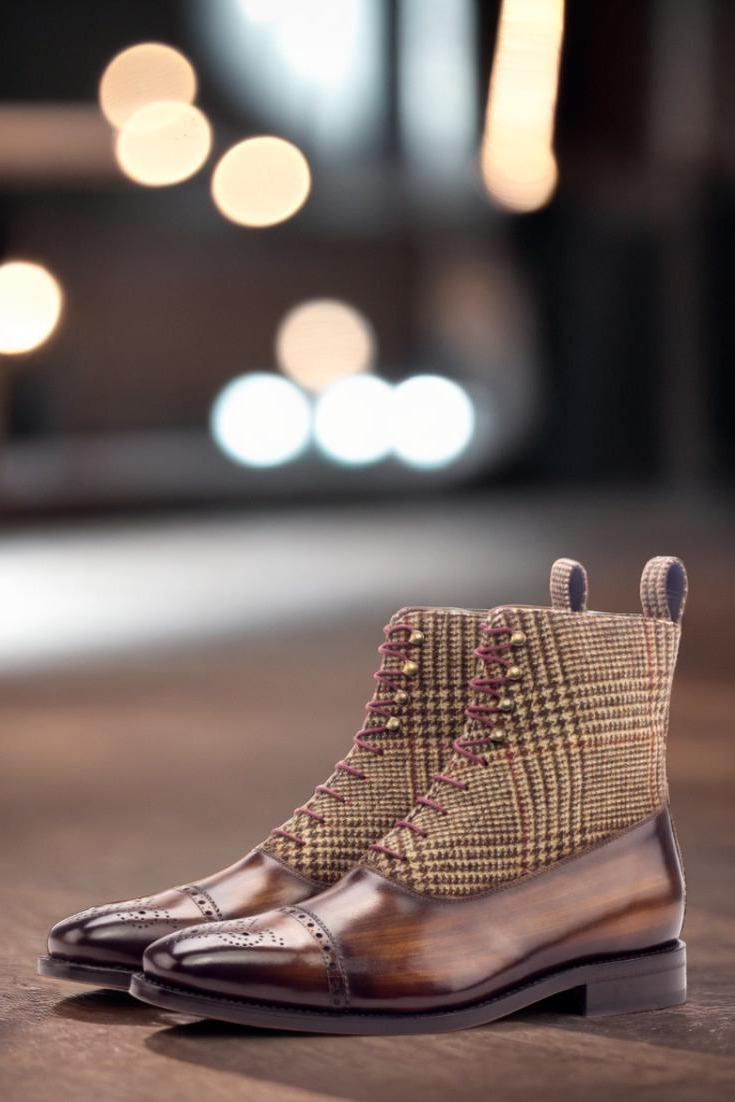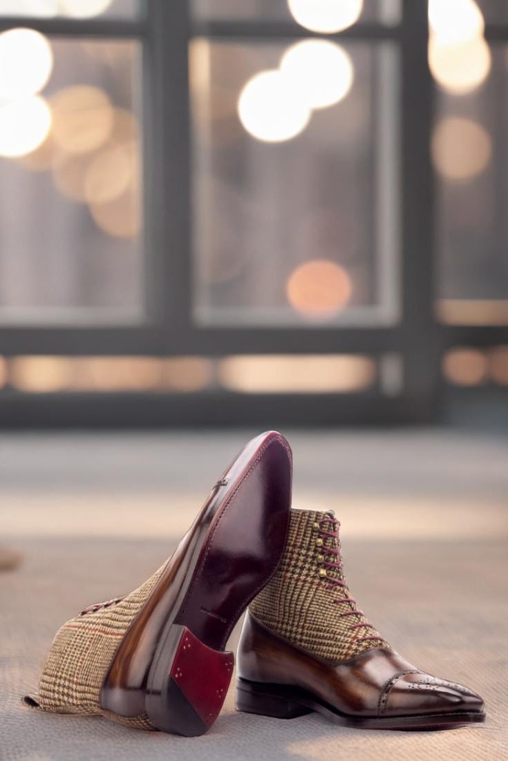 Elevate your style with the Kinzie St. Balmoral Boot No. 3304 from Robert August. Crafted with the finest Italian Calf Leather and a timeless hand patina in rich, warm brown, this boot is a statement piece that will set you apart from the rest. The unique combination of leather and wool tweed on the uppers adds a touch of sophistication and luxury to this classic design.