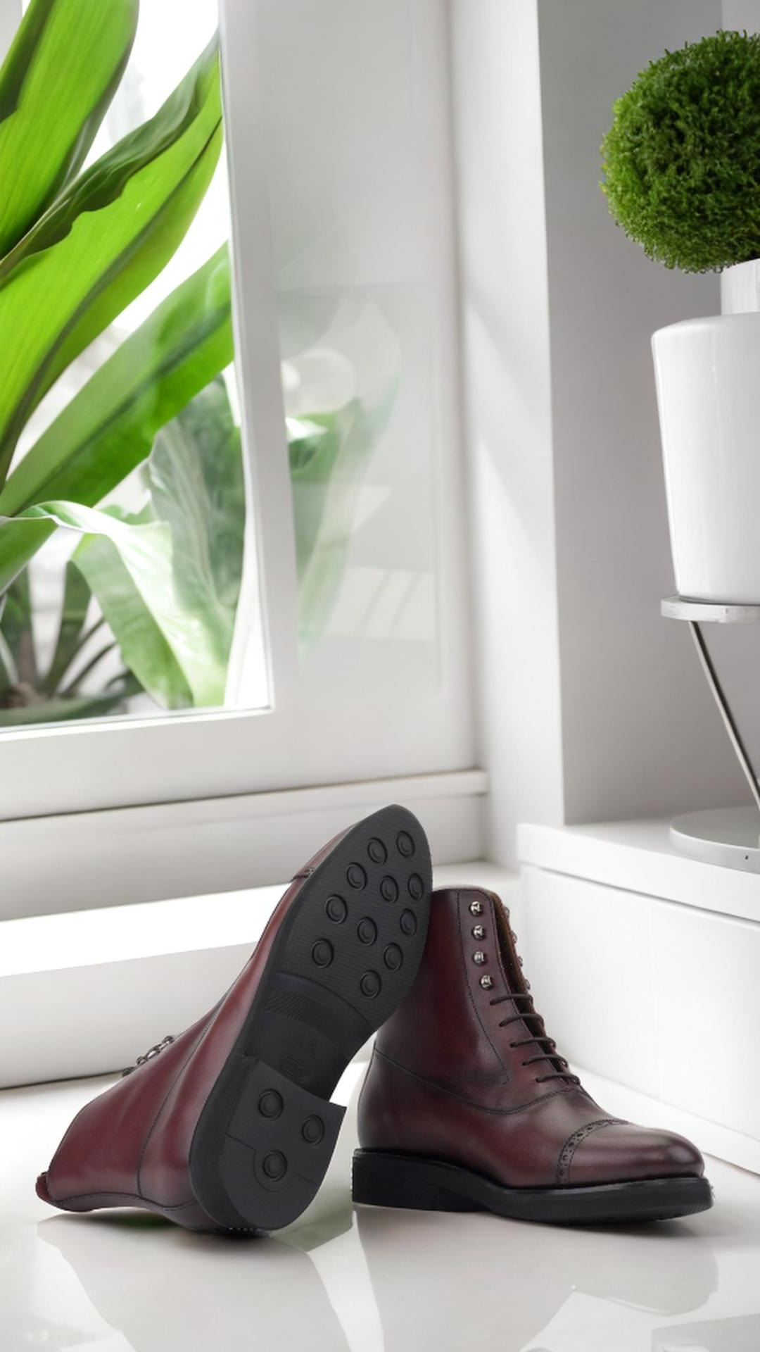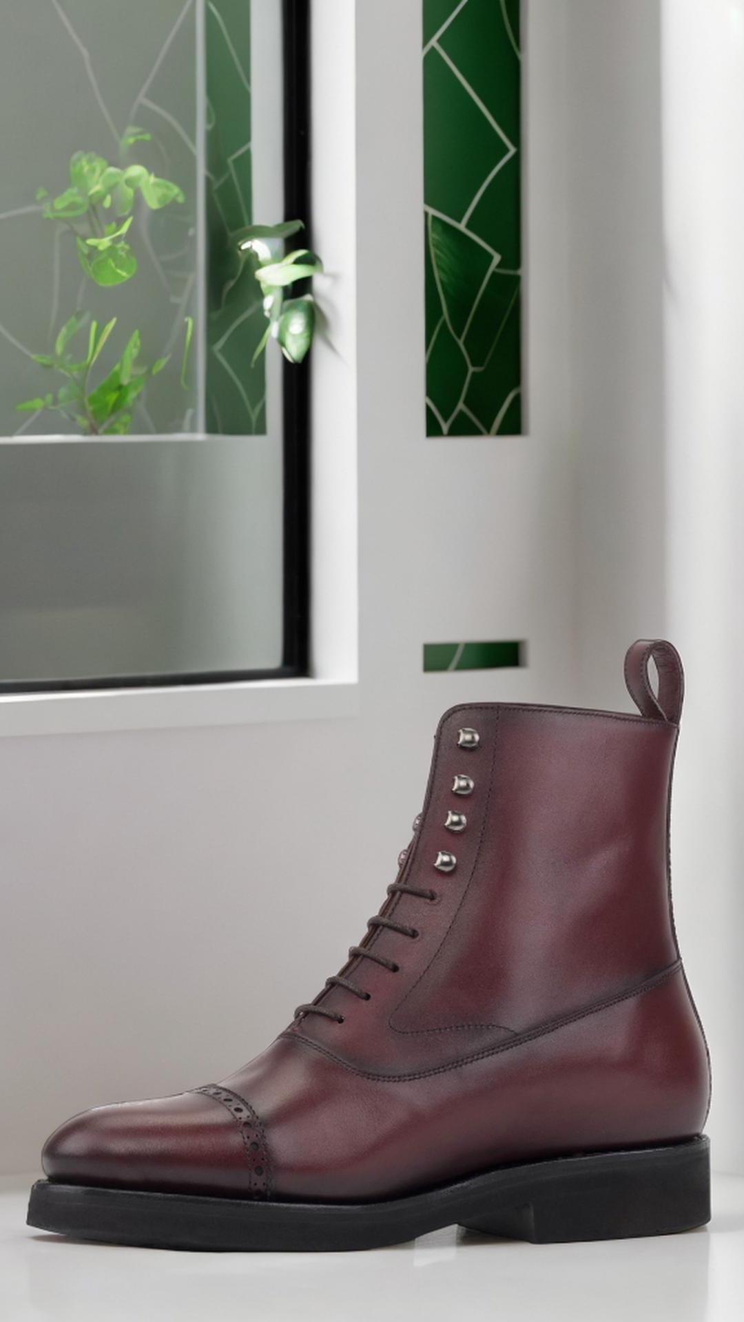 Step into timeless sophistication with The Kinzie St. Balmoral No. 8300, where burnished burgundy box calf leather creates a rich, lustrous finish that commands attention in any boardroom or social gathering. The light burnishing technique reveals subtle depth and character in the leather, ensuring each pair develops its own unique patina over time. Graphite eyelets and round brown laces provide refined contrast against the deep burgundy, while the tan calf leather lining delivers premium comfort that feels as luxurious as it looks.