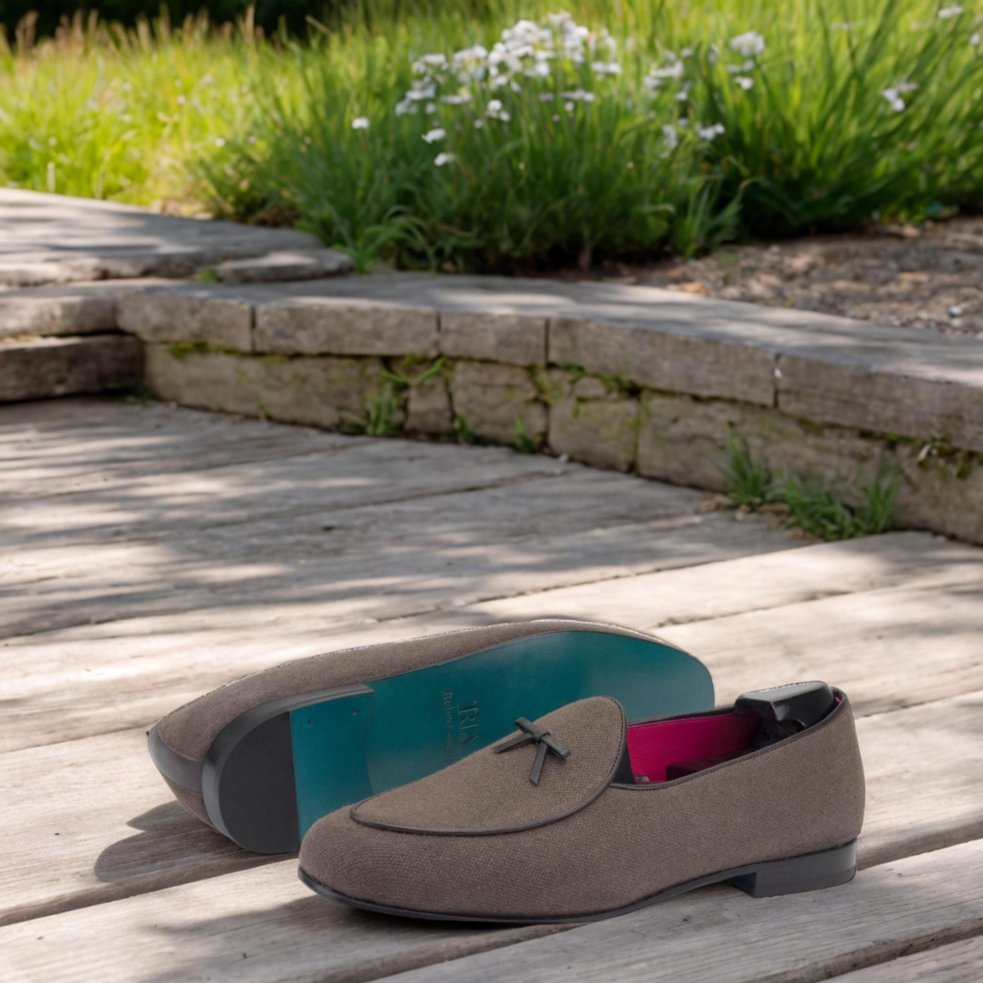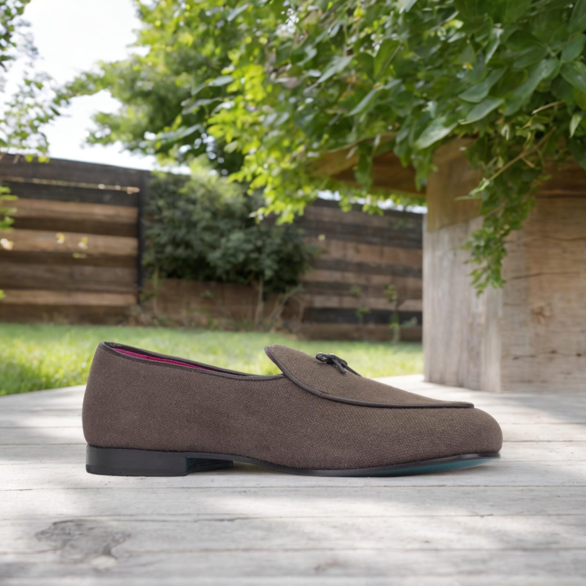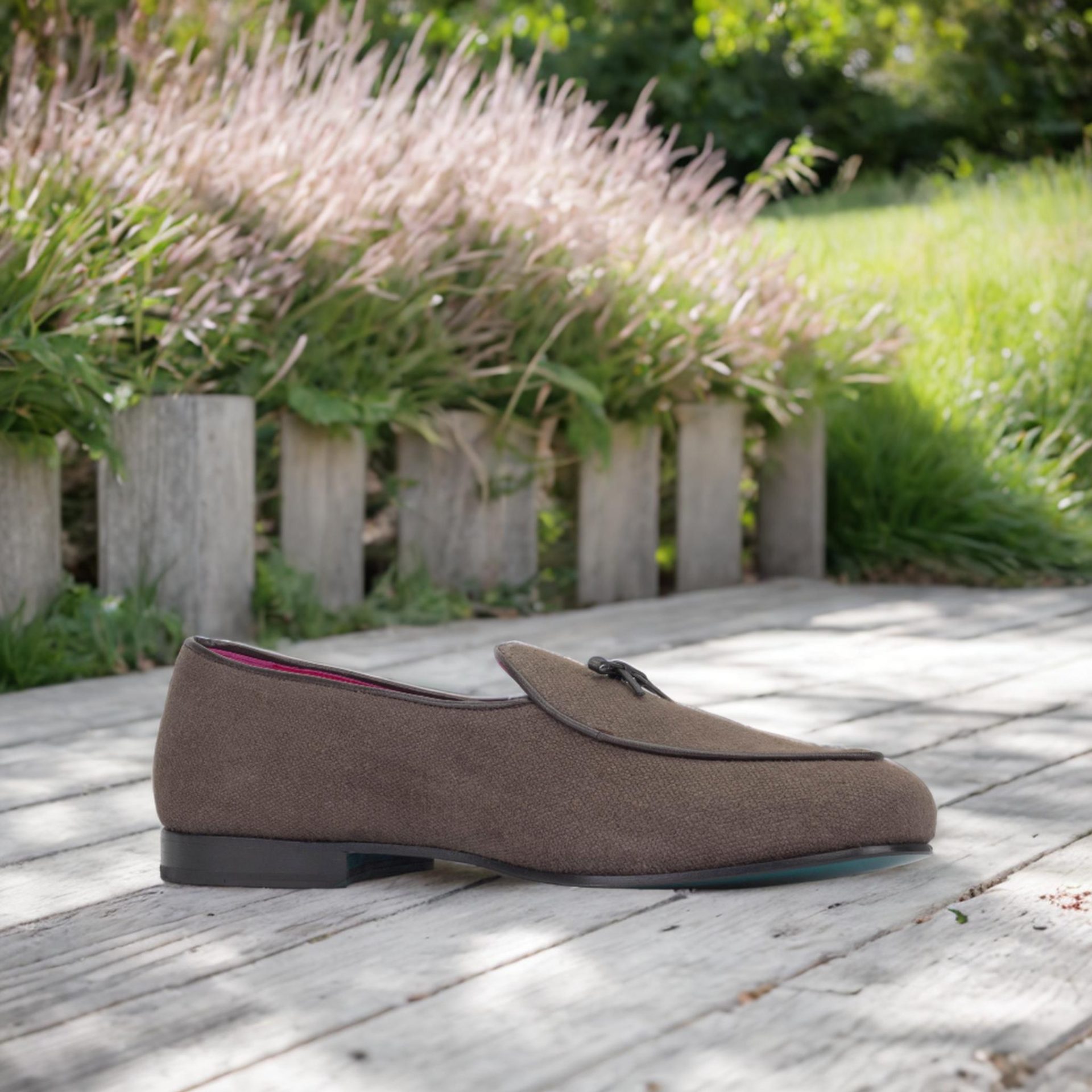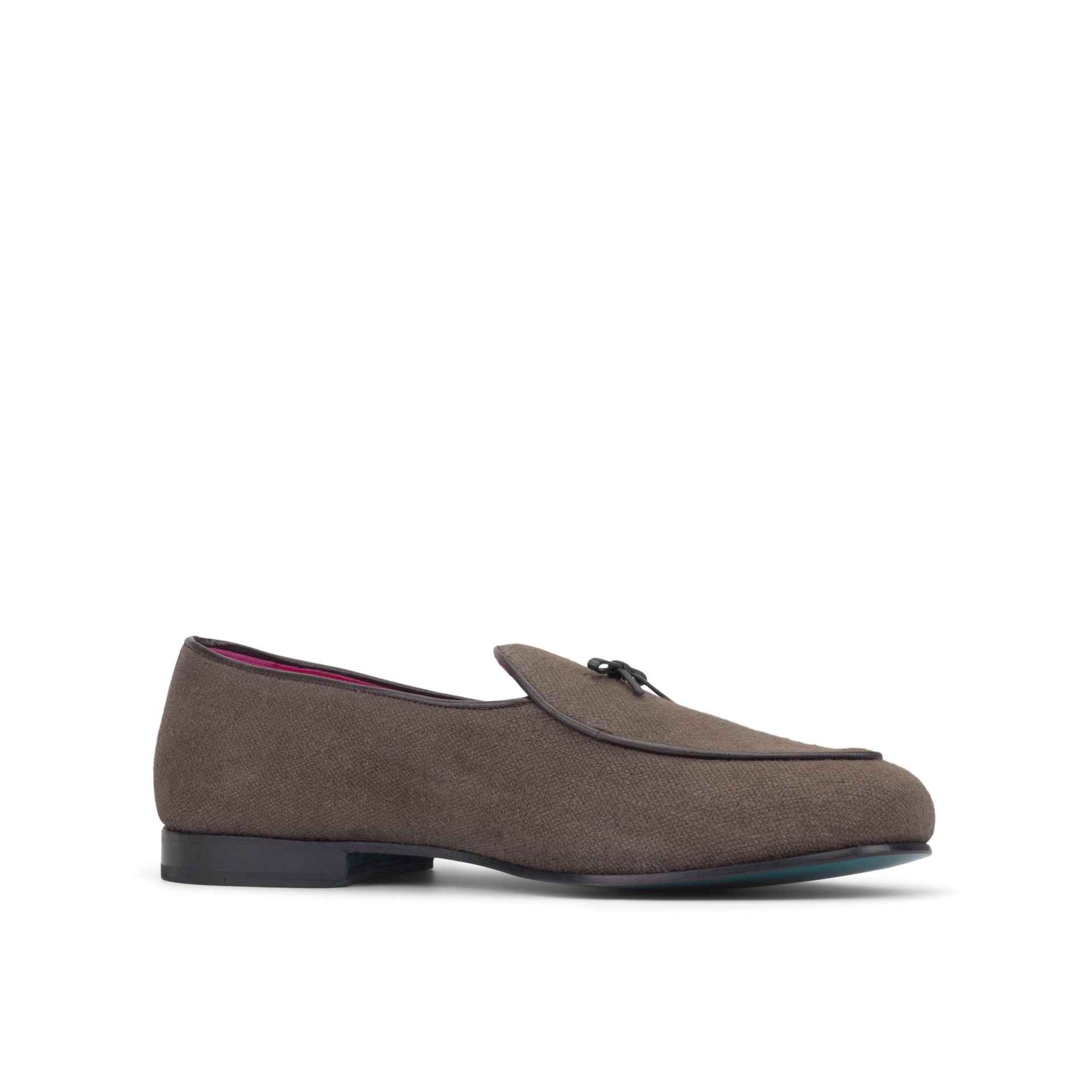 The construction of the No. 8313 begins with a base and vamp made from premium brown linen. This choice of material offers a lightweight and breathable feel, ideal for extended wear during warmer seasons or in temperate climates. The natural texture of the linen provides a sophisticated yet relaxed aesthetic, setting it apart from conventional leather loafers. This fabric ensures your feet remain comfortable, adapting to your movements while maintaining its elegant form.