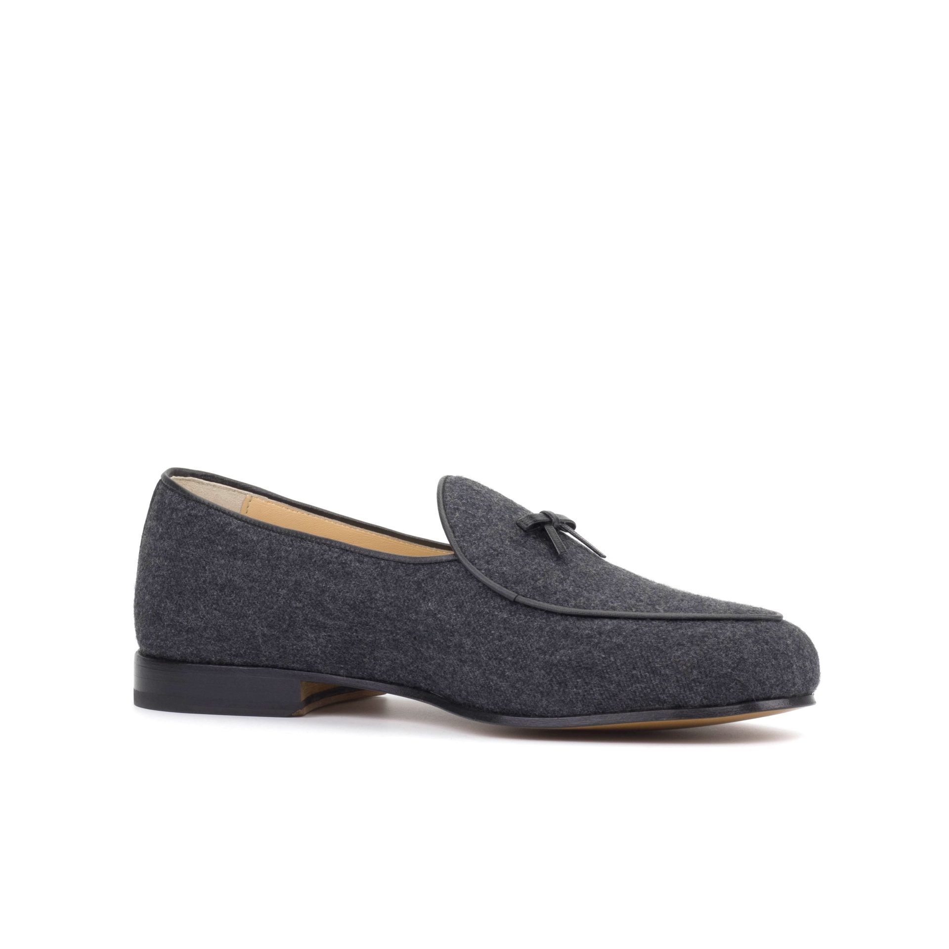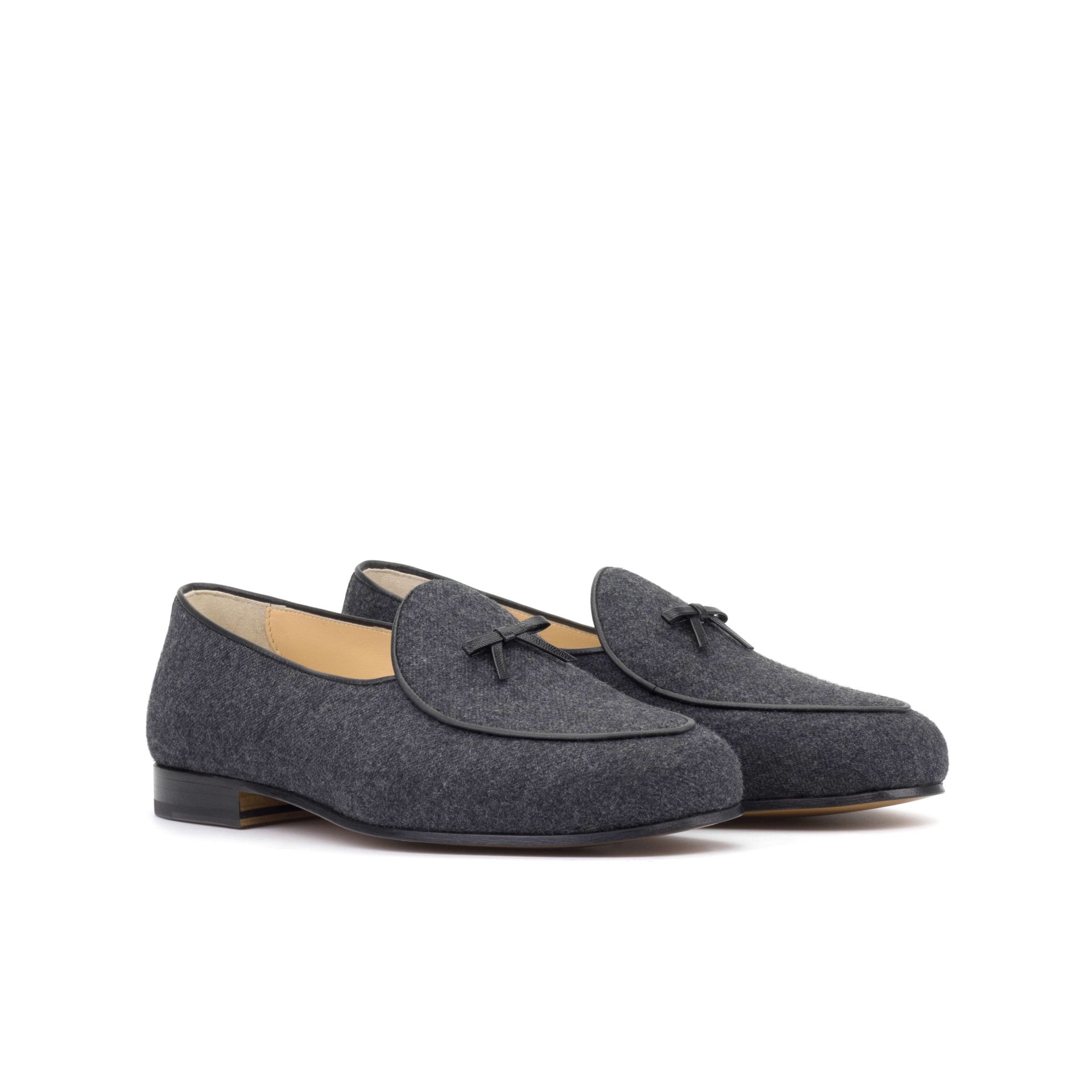 The uppers are made of a luxurious dark grey flannel, adding a touch of elegance and texture. Paired with black calf leather, these loafers are both versatile and stylish. The lining, made of beige calf leather, ensures maximum comfort and breathability for your feet. No need to sacrifice style for comfort, with the Sheridan Rd. Belgian Loafer.