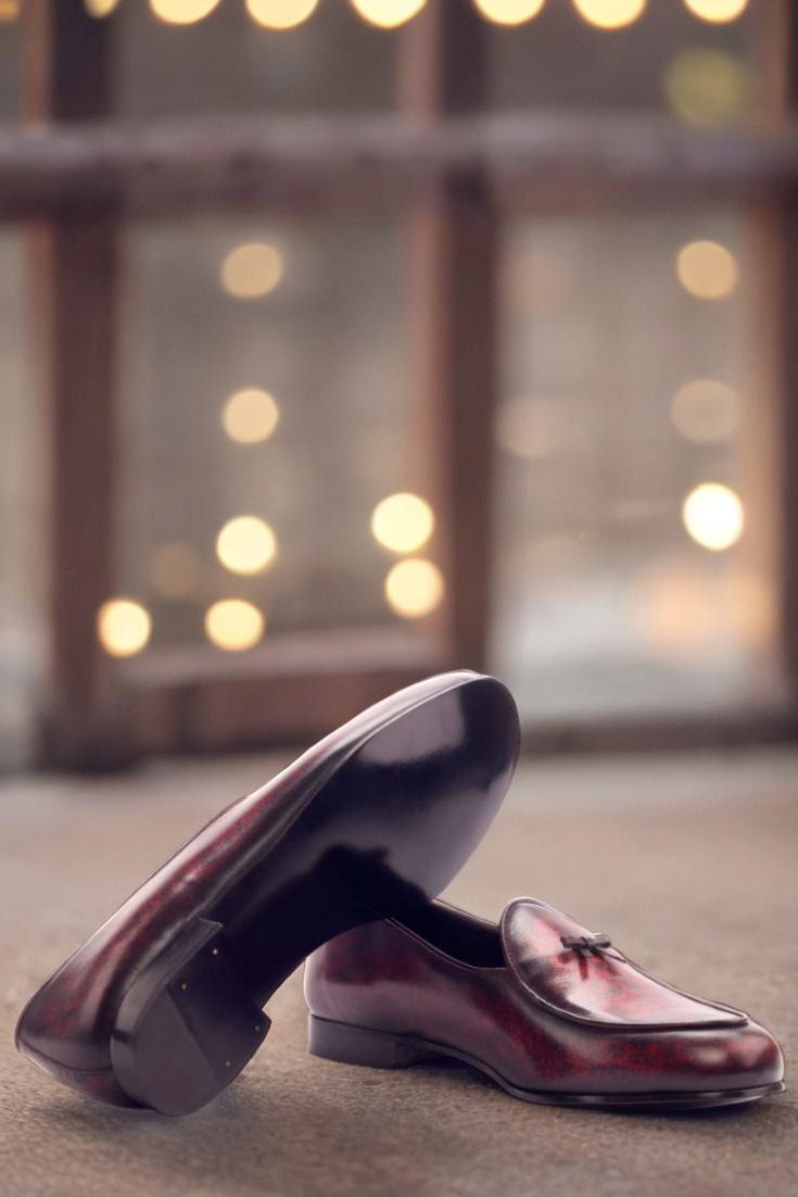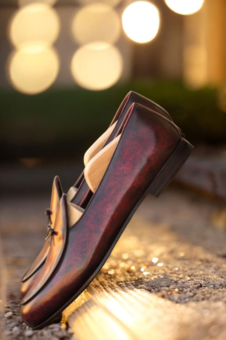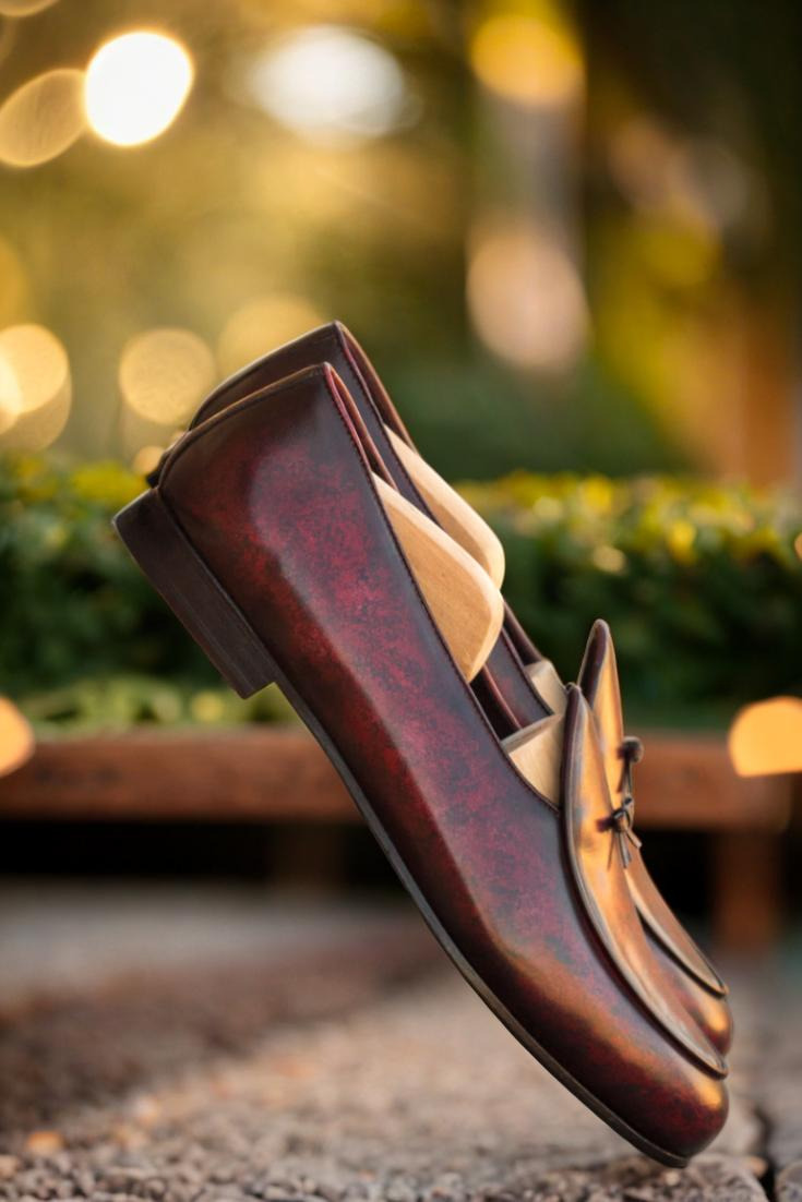 The upper is made from premium Italian calf leather with a beautiful burgundy and brown hand patina, giving each pair its own unique and luxurious marble style. The rich color palette is perfect for any occasion, from formal business meetings to casual weekends. It’s a timeless design that never goes out of style.