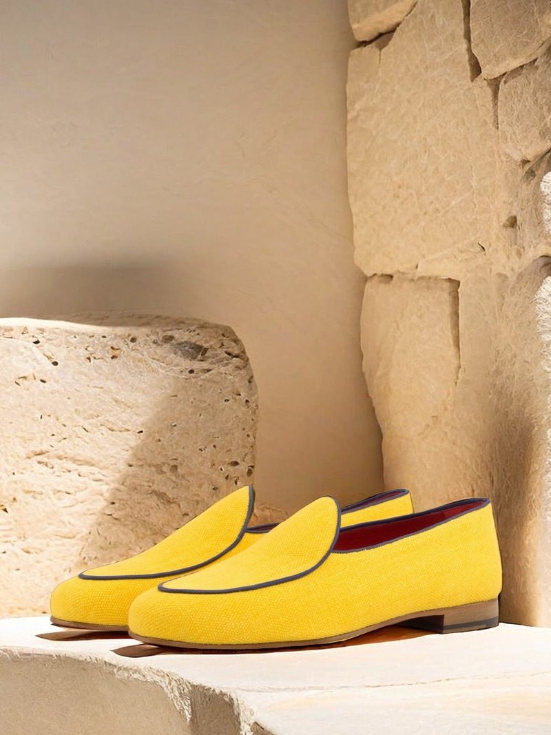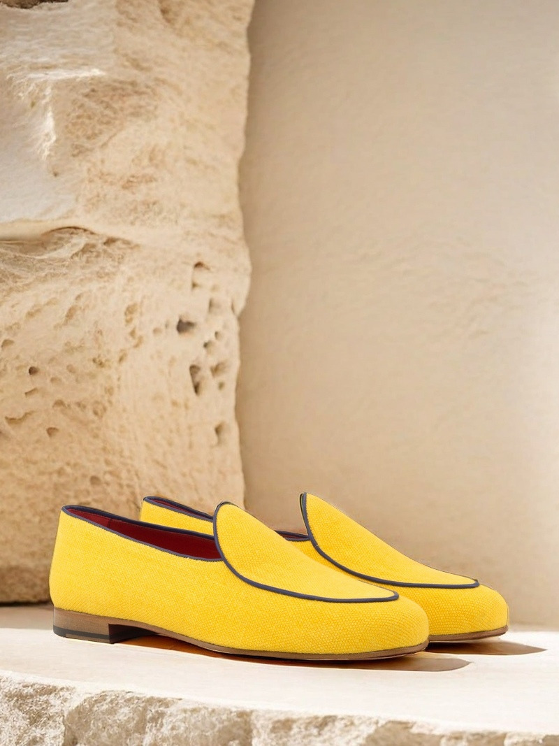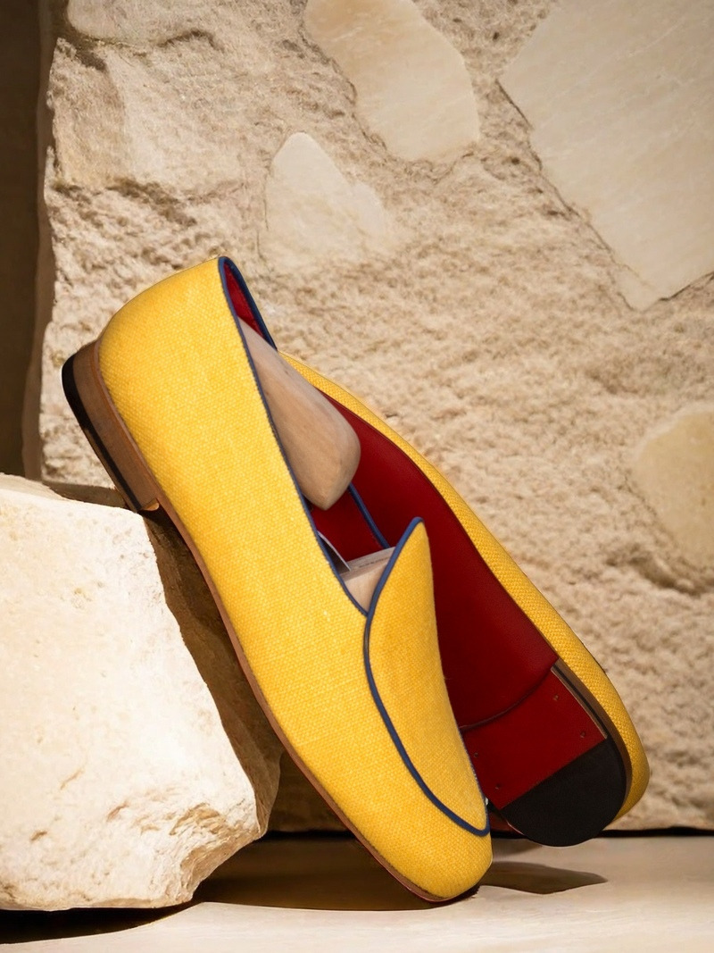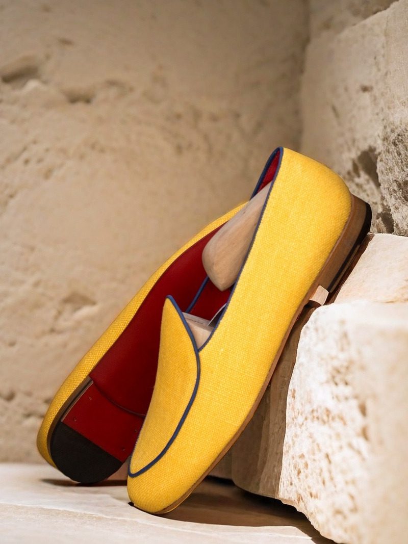 Crafted with utmost care and precision, the uppers of this shoe feature a stunning combination of mustard linen and navy blue painted calf leather. The vibrant colors not only elevate the aesthetic appeal of the shoe, but also make it a versatile choice for any occasion. Whether you’re heading to a business meeting or a social event, The Sheridan Rd. Belgian Loafer No. 3664 will surely make you stand out from the crowd.