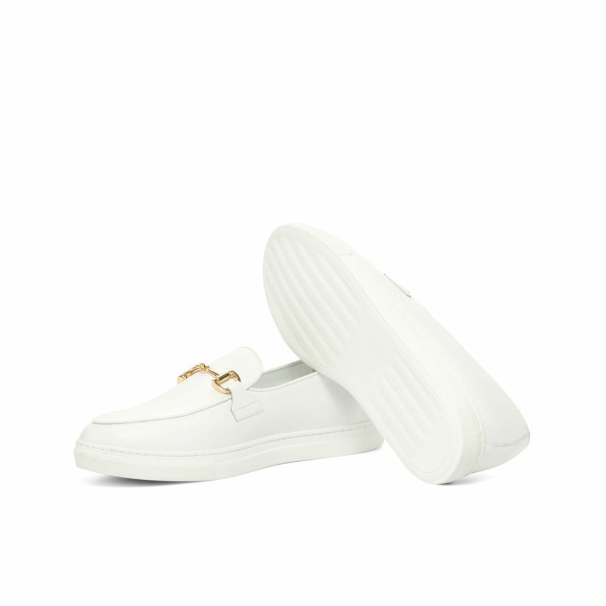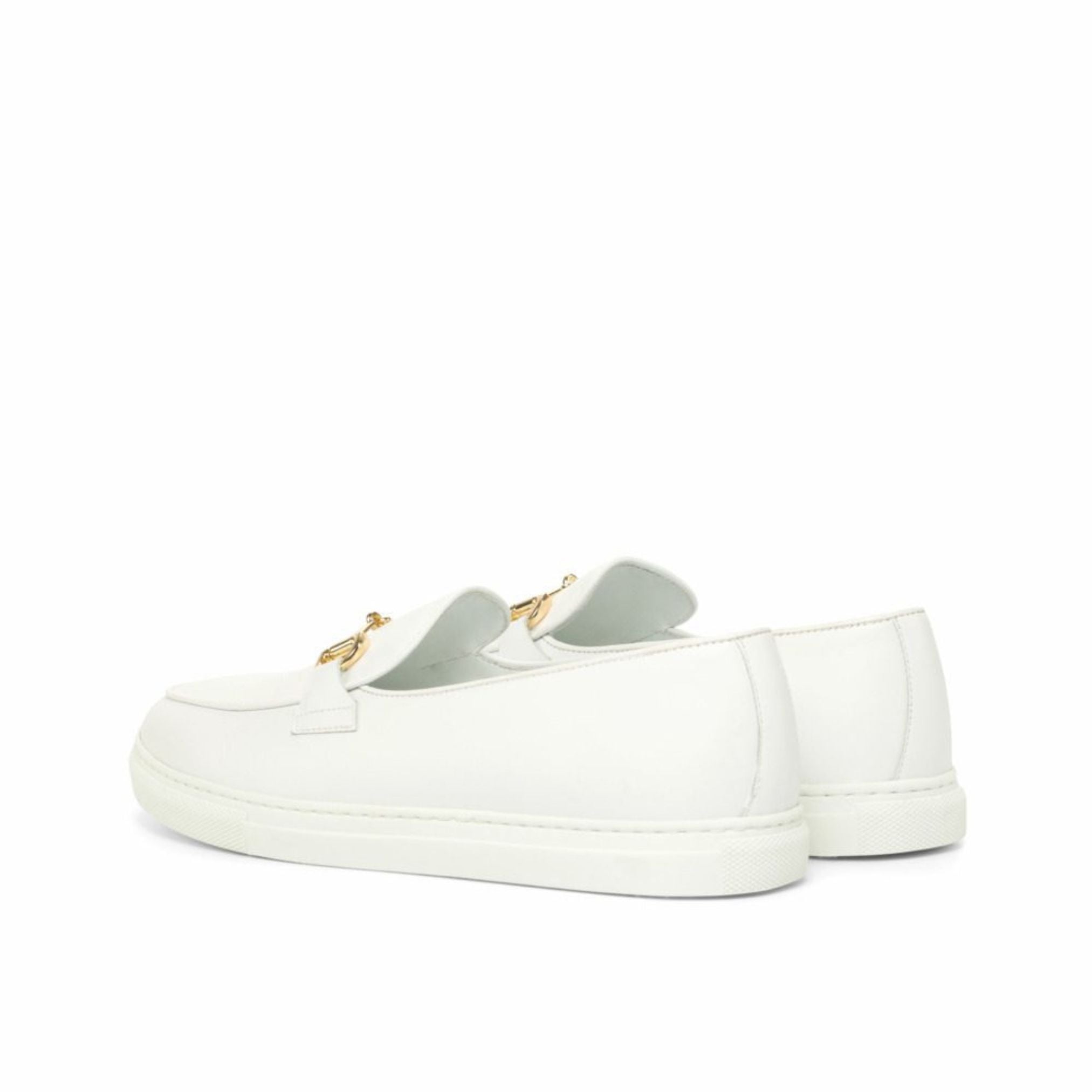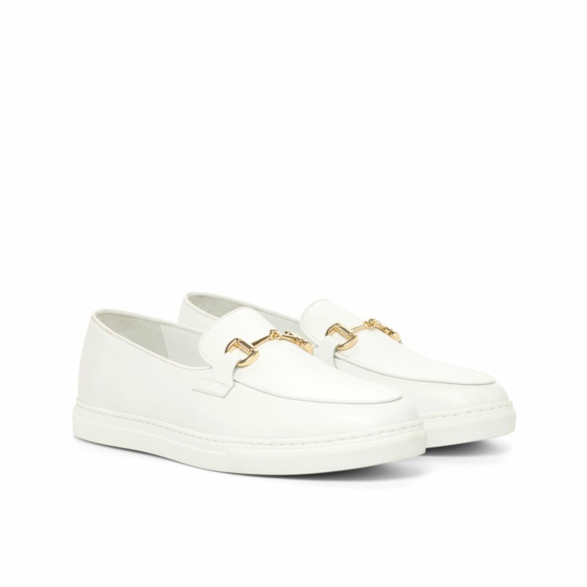 The uppers are made from luxurious white Nappa leather, giving the shoe a sleek and sophisticated look. The gold bit adds a touch of elegance and elevates the design of the sneaker. But this shoe is not just about looks, the white calf leather lining provides undeniable comfort and breathability, making it the perfect choice for all-day wear.