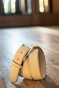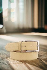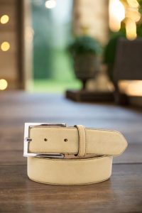 Introducing the Burton Place Belt No. 3567, the latest addition to the Robert August belt collection. This belt is all about taking the classics and giving them a twist. Crafted in Spain with the highest quality materials, this belt boasts a base of luxurious sand luxe suede, exuding a timeless yet modern aesthetic. But what sets this belt apart are the details – both functional and stylish. The belt loop, back loop, and lining are all made of the same sand luxe suede, adding a touch of sophistication to the design. The buckle, a sleek square-nickel, provides a stark contrast against the soft suede base.