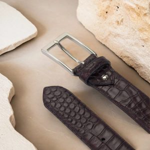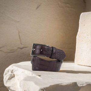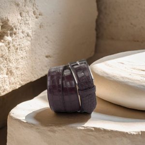 Consistency is key to a polished look. The Burton Place No. 8337 carries the Burgundy Croco theme throughout the entire construction, including the belt loop and back loop. This seamless design ensures that no matter how you wear it, the texture remains uninterrupted and elegant. On the interior, the belt is lined with Safari Nubuck. This soft, velvety leather provides superior comfort against the waist and reduces friction, ensuring the belt wears well over time without cracking or becoming stiff.