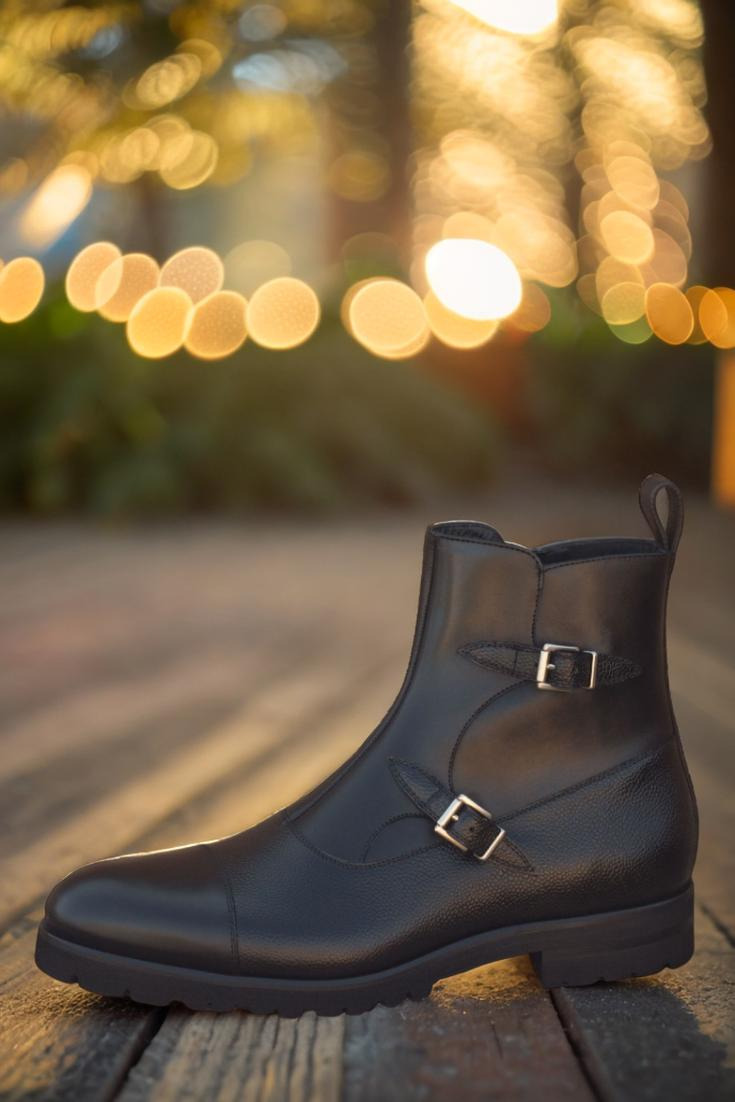 In the heart of the bustling cityscape, where the buildings stretch towards the sky and the streets hum with energy, there lies an essential companion for the modern gentleman – The State St. Double Buckle Boot No. 2991 from Robert August.