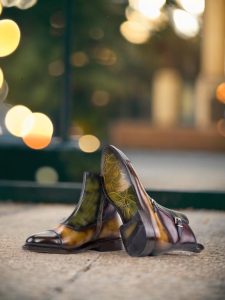 Not only does the State St. Double Buckle Boot boast impeccable style, but it also prioritizes comfort and durability. The lilac calf leather lining offers a luxurious feel and ensures lasting comfort with every step. And with its “Leaves” hand-painted art sole and Goodyear welt construction, this boot is built to last.