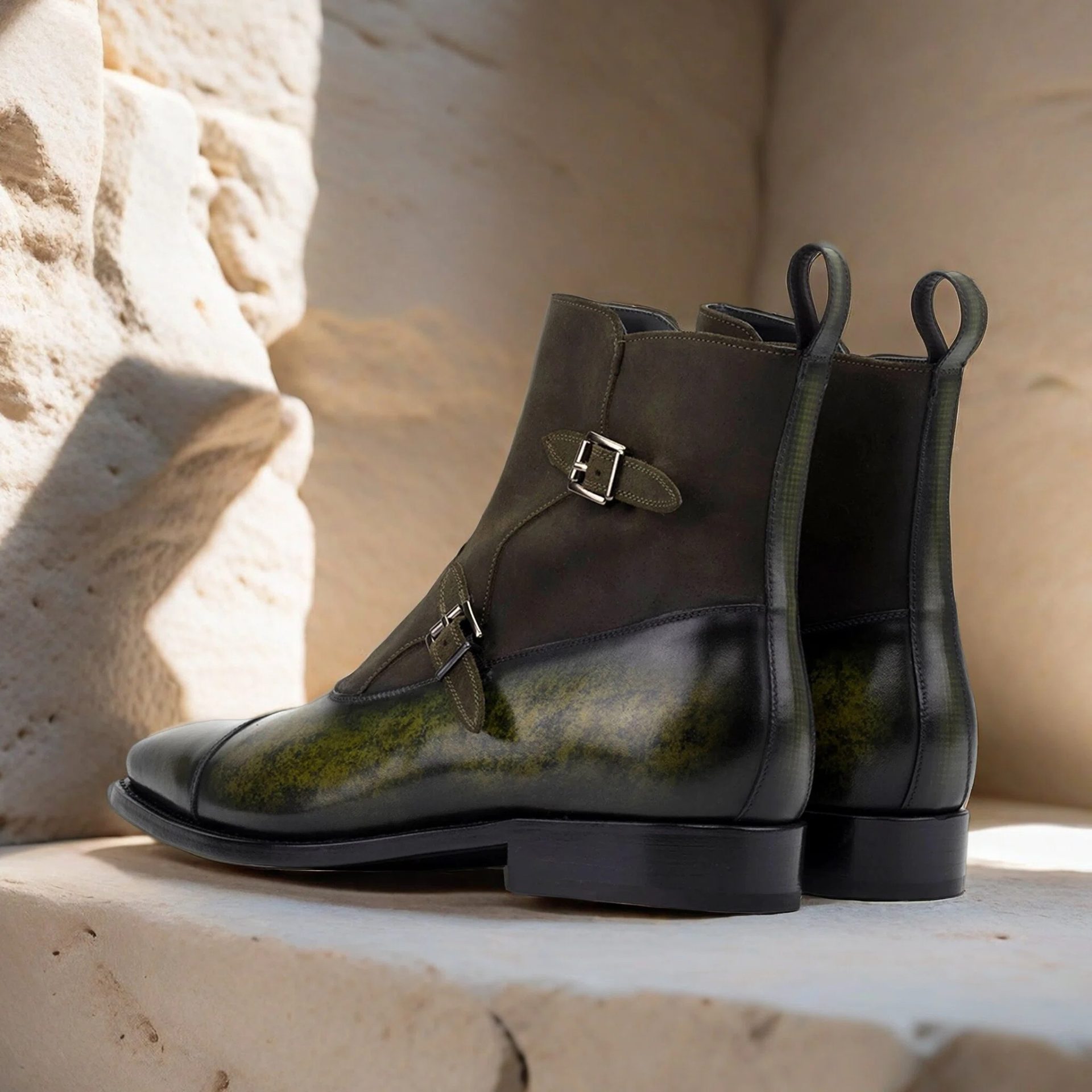 Securing the fit are Graphite buckles that provide a secure hold while adding a subtle metallic accent that complements the green tones of the leather and suede. For those with specific preferences, the design is fully customizable, allowing for adjustments to materials and finishes to suit individual requirements. The State St. Double Buckle Boot No. 6026 is not merely footwear; it is an investment in enduring style and quality engineering.