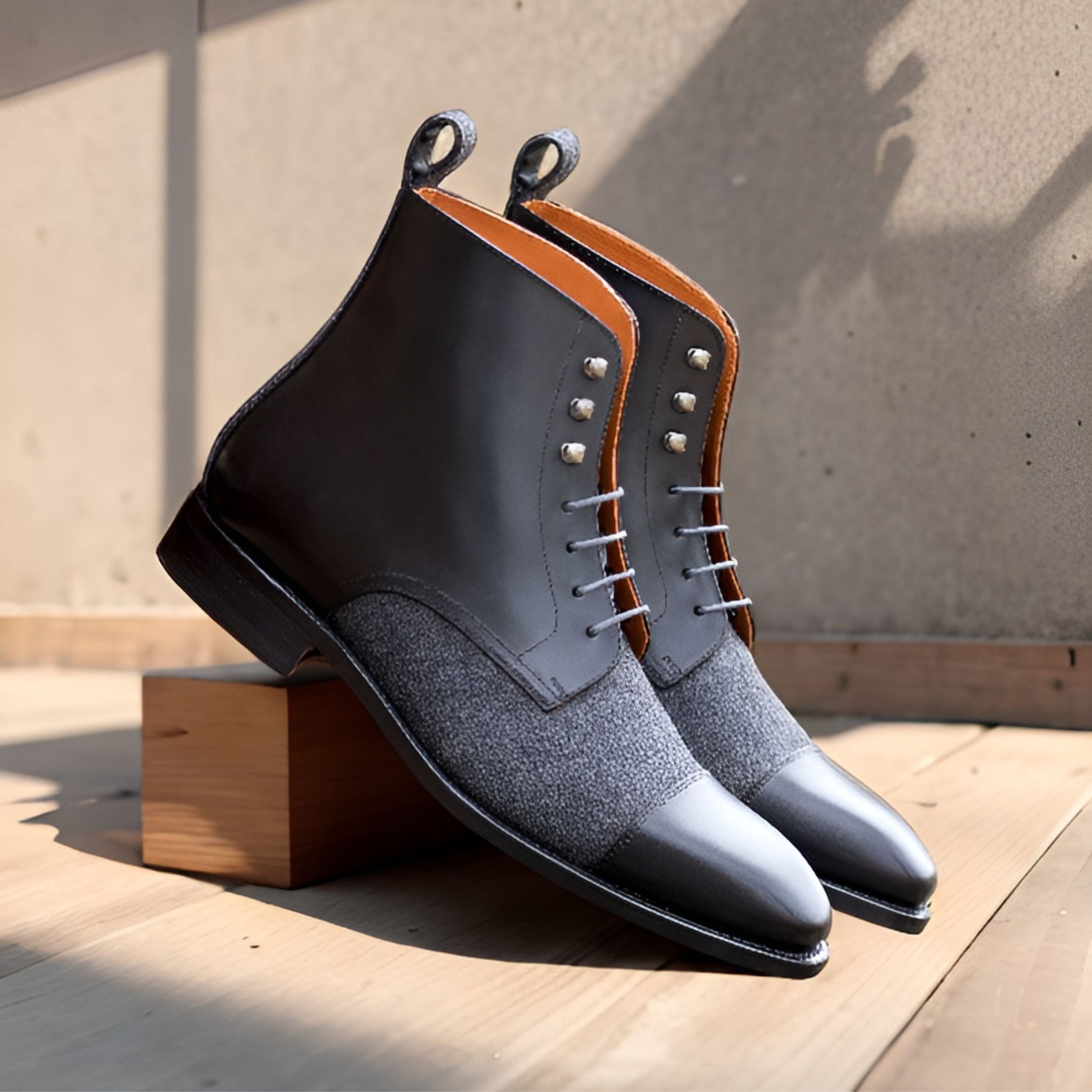 Tired of the same boring boots? Introducing the Sedgwick St. Cap Toe Jumper Boot No. 5761 from Robert August! This stylish boot is designed for the urban adventurer who seeks something a bit special and unique. The combination of dark grey flannel, black painted calf, and a black box calf toe cap creates a classic yet timeless look that is sure to get noticed. The beautiful old silver eyelets and round grey laces provide a subtle touch while the orange calf leather lining and orange hand-painted leather sole with mountain rubber injections provide unmatched comfort. With these imposing yet comfortable boots, you’ll be ready to hit the town or take on your toughest adventures. So show off your style with Sedgwick St. No. 5761 from Robert August and start your journey today!