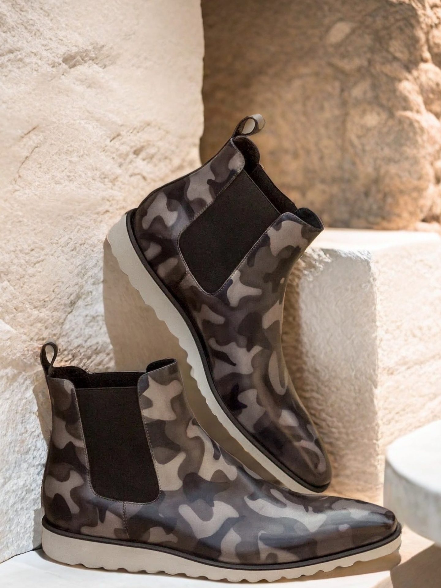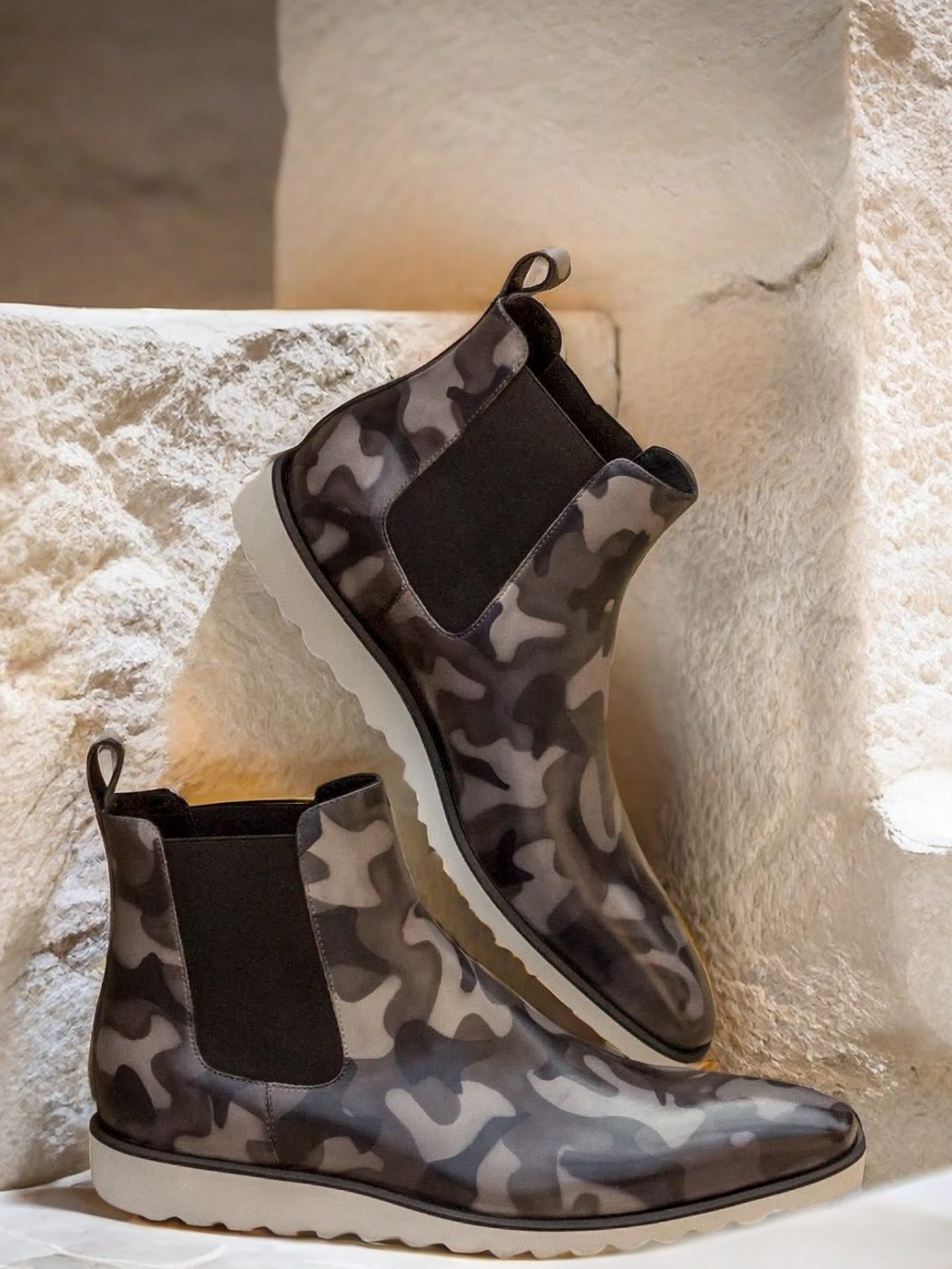 With its sleek and timeless design, The Fulton St. Chelsea Boot No. 3079 exudes confidence and charm. The Italian Calf Leather with Grey Camo Hand Patina on the front, sides, and back strap adds a touch of rugged elegance, making a statement without being overwhelming. The patina intensity is dark, adding depth and character to its overall appearance.