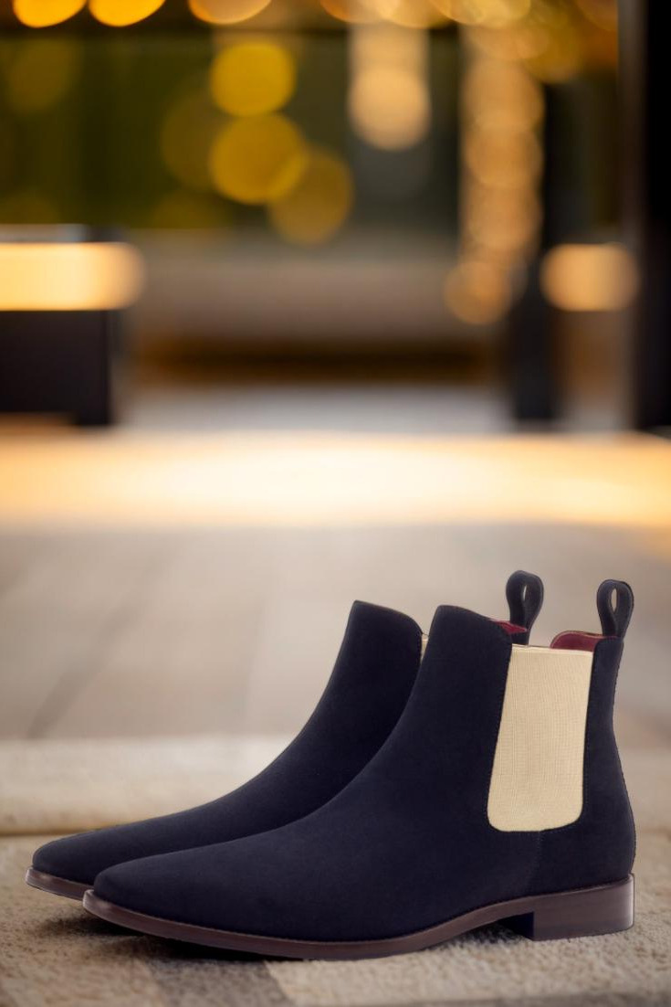 Made from Navy Blue Luxe Suede, this boot exudes elegance and sophistication from every angle. The front, sides, and back strip all feature the same luxe suede material, providing a seamless and sleek appearance that will elevate any outfit.