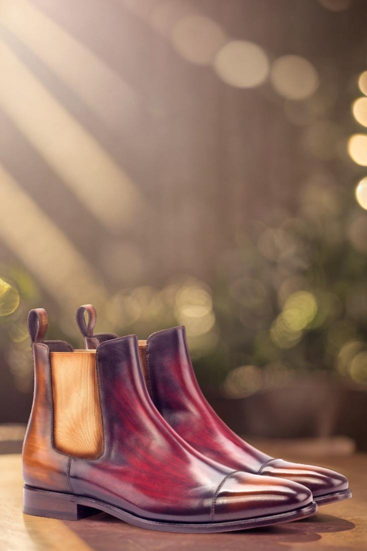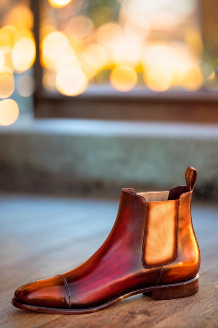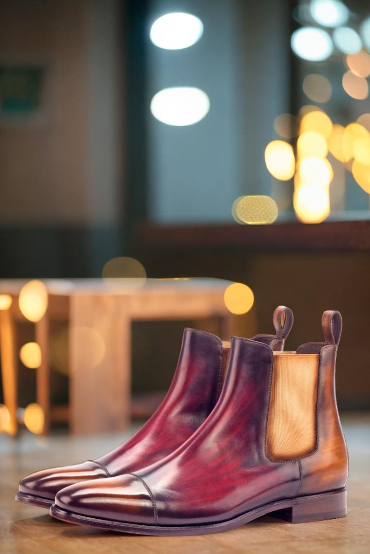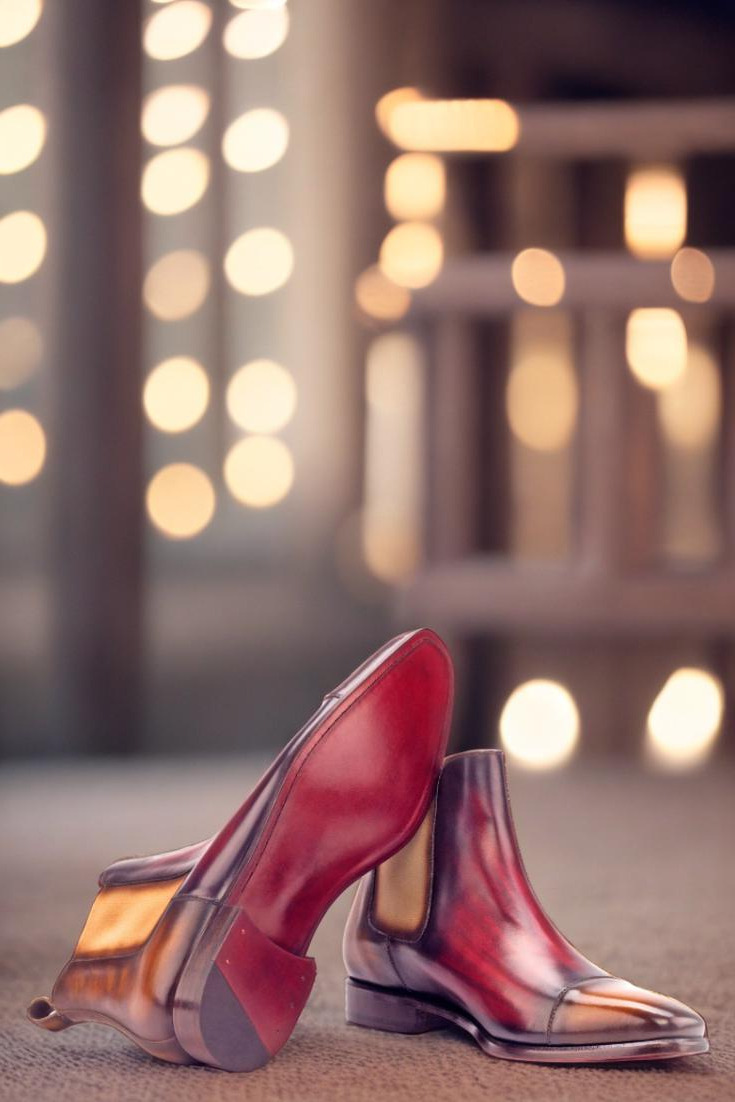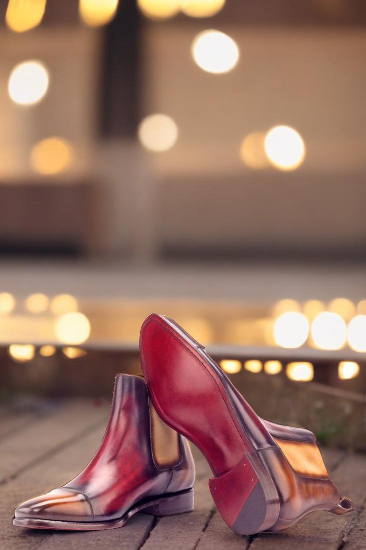 As you slide your feet in, you’ll feel the supple and smooth Brown Calf Leather lining, providing ultimate comfort and breathability. The elastic sides are a classic Chelsea boot feature, but ours takes it to the next level with a sleek and modern beige color. And the pièce de résistance? The Dark Red Hand Painted Leather sole, adding a pop of bold color that perfectly complements the rest of the boot.