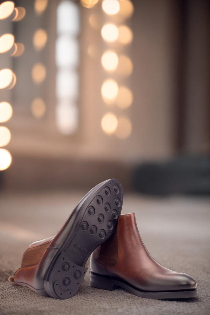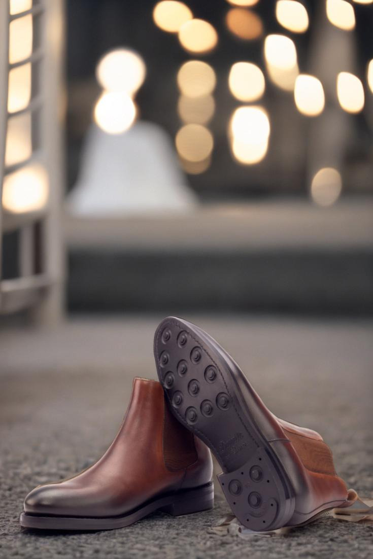 With its medium brown painted calf leather uppers, these boots exude a refined elegance that is sure to turn heads. The dark brown elastic adds a touch of sophistication and contrast, while the black calf leather lining ensures maximum comfort and durability.