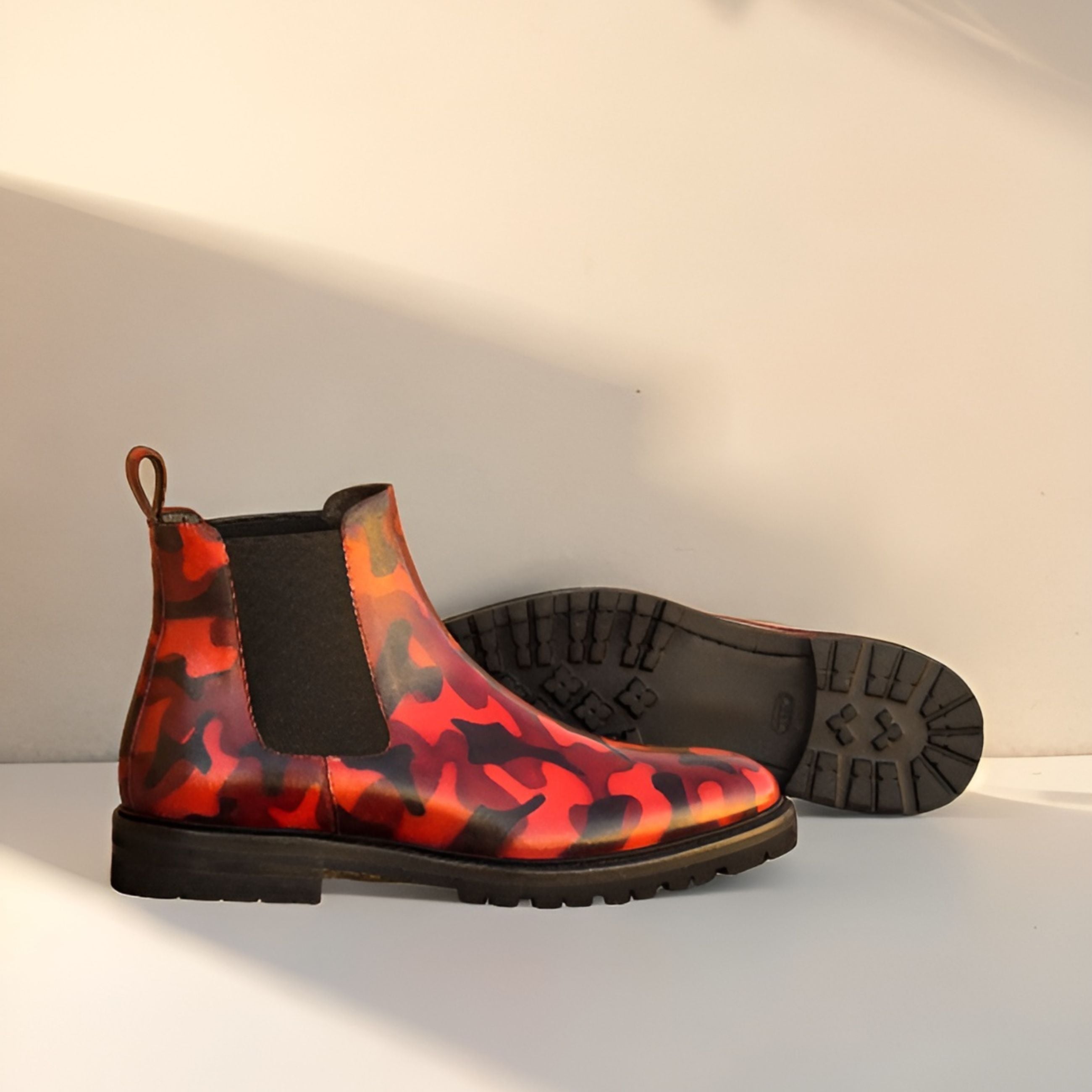 Made with utmost attention to detail, the front, sides, and back strap of these boots are handcrafted using the finest Italian Calf Leather, adorned with a mesmerizing Burgundy Camo Hand Patina. The result is a truly unique and eye-catching design that sets you apart from the crowd.