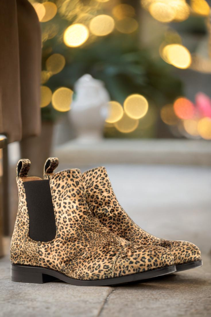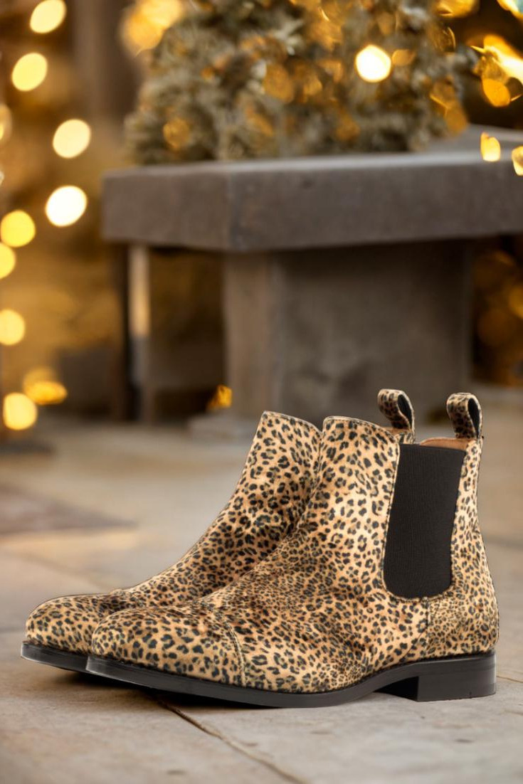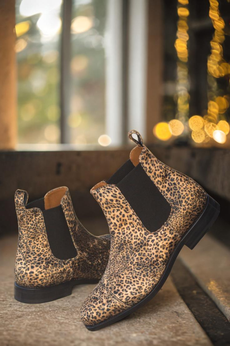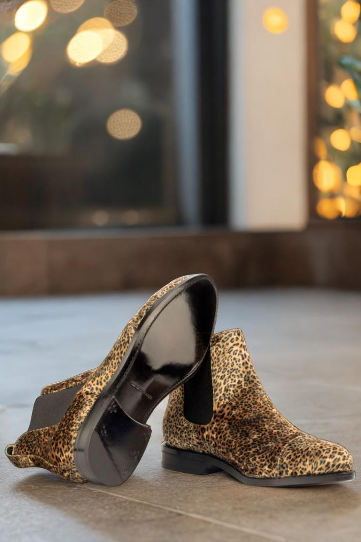 Looking for a versatile and stylish boot that will take your outfit to the next level? Look no further than The Fulton St. Chelsea Boot No. 3715 from Robert August. This boot is the perfect combination of bold and classic, with its stunning leopard print velvet front, sides, and toe cap. The back strap and elastic are also donned in the fierce leopard print, adding a touch of edge to these chic boots. Handcrafted in Spain, each pair is made with the utmost care and attention to detail, ensuring the highest quality.