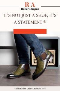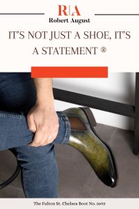 The Fulton St. No. 5692EX Chelsea Boot from Robert August is stunningly constructed with luxurious materials in a stylish silhouette. A unique khaki-marble leather gives the boot a perfect patina intensity, complemented by elastic and lining in shades of dark brown and brown calf leather. The sole is carefully crafted with lilac hand-painted leather highlights and mountain rubber inserts for improved comfort and breathability. This elegant Chelsea boot also features an attractive City Welt construction in the classic Goodyear Welt style – a must-have for all shoe enthusiasts! The 872 last adds an extra element of sophistication with its sleek look and slight chisel toe. Make your way through the streets of cities like London, Tokyo, or New York wearing this fashionable statement piece from Robert August! With an option to customize it to your individual taste, this is the perfect combination of style and comfort that you won’t want to miss out on!