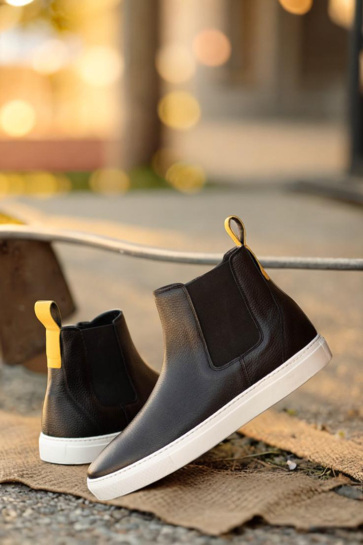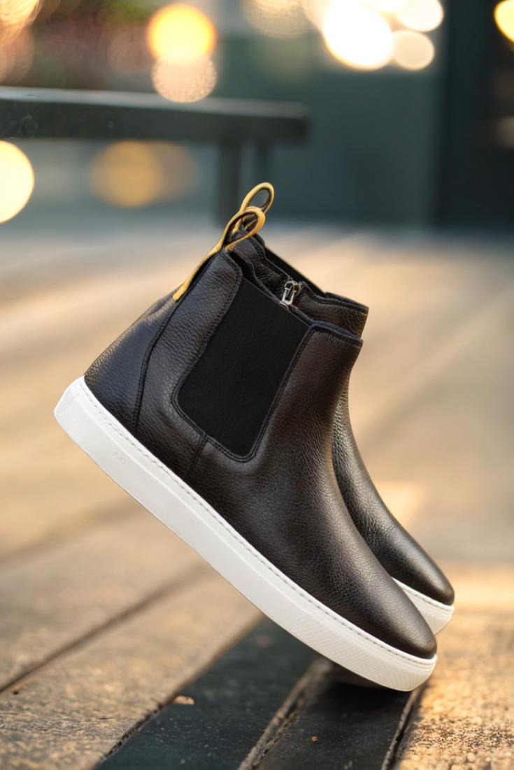 Now, let’s talk about convenience. We understand that time is precious in today’s fast-paced world, which is why we’ve equipped the Huron St. Chelsea with an ingenious and practical feature: the black elastic band. These discreet bands ensure a snug fit while making it effortless to slip in and out of your new favorite footwear. No more wrestling with laces or wasting valuable minutes on tedious tasks.