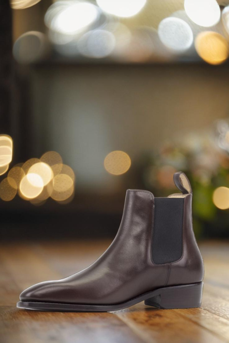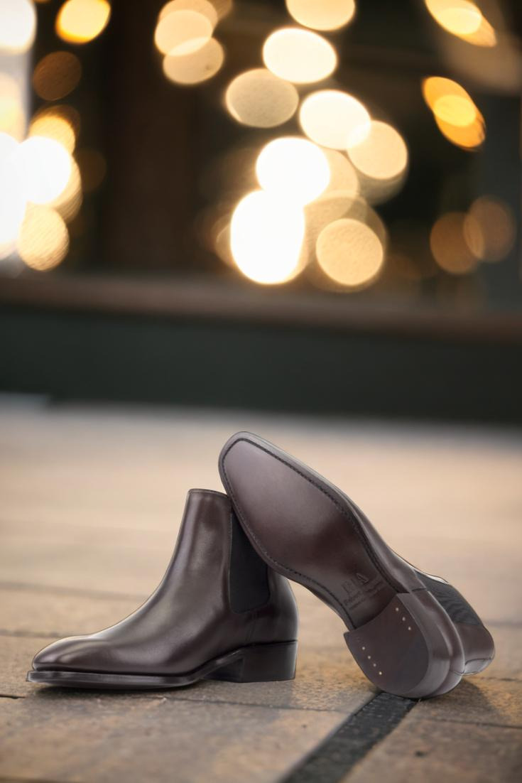 Introducing the Fulton St. Chelsea Boot No. 8271, the epitome of luxury and practicality. Sleek and timeless, this boot is crafted from dark brown luxe calf leather on all sides, giving it a seamless and sophisticated look. But we didn’t stop there – we added a stylish back strap also made from the same luxe calf leather, adding just the right touch of flair to make a statement.