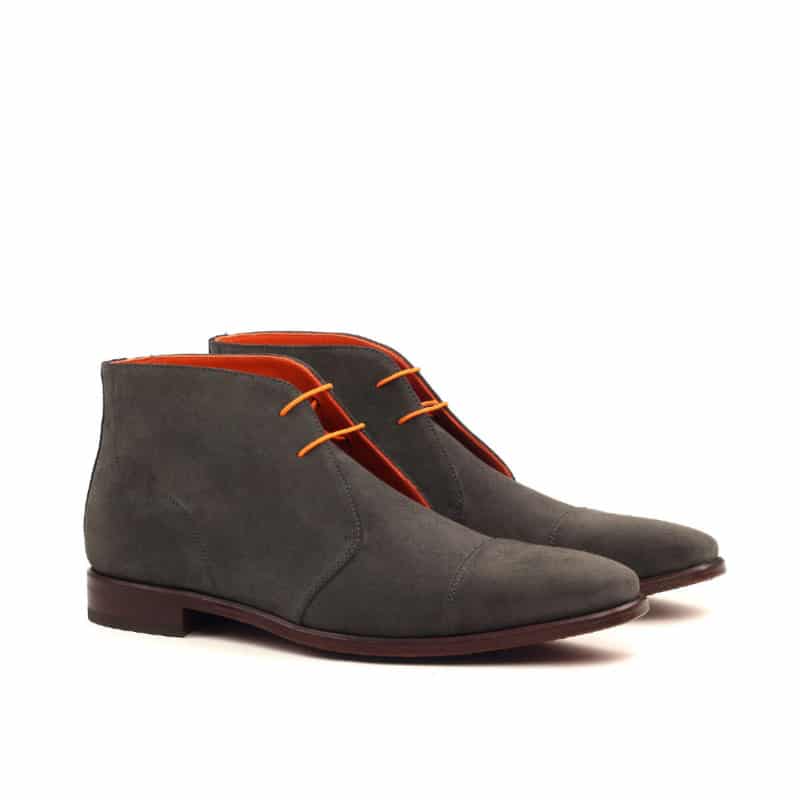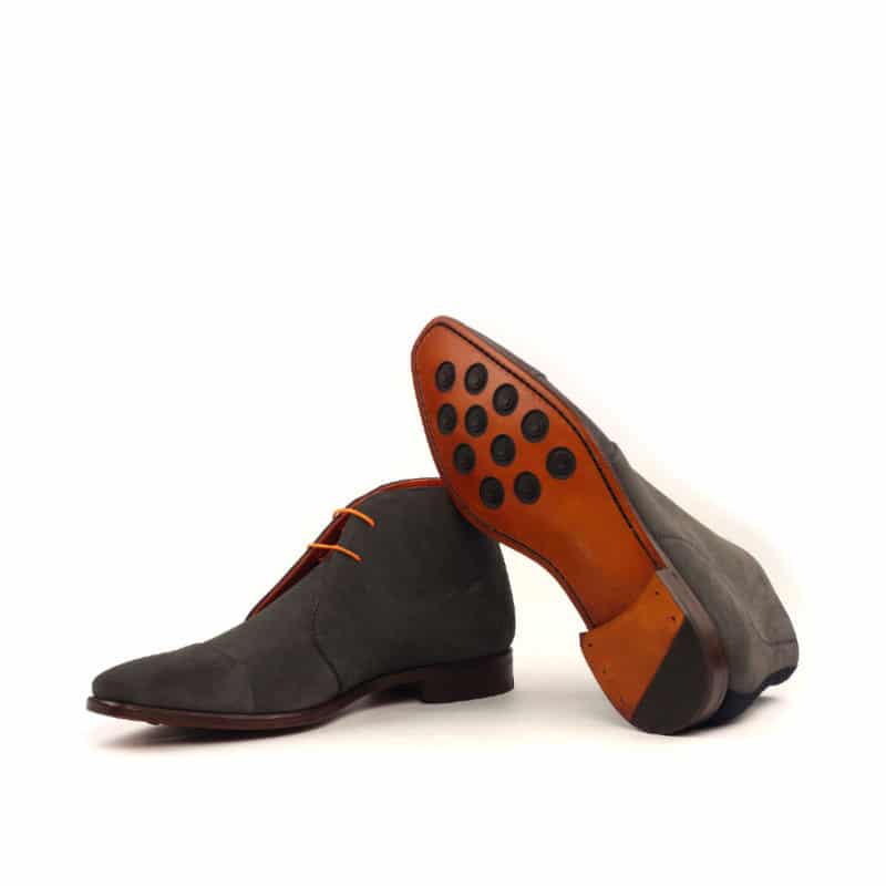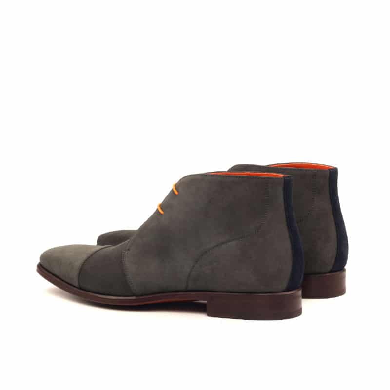 The uppers of these boots are made of a unique combination of grey and navy blue luxe suede, giving them a modern and stylish look. To add a pop of color, we’ve chosen orange laces that perfectly contrast with the muted tones of the uppers. But the attention to detail doesn’t stop there – the lining is also made of smooth orange calf leather, providing a comfortable and luxurious feel for your feet.