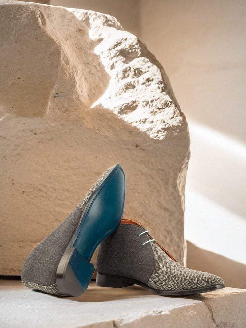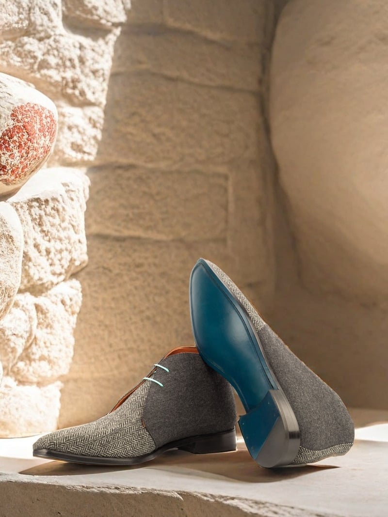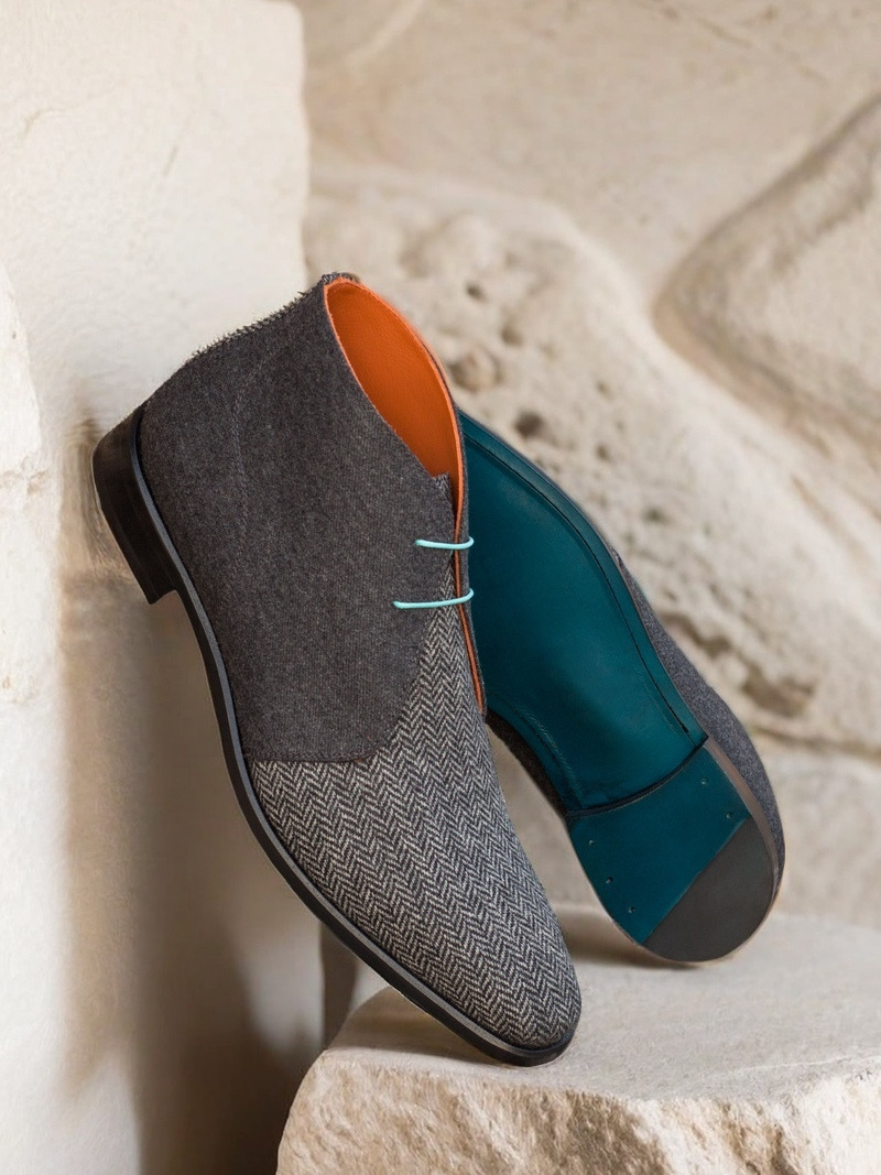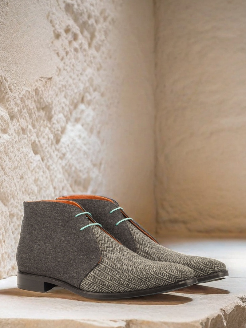 The Vamp of the boot features a luxurious Herringbone Wool, adding a touch of refinement to its design. It exudes a timeless charm that effortlessly complements any outfit, making it a versatile choice for both casual and formal occasions. Paired with the Dark Grey Flannel Quarter, the boot strikes the perfect balance between sophistication and modernity.