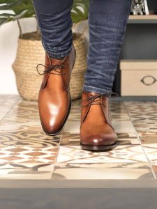 The flat-brown laces not only provide a secure fit but also add a touch of ruggedness to the overall design. Paired with the rich brown calf leather lining, they create a stunning contrast that will catch anyone’s eye.