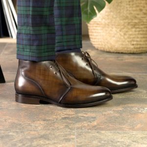 Introducing the Madison St. Chukka Boot No. 5632EX from Robert August! Crafted to be the perfect weekend accessory, these timeless chukkas are made with brown Papiro Hand Patina Leather and a classic Forest Green hand-painted leather sole complete with mountain rubber injections for extra grip. Inside they’re lined with luxurious brown calf leather and feature a City Welt construction using an exclusive 312 last – rounded at the toe for a traditional English look. Lace them up with classic brown round laces for a vintage feel that’ll never go out of style. Best of all, you can customize this boot to create your own unique design – so you won’t ever have to worry about someone showing up in the same shoes as you. Get your Madison St. Chukka Boot No. 5632EX today and add some sophistication to your weekend wardrobe!