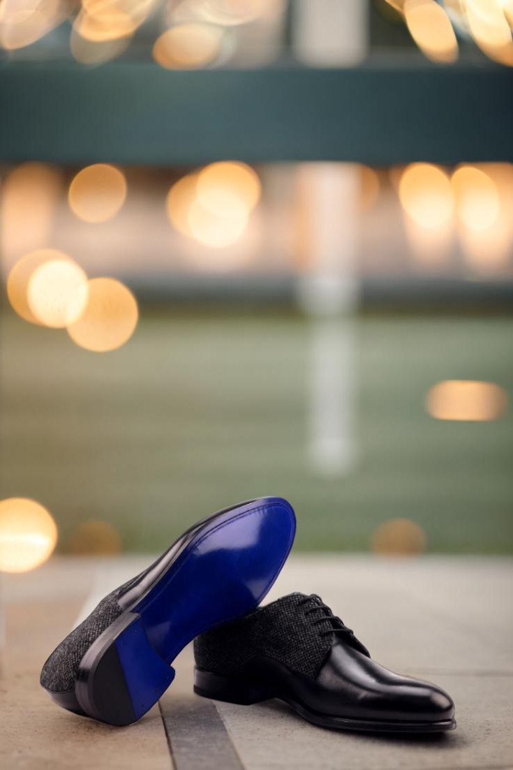 The sleek black box calf leather vamps, accented with a unique nailhead wool quarter, exude sophistication and charisma. And the black box calf back adds a touch of elegance to this versatile shoe. To add to its overall polished look, we’ve included black laces to complete the ensemble.