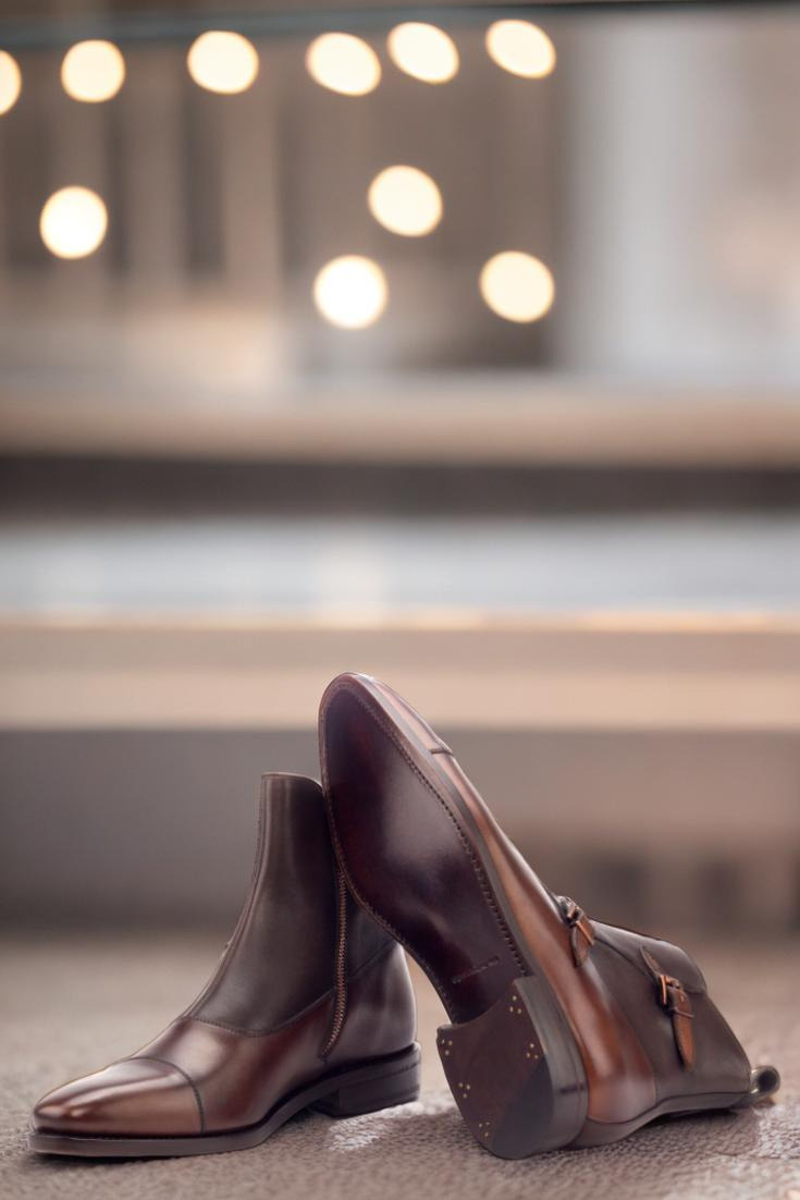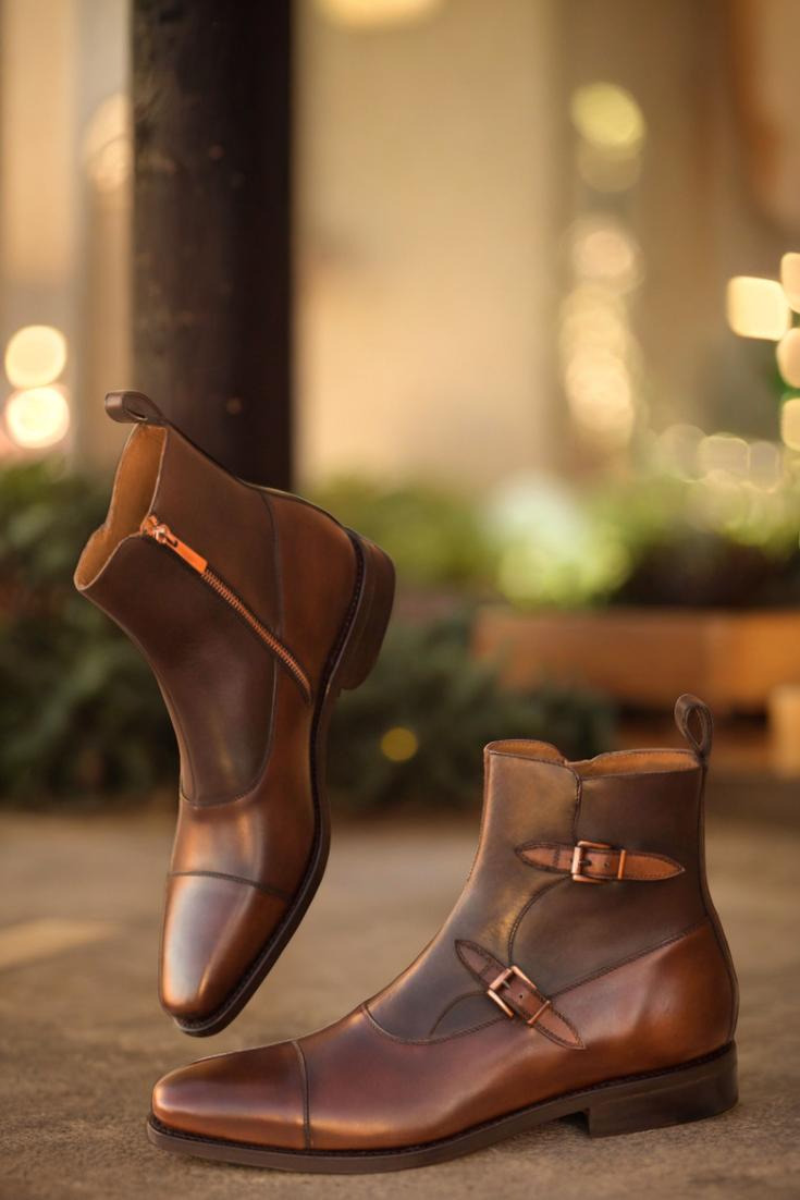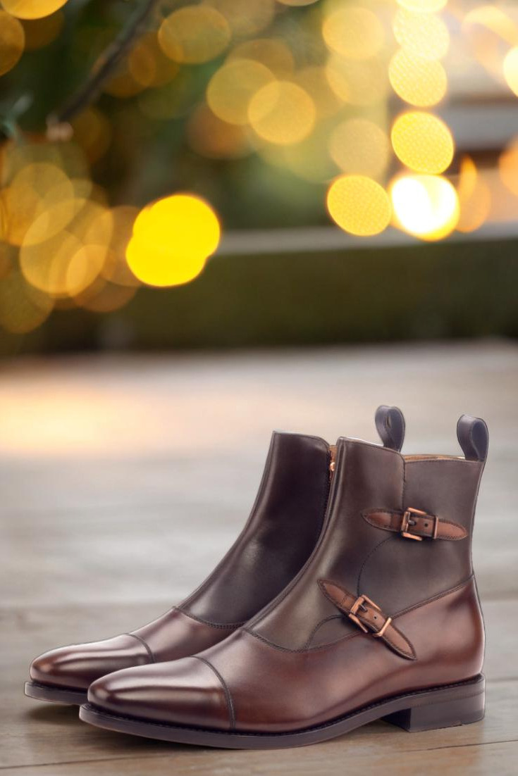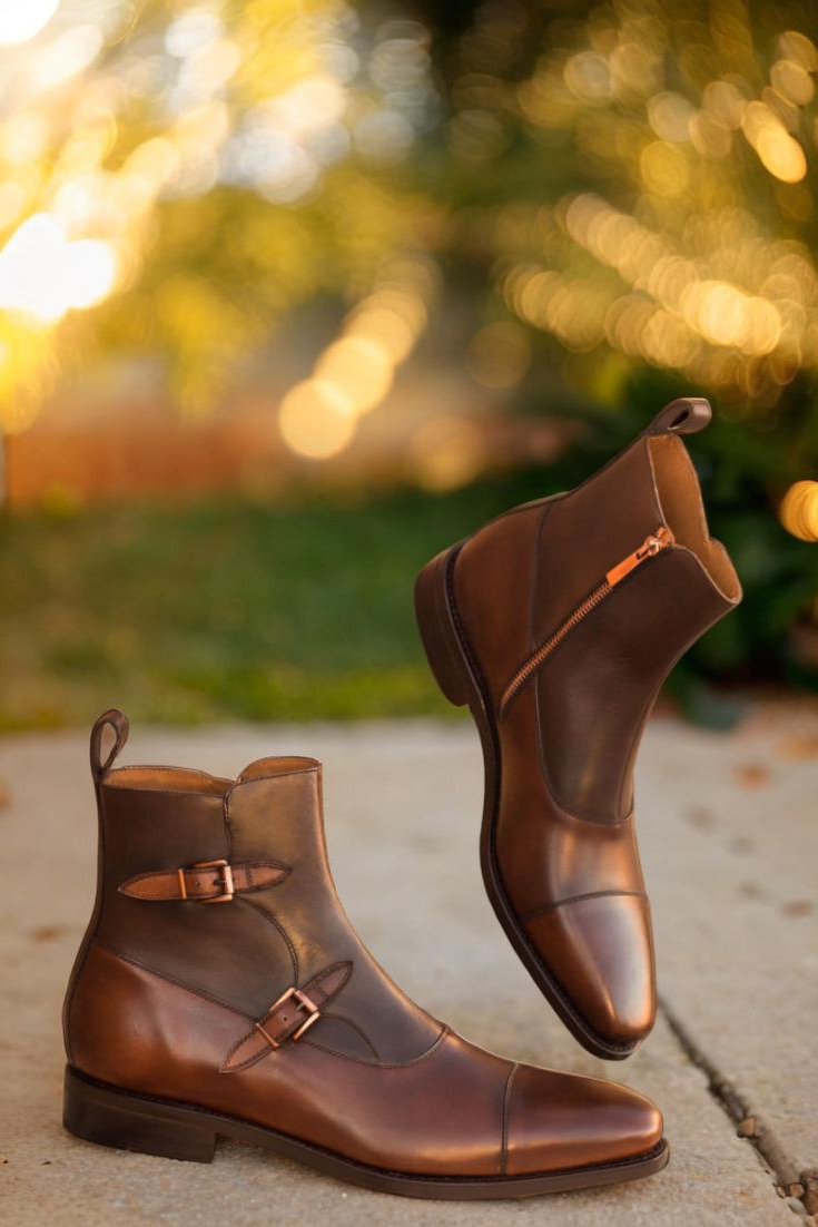 Introducing the State St. Double Buckle Boot No. 3302 from Robert August, a masterpiece of style, craftsmanship, and functionality. This premium boot effortlessly combines medium brown and dark brown painted calf leather, creating a striking, eye-catching design that is both timeless and unique. The rich contrast of colors highlights the sleek silhouette, making these boots a standout addition to any wardrobe.