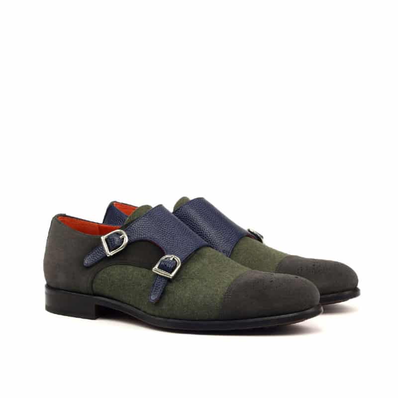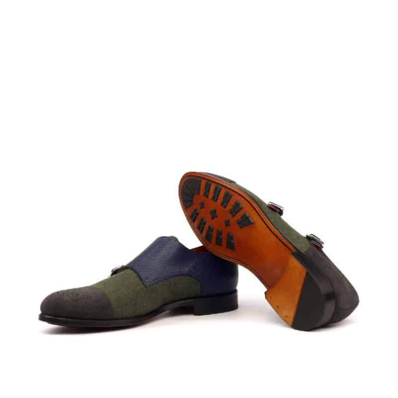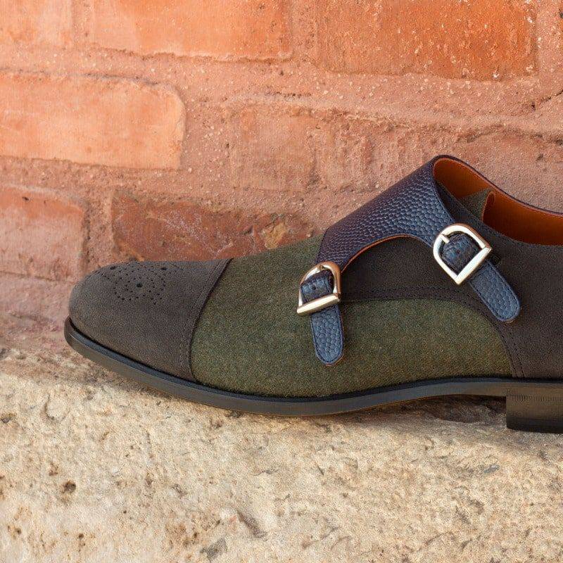 Are you tired of scouring through endless racks of shoes, only to find the same generic styles and color schemes? Look no further, because the Damen Ave. Double Monk No. 2390 from Robert August is here to break the mold and elevate your shoe game! These double monk strap shoes are the epitome of style and sophistication, featuring a striking combination of green flannel, grey luxe suede, and navy blue pebble grain leather on the uppers.