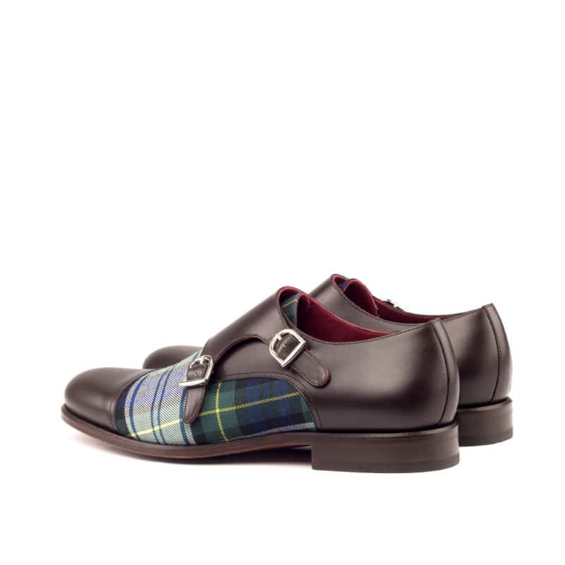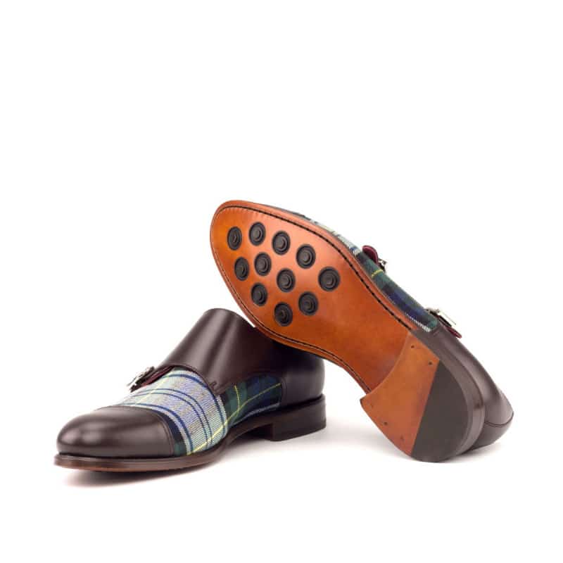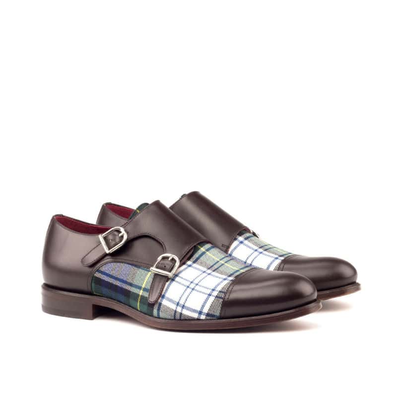 Crafted with utmost precision, these shoes are the epitome of elegance and quality. The uppers are made of Dark Brown Box Calf with a unique twist of Blue Tartan Wool, adding a touch of sophistication to your outfit. The rounded-nickel buckle complements the overall design and allows for easy fastening.