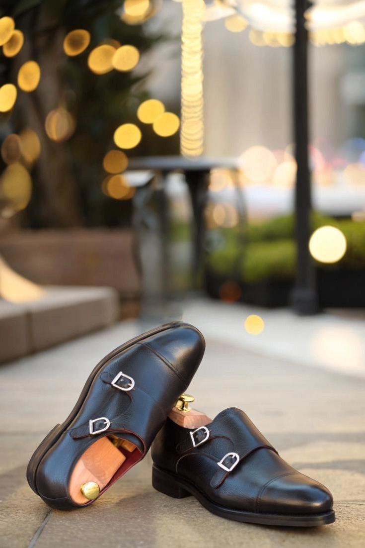 Crafted from black painted full grain leather, the upper of the Damen Ave. Double Monk is not only durable but also offers a sleek, polished look. The rounded-nickel buckles add a touch of class and shine to the shoe, making it the perfect option for both business and formal occasions.
