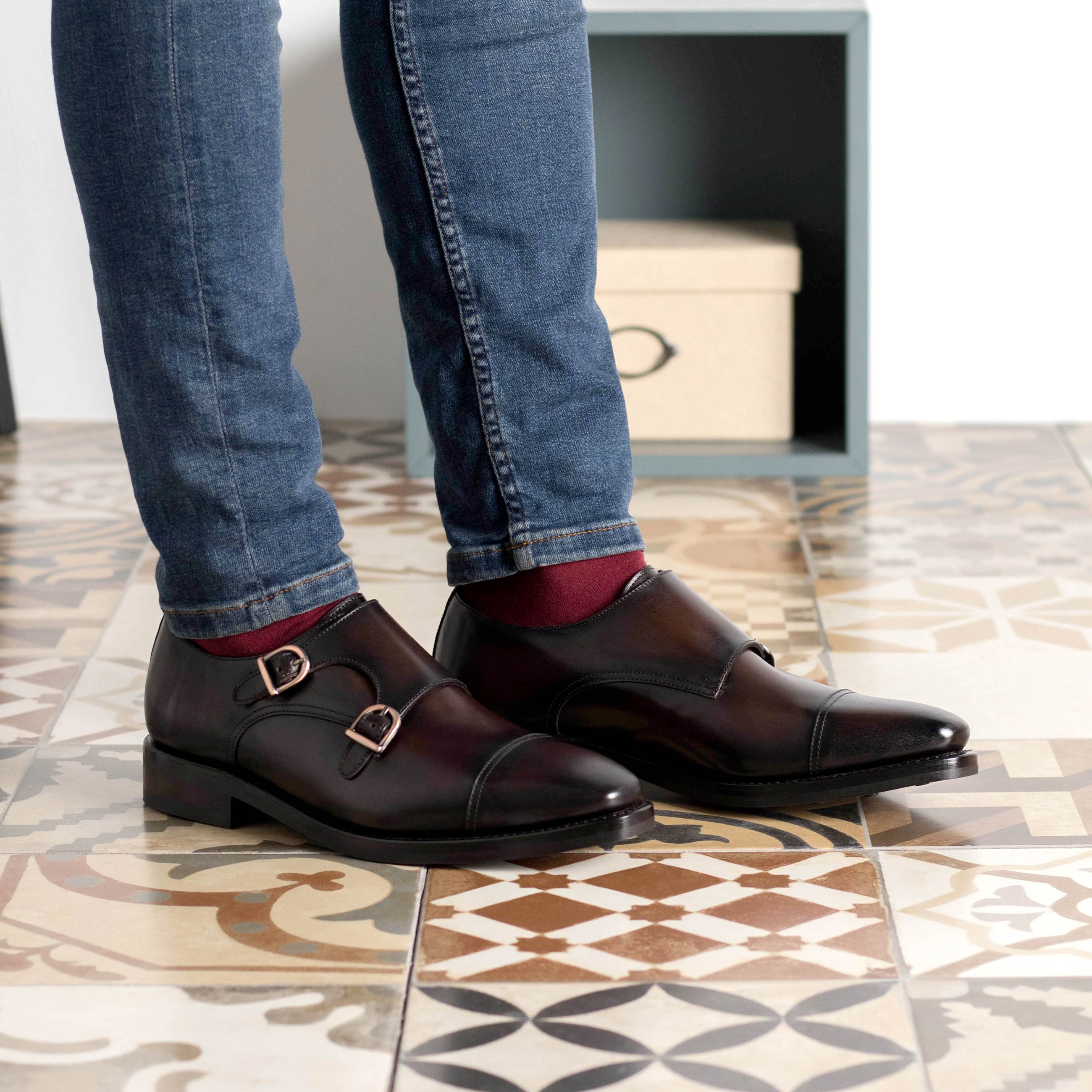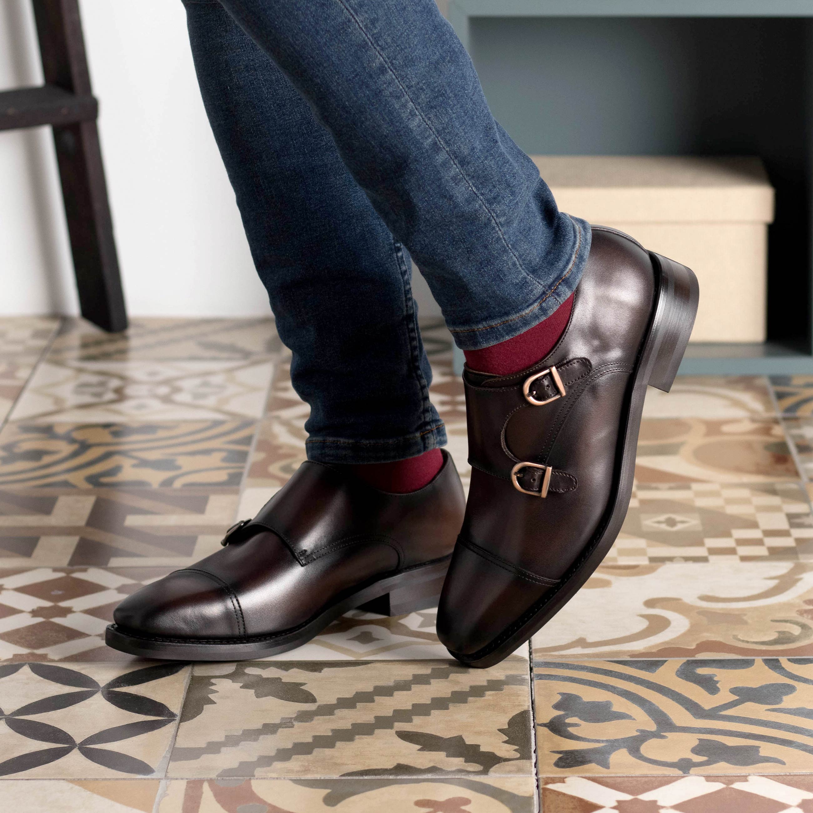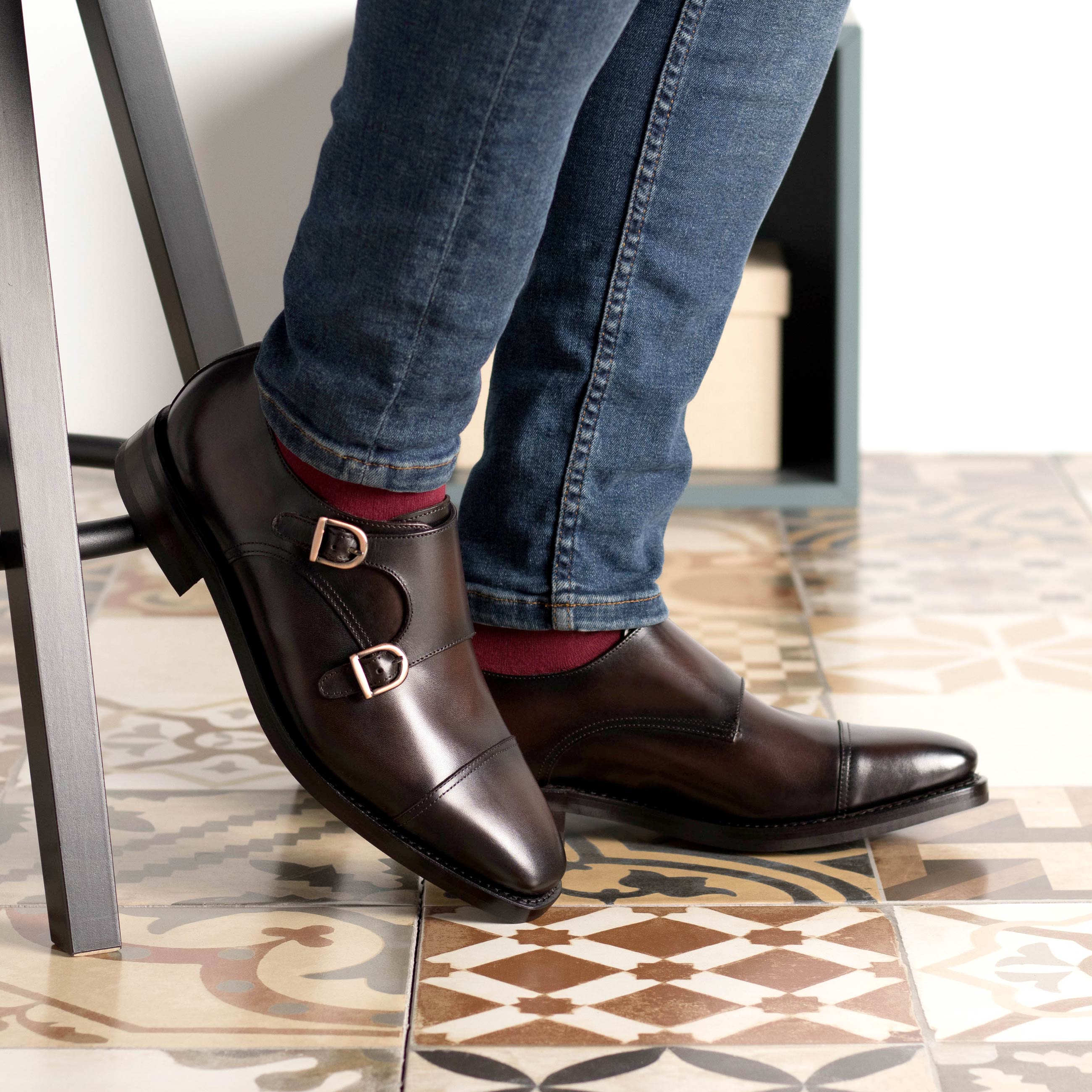 Introducing The Damen Ave. Double Monk No. 5703EX – the shoe that oozes class, yet is a master of casual elegance! Featuring dark brown box calf and copper buckles, these monk straps provide a timeless style that’s sure to draw compliments wherever you go. Crafted with an impressive black Dainite rubber sole and Goodyear welt construction, you don’t have to fear for your safety as you stride through rain-slicked streets in confidence! And best of all – you can have your stylish double monk delivered in just 2-3 weeks with our Express Lane service. So why wait? Get your Damen Ave. Double Monk and make sure your look always has the perfect finish!